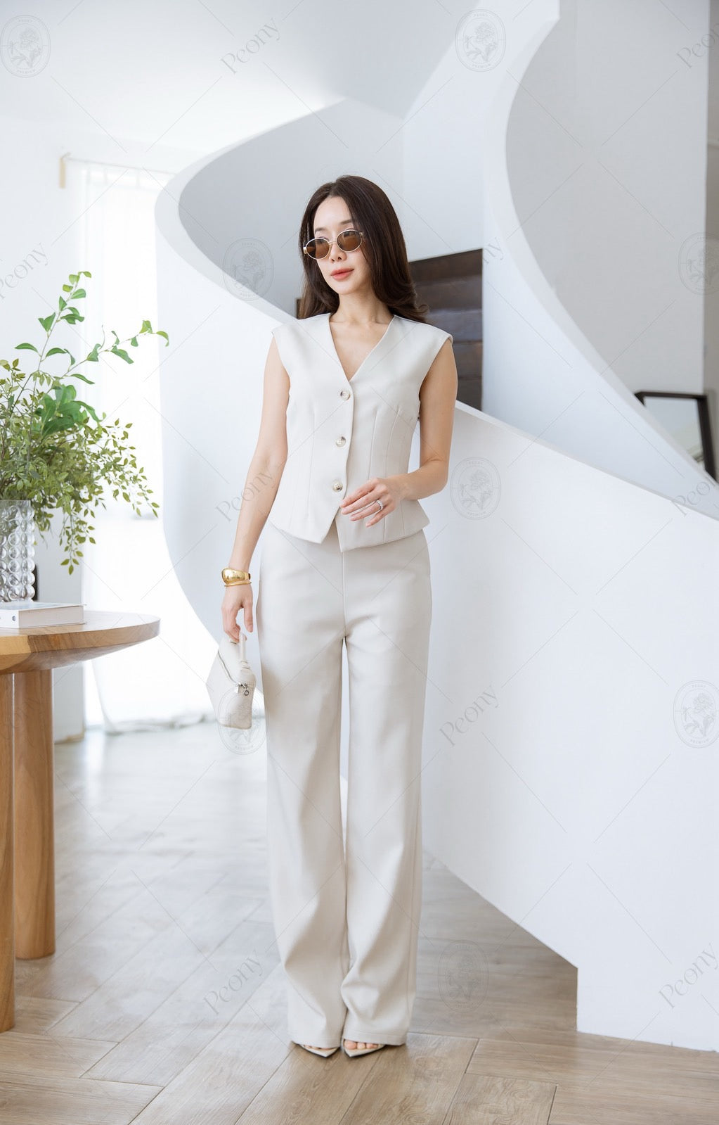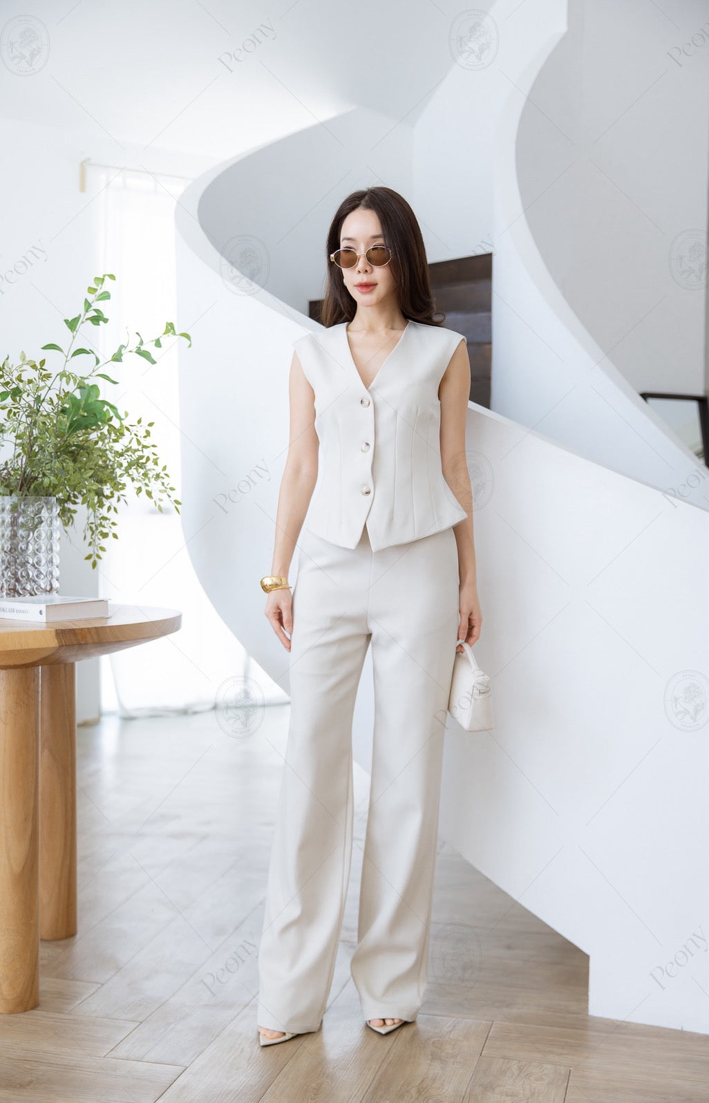 Paired with straight-leg long pants for a polished and smart look — perfect for both casual chic and semi-formal days.