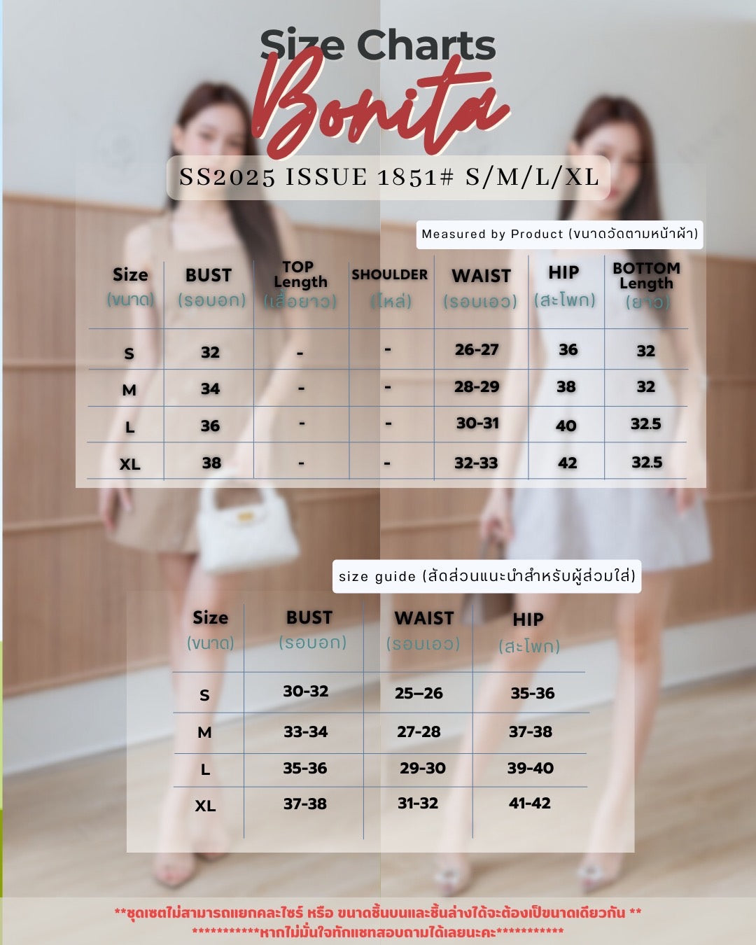 XL = Bust 37–38 / Waist 31–32 / Hips 41–42