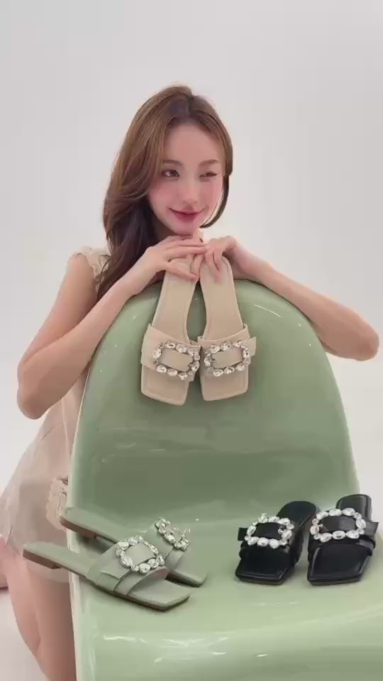 👡 Gram-embellished strap sandals, low heel, super easy to wear!