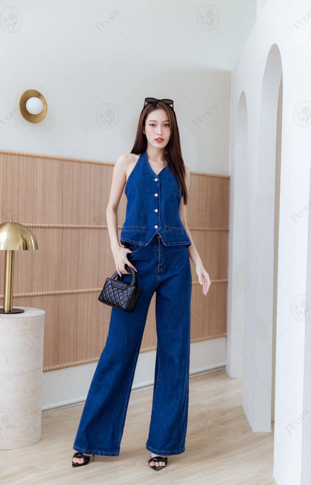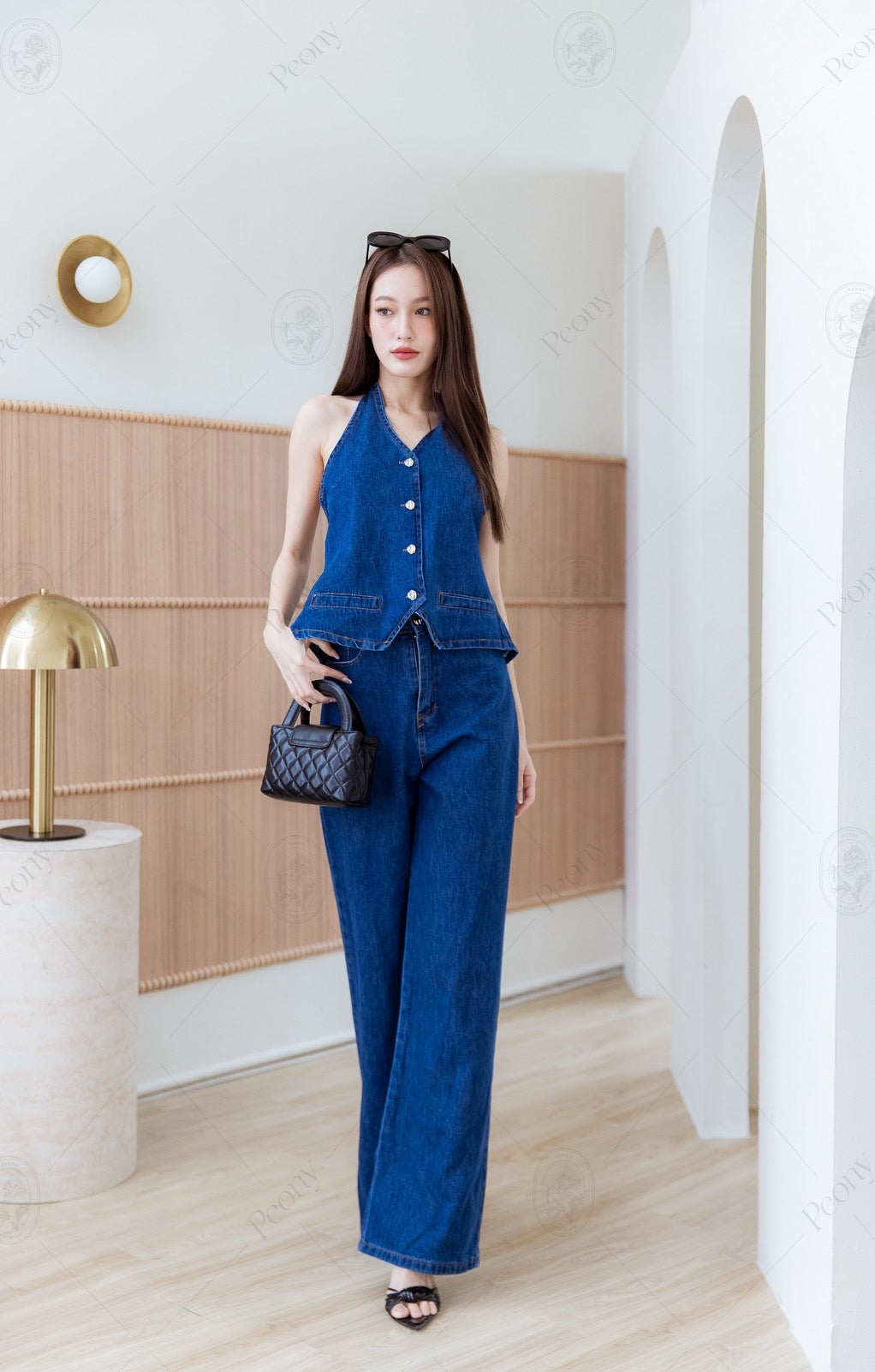 🤍 A beautiful dark blue denim set featuring a long shirt with a tie-neck detail and front buttons. Paired with stylish long pants that perfectly match the top for a complete chic look. You can also mix and match the pieces separately—always on trend!