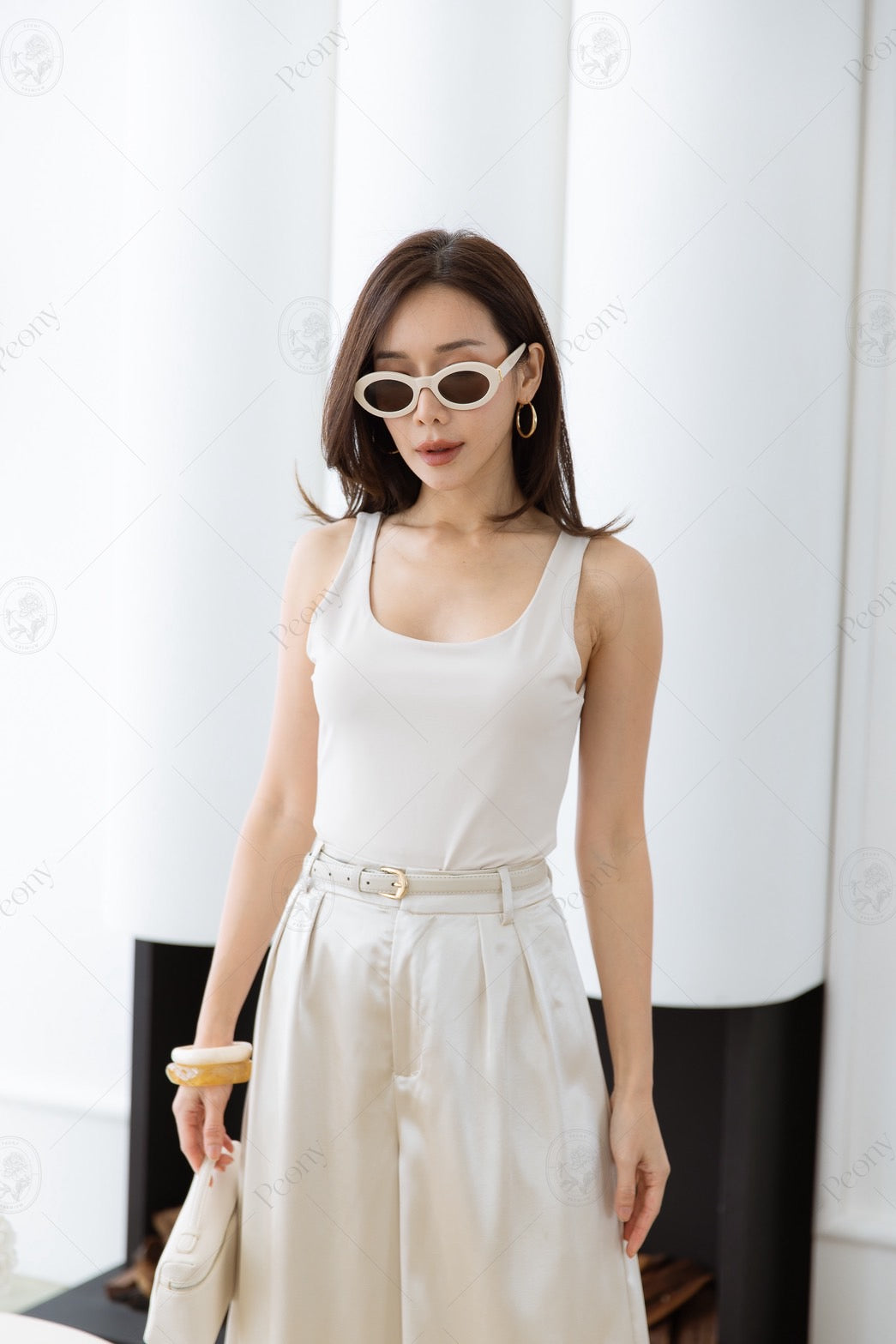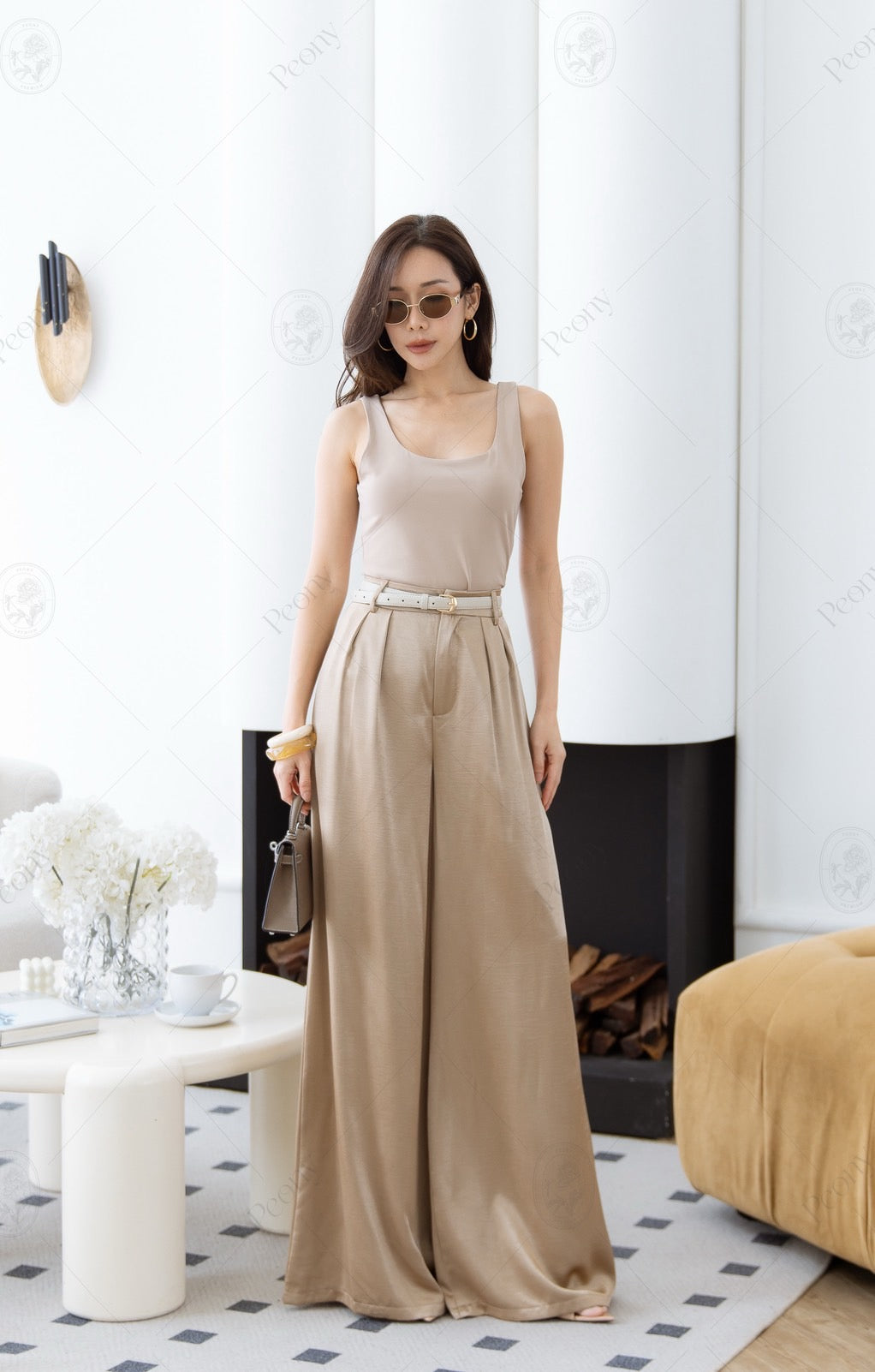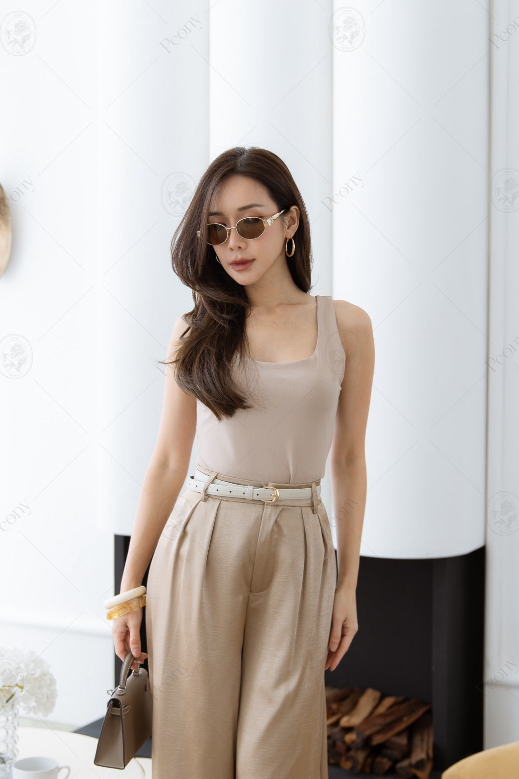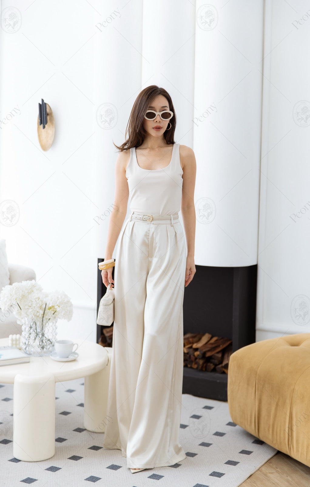 This elegant set features a sleeveless top made from soft, stretchy micro-fabric for a smooth and comfortable fit.