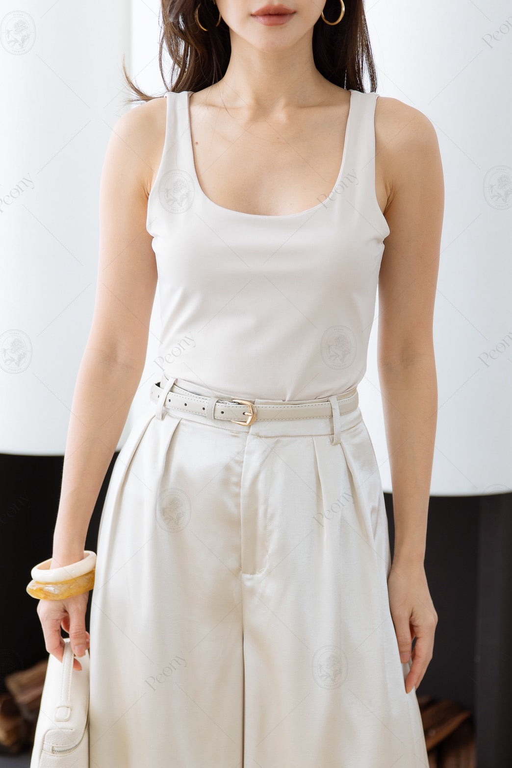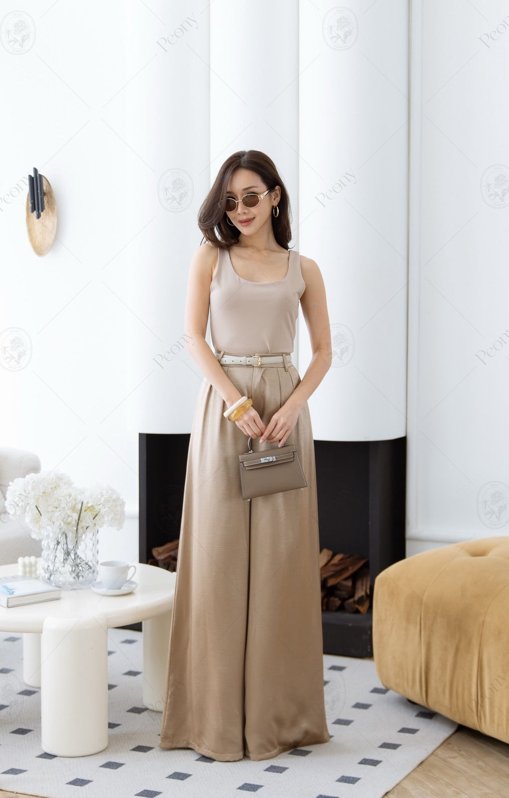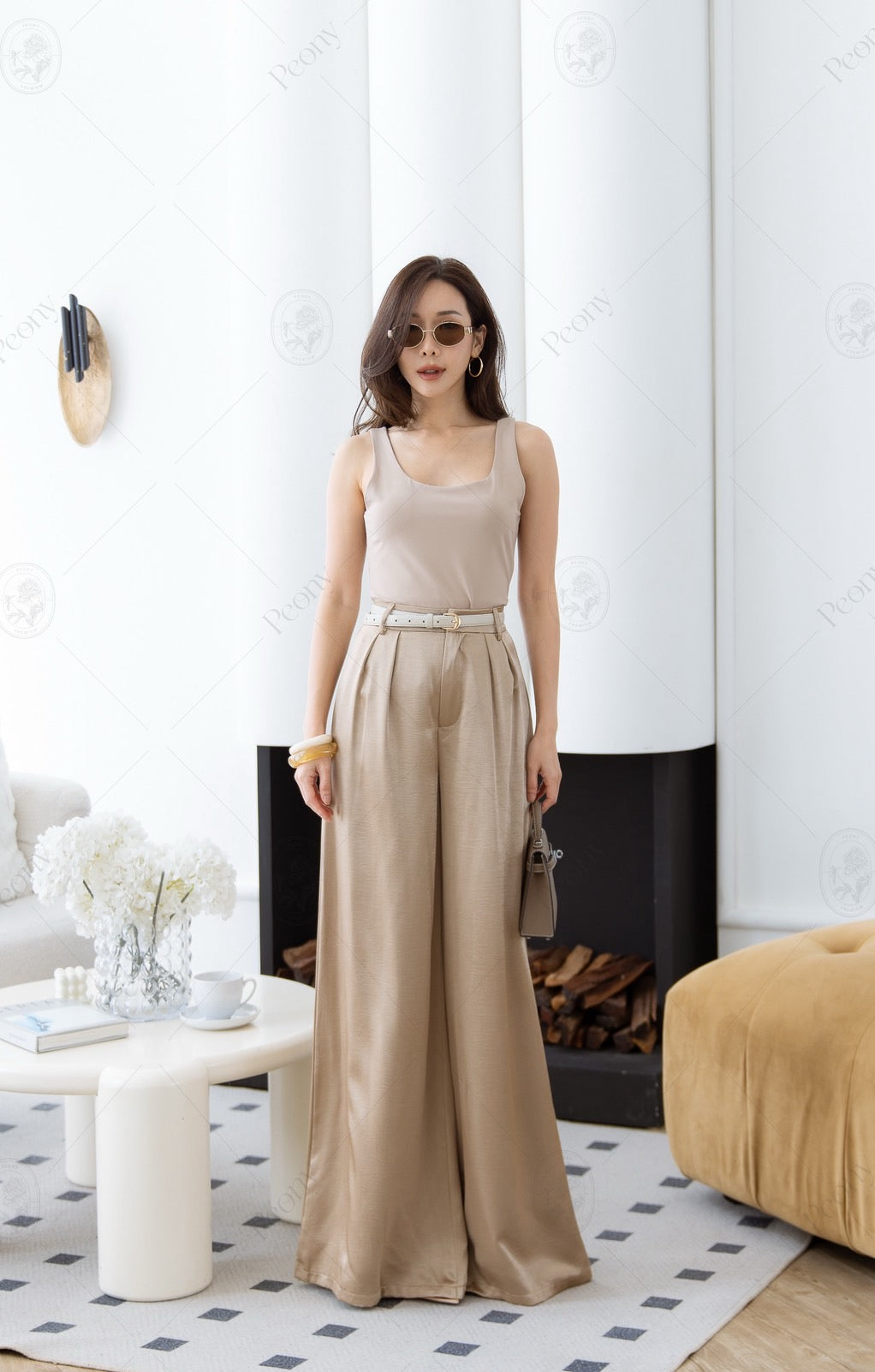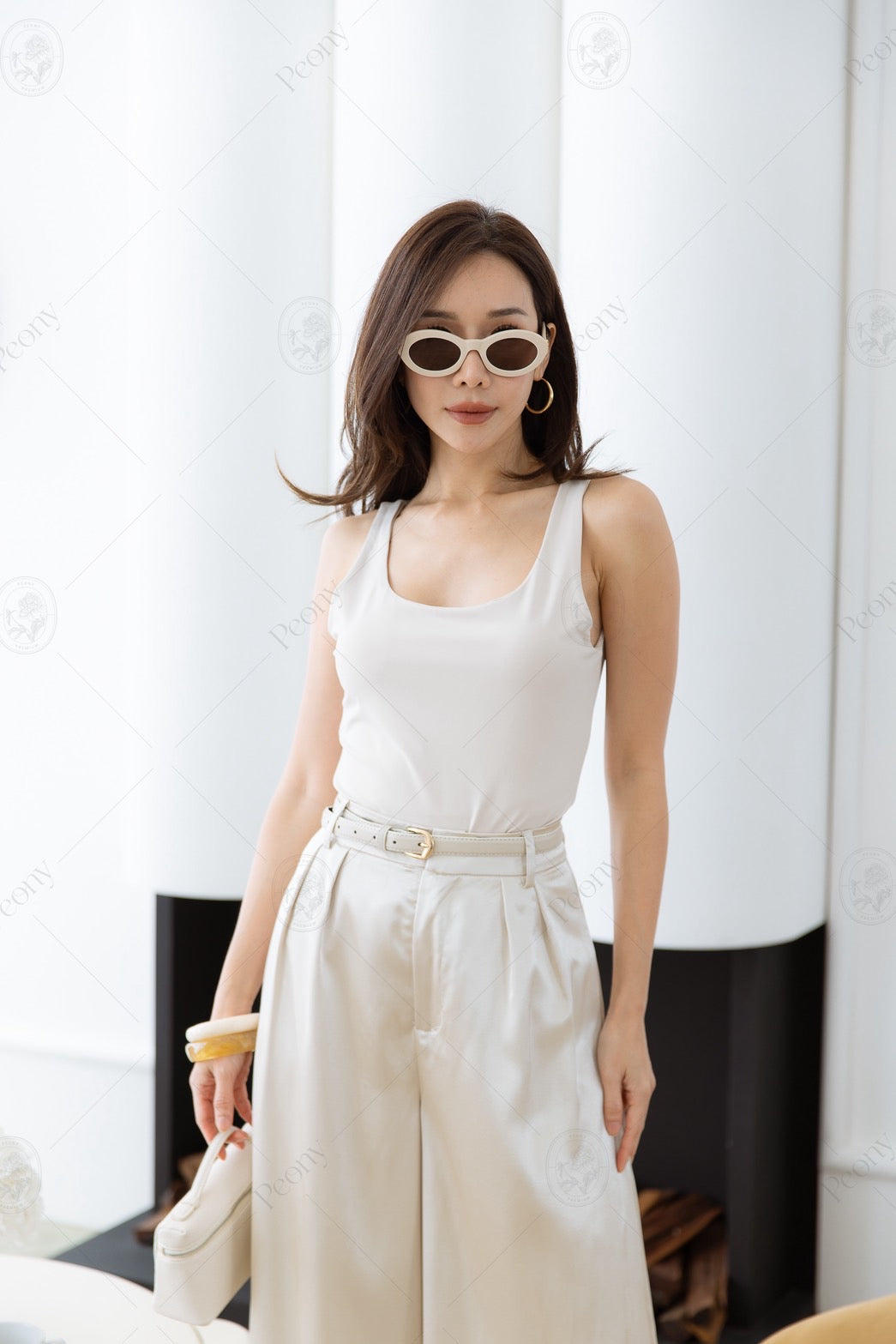 This elegant set features a sleeveless top made from soft, stretchy micro-fabric for a smooth and comfortable fit.