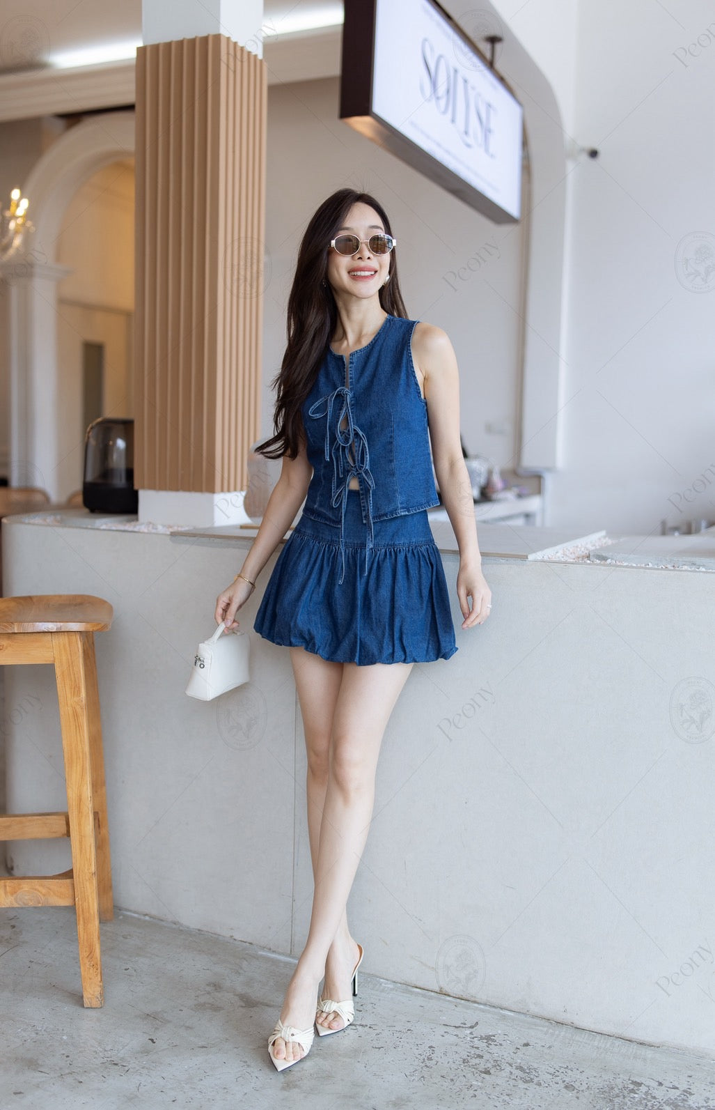 Fall in love with this cute denim set in a soft-washed, deep blue shade.