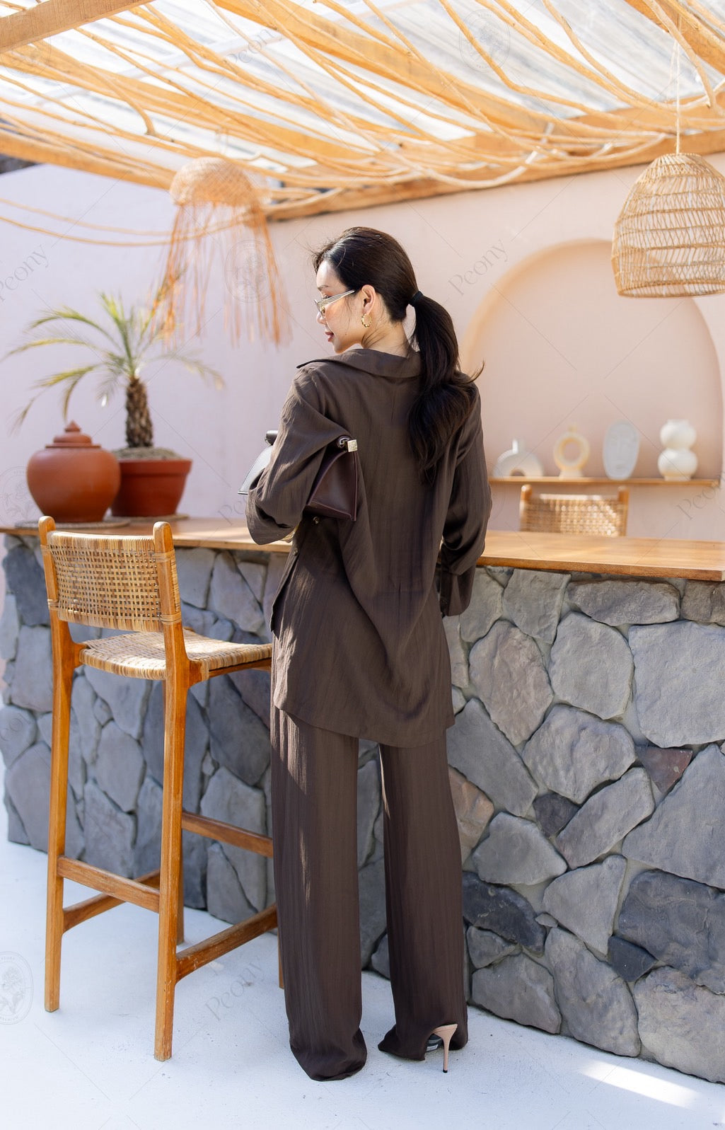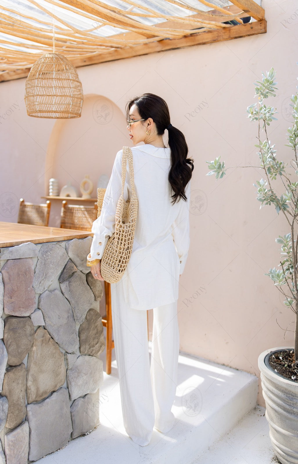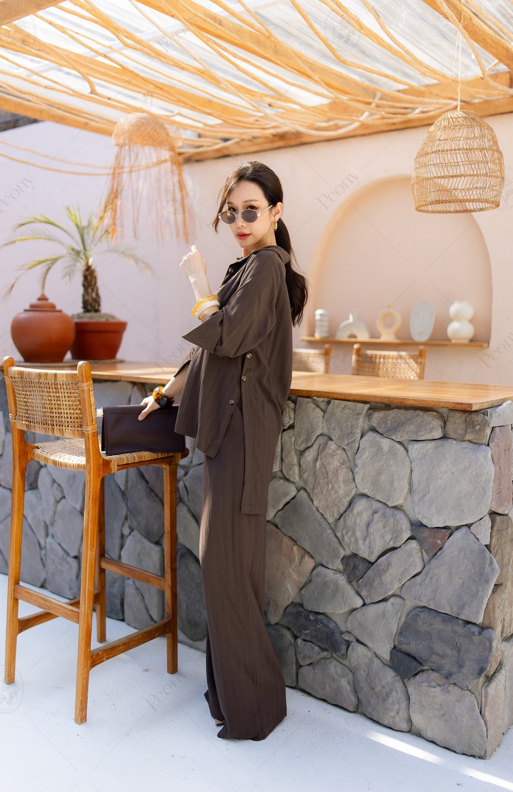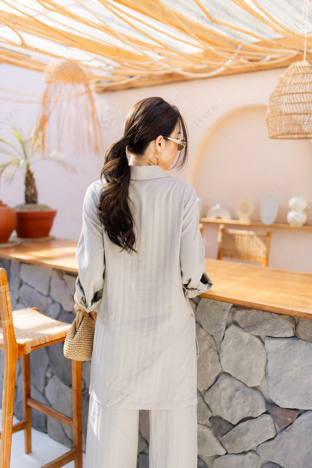 ๐ค A linen-blend set featuring a distinctive woven texture. The top is a relaxed-fit long-sleeve shirt with front and side button details, paired with straight-leg long pants. A stylish, comfortable set perfect for any occasion.