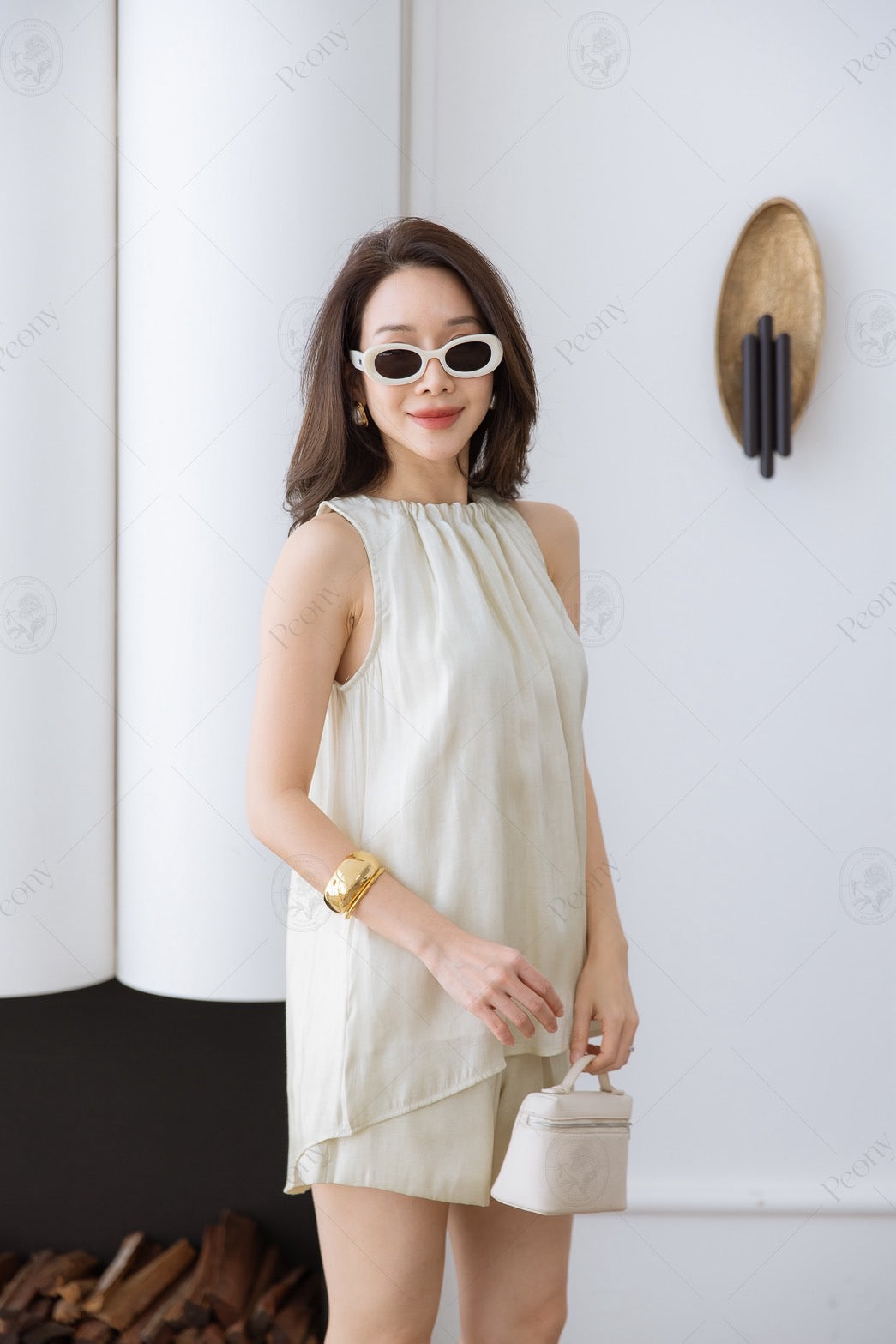 đ¤A matching set made from woven silk-blend metallic fabric that catches the light beautifully. The top features a relaxed, loose-fit silhouette.