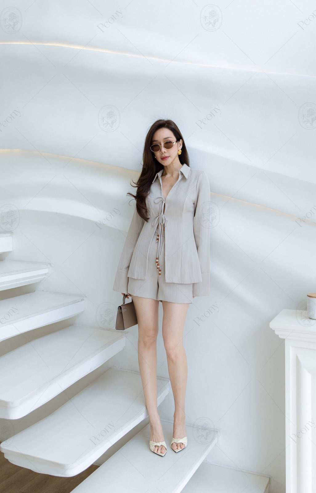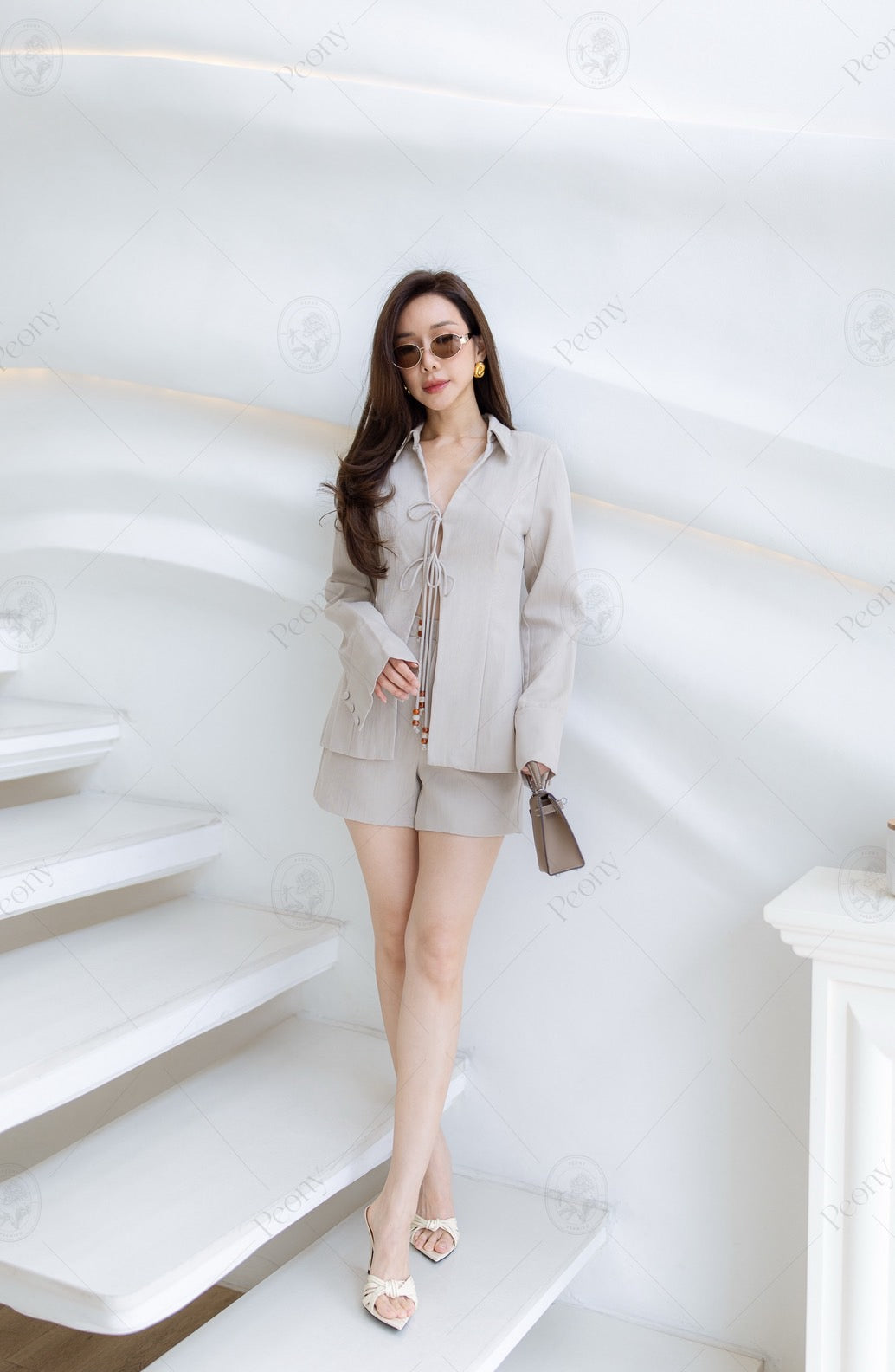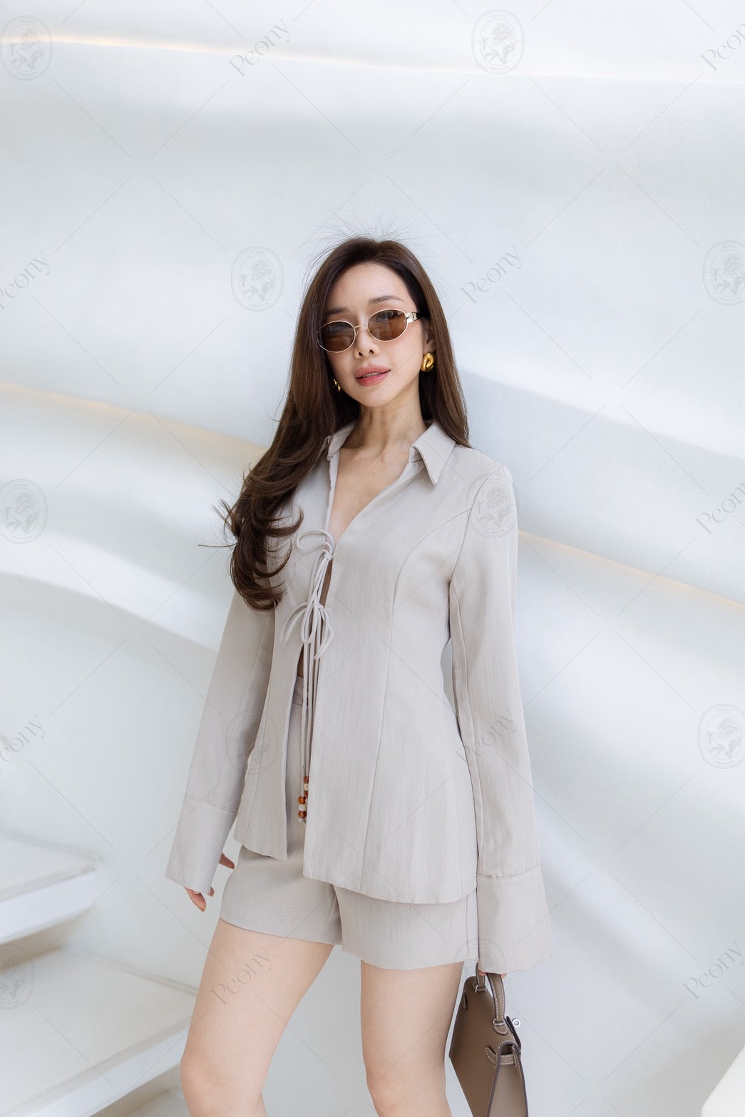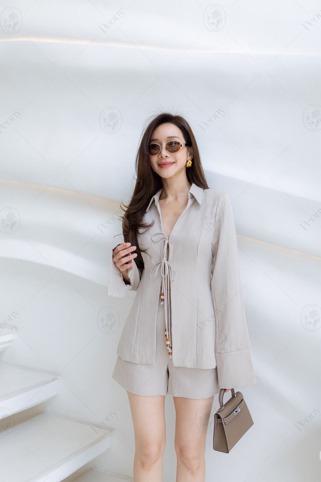 đ¤ A minimal solid-colored set made from slightly weighted fabric for a refined drape. Features a collared shirt with a front tie detail, paired with matching high-waisted shorts. A polished yet comfy look that's perfect for mixing and matching across different occasions.