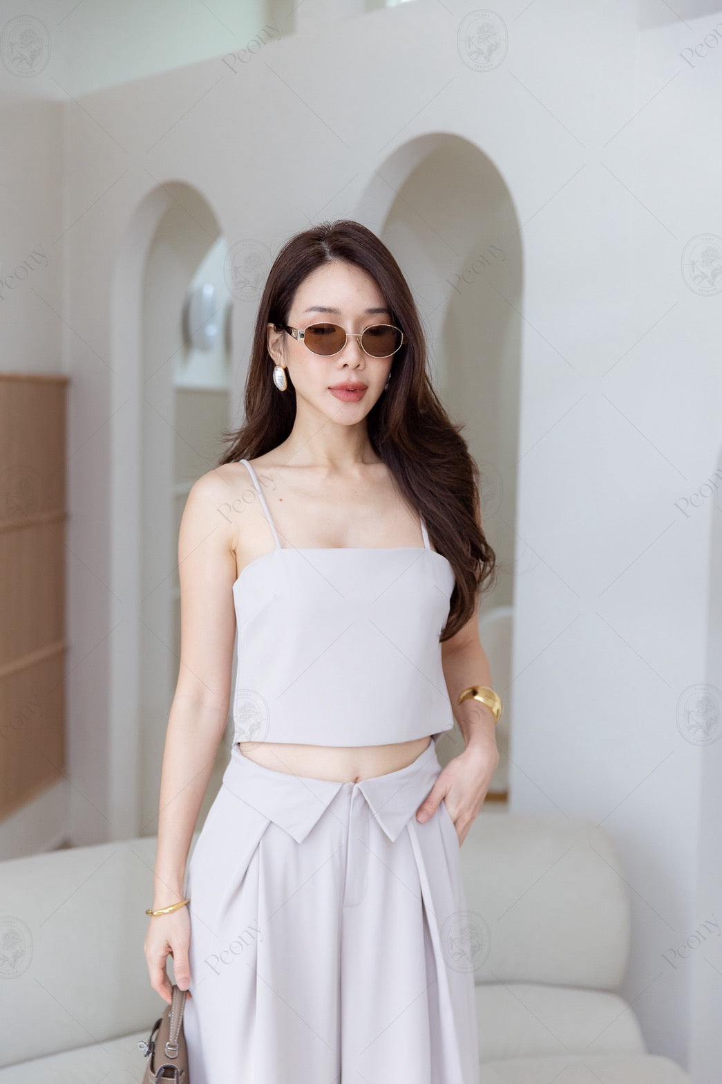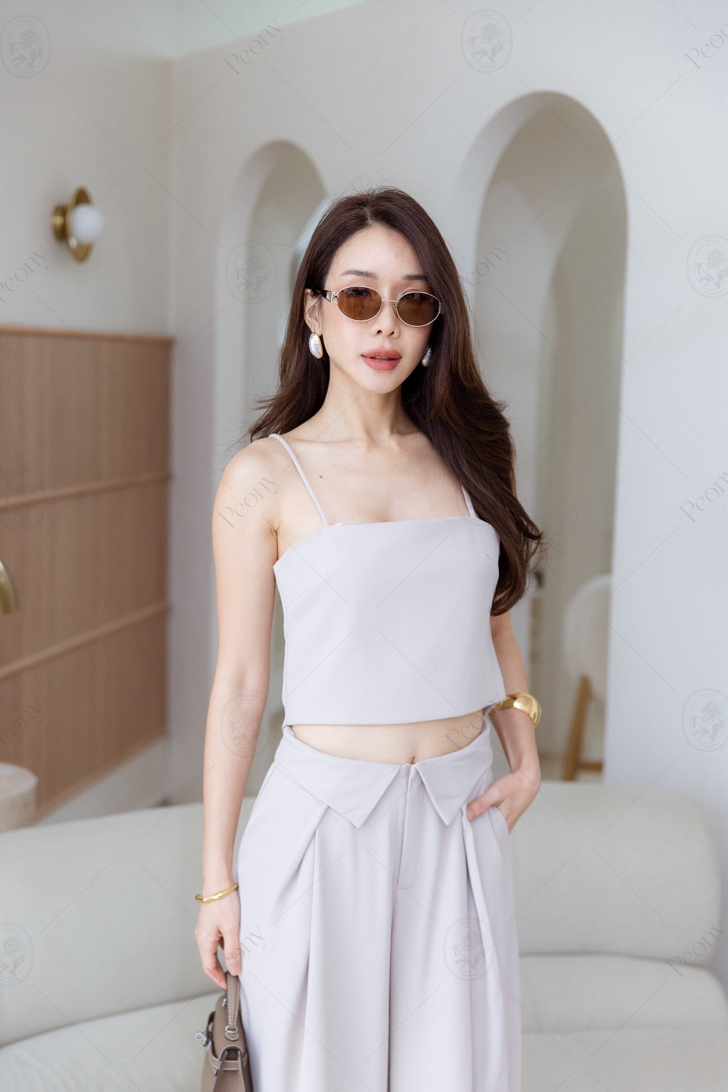 A modern 2-piece set made from tightly woven fabric with a beautiful drape.