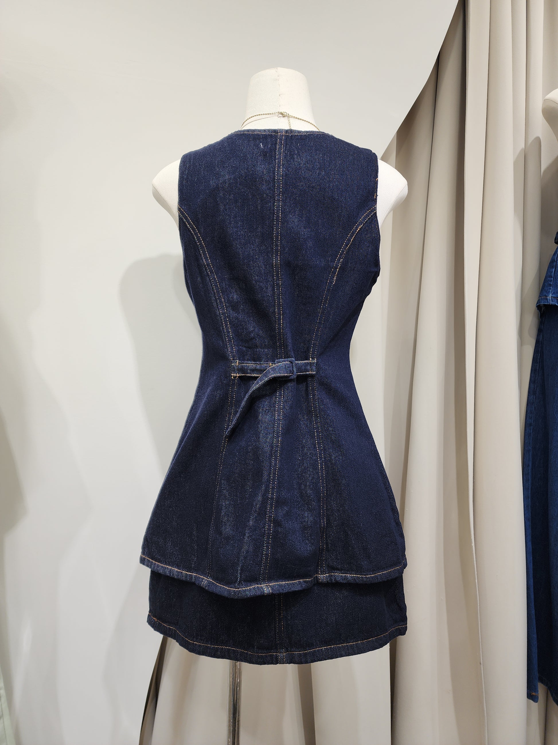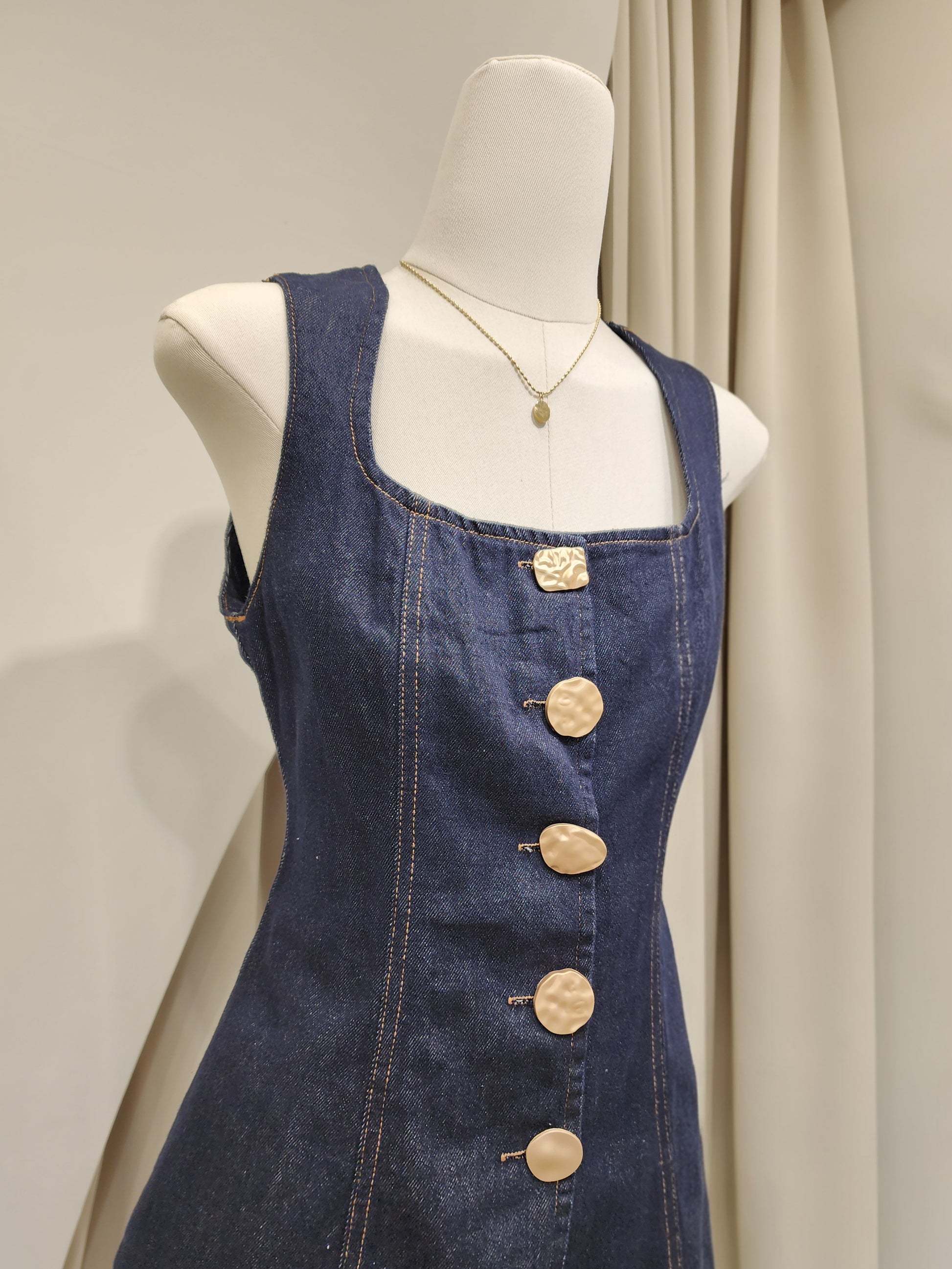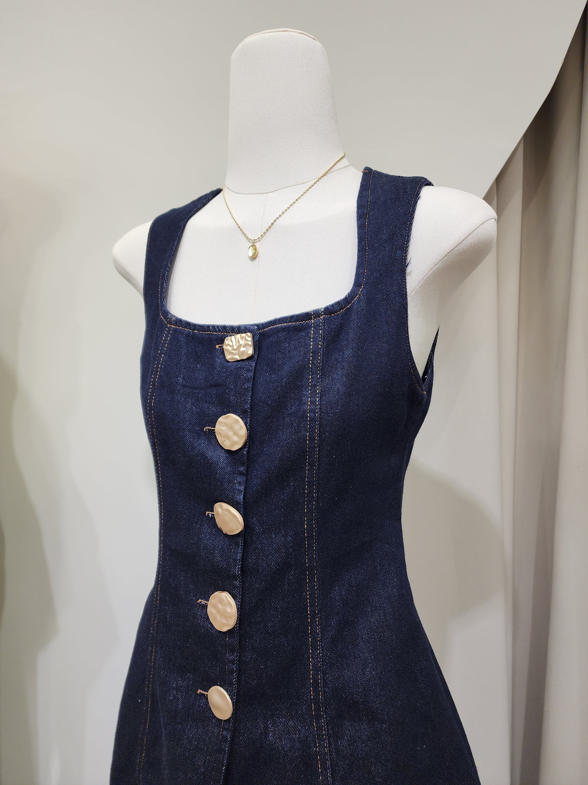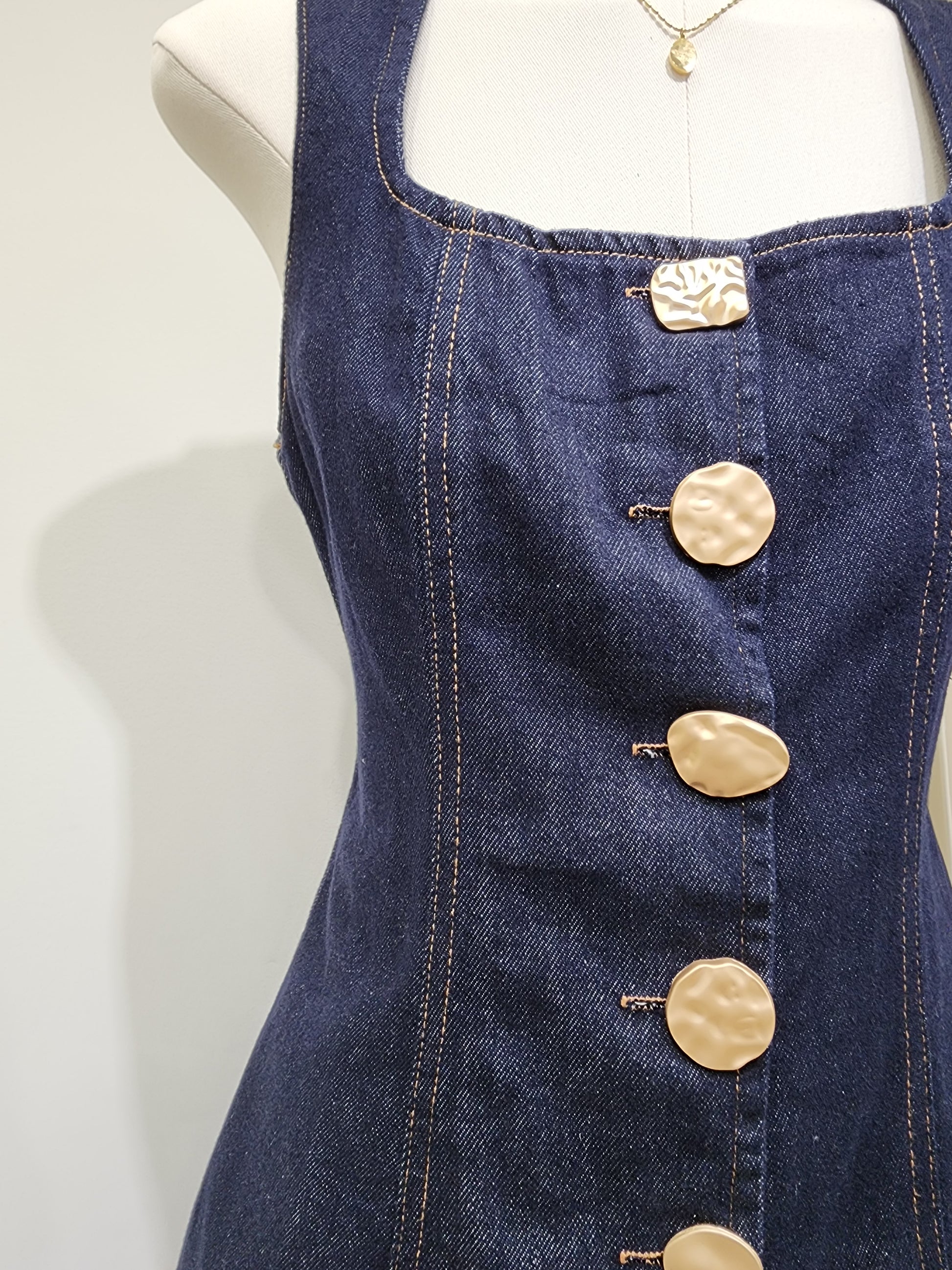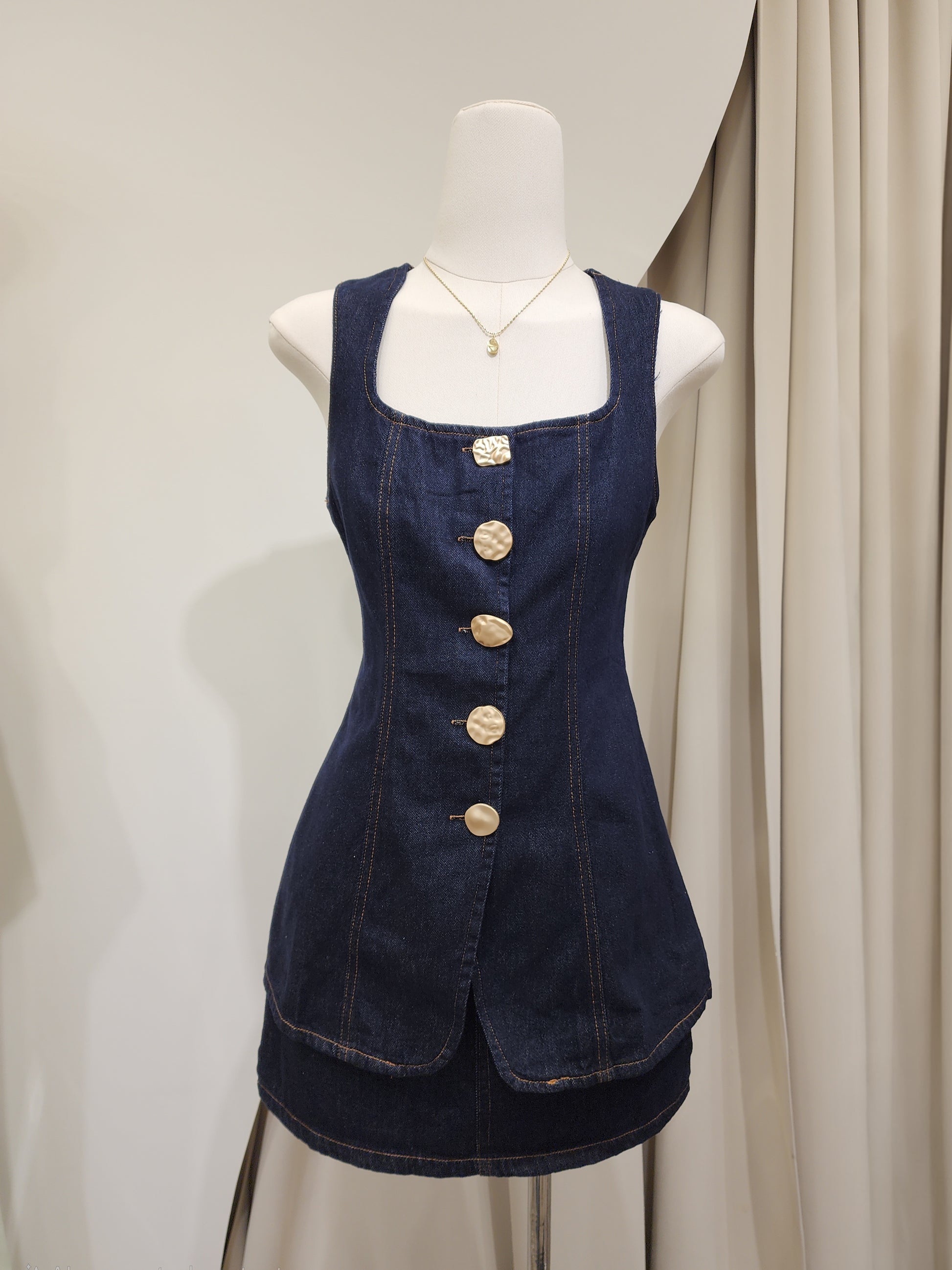 🤍 A dark denim set made from soft, premium-quality denim. The long top features a square neckline and a variety of decorative buttons, paired with a matching mini skirt. This set completes a cute, trendy look that never goes out of style!