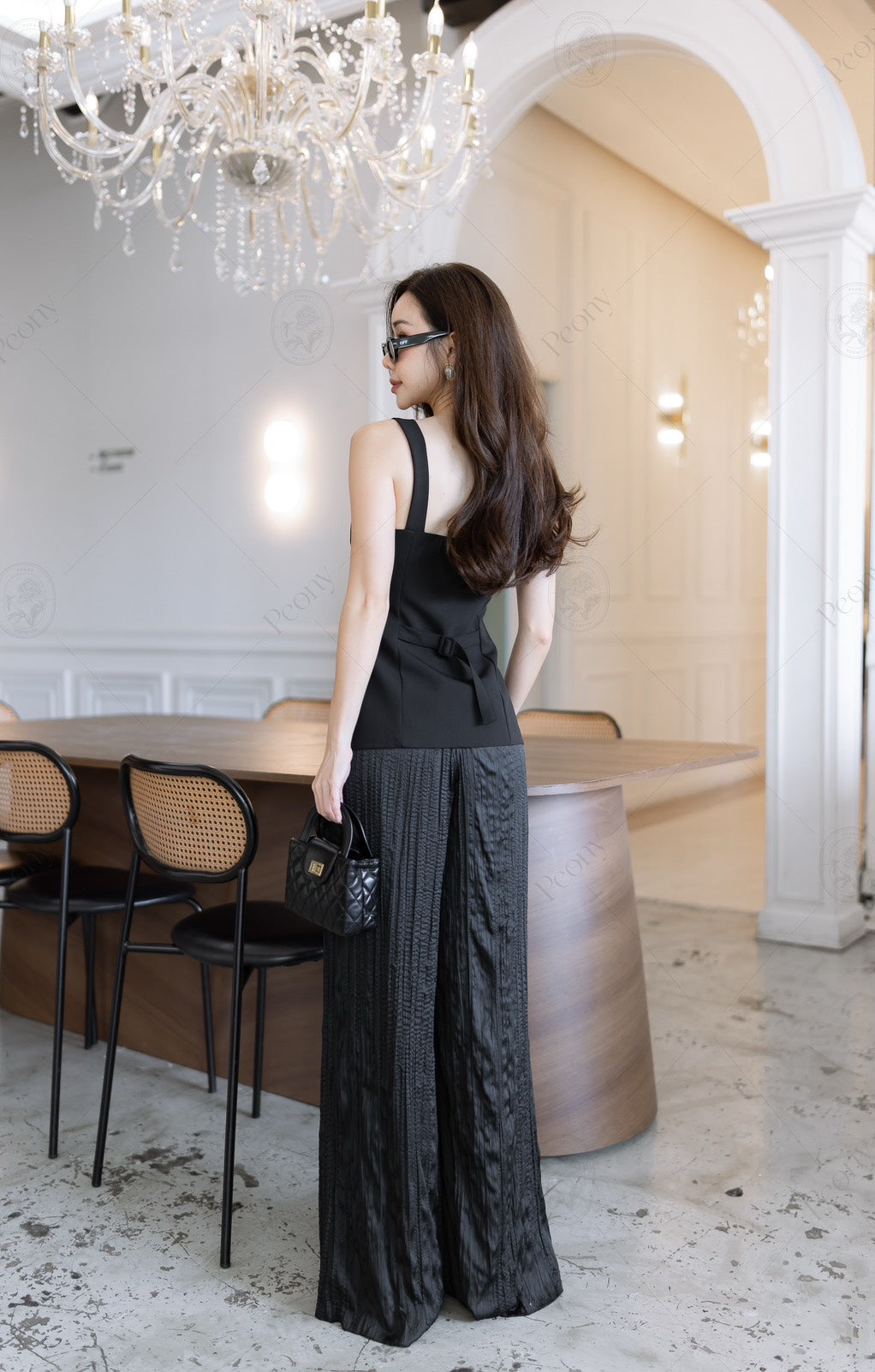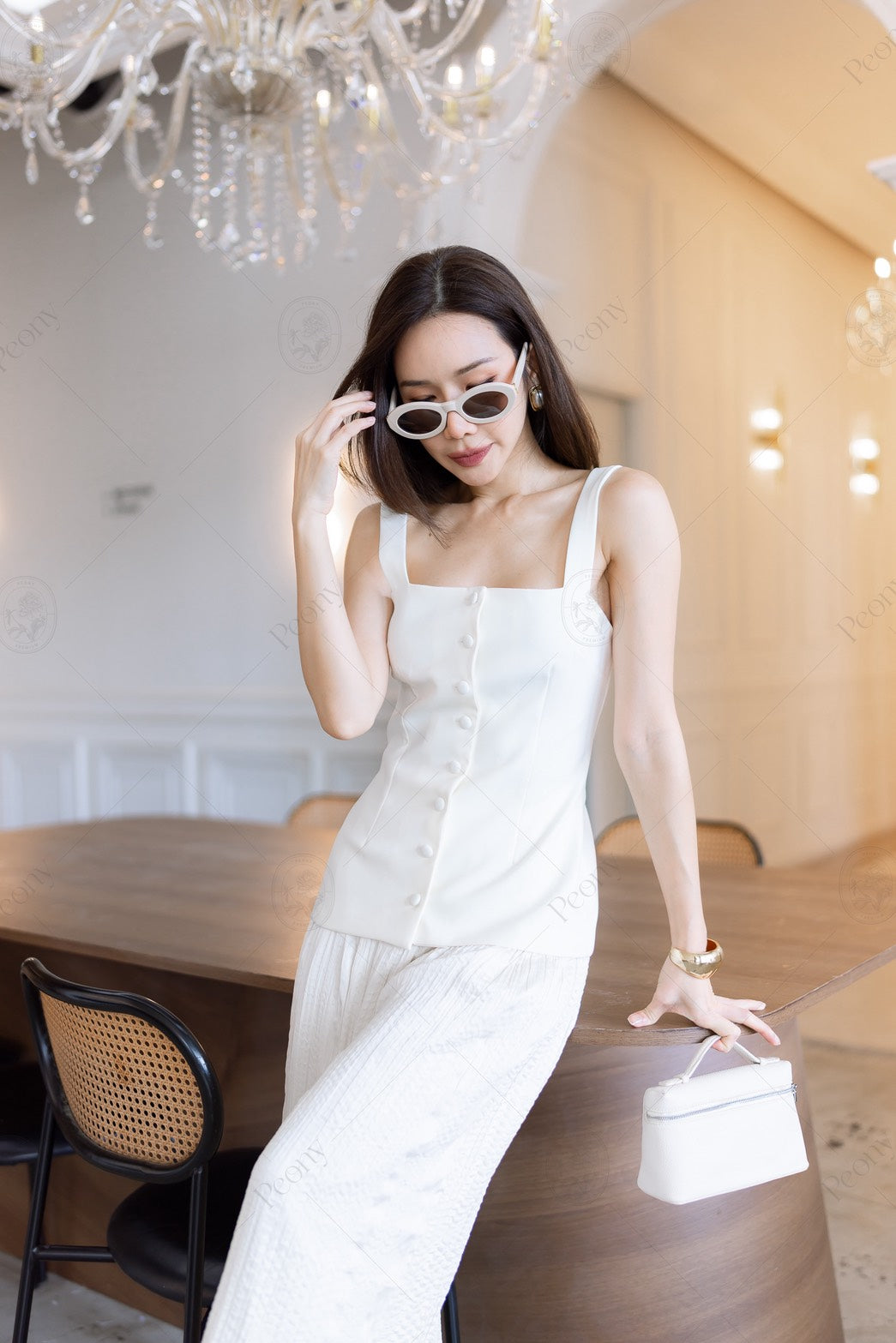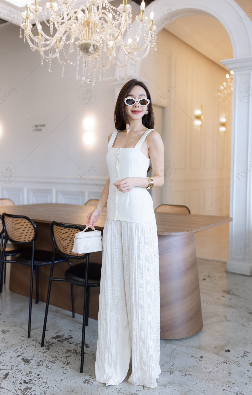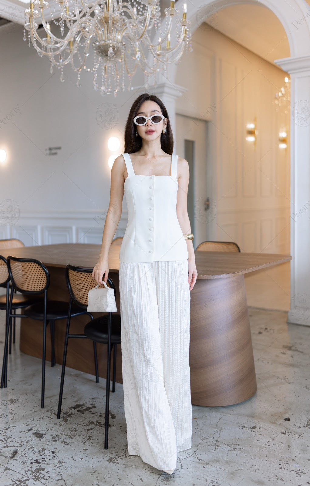 Set Details: Plain fabric set — sleeveless square-neck top with front buttons, paired with long pants. Comfortable to wear and complete your look for any occasion.