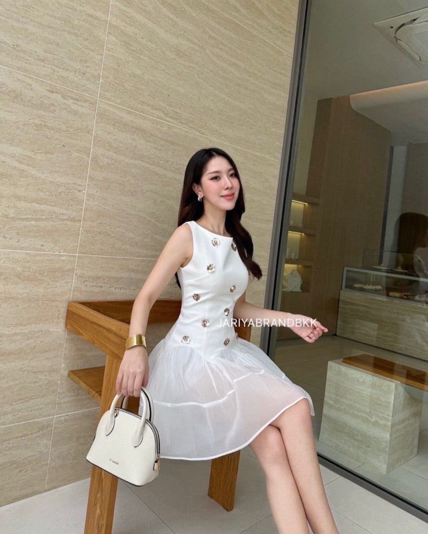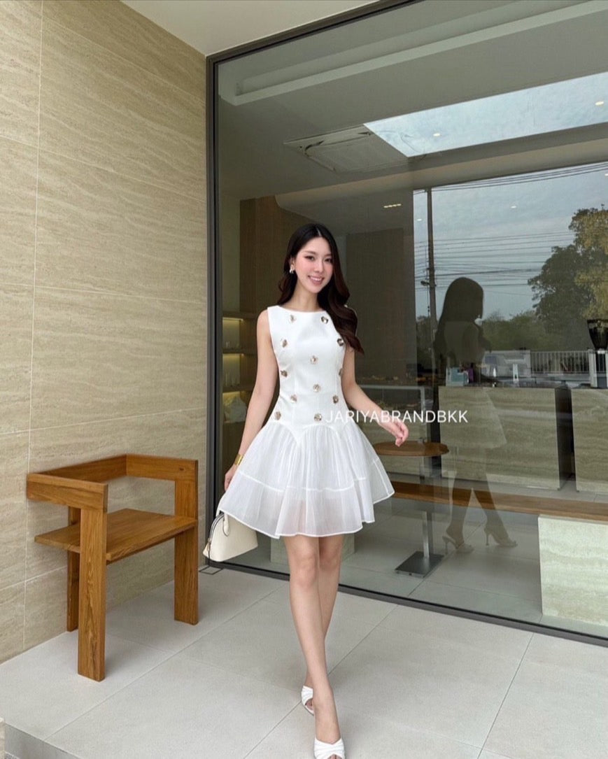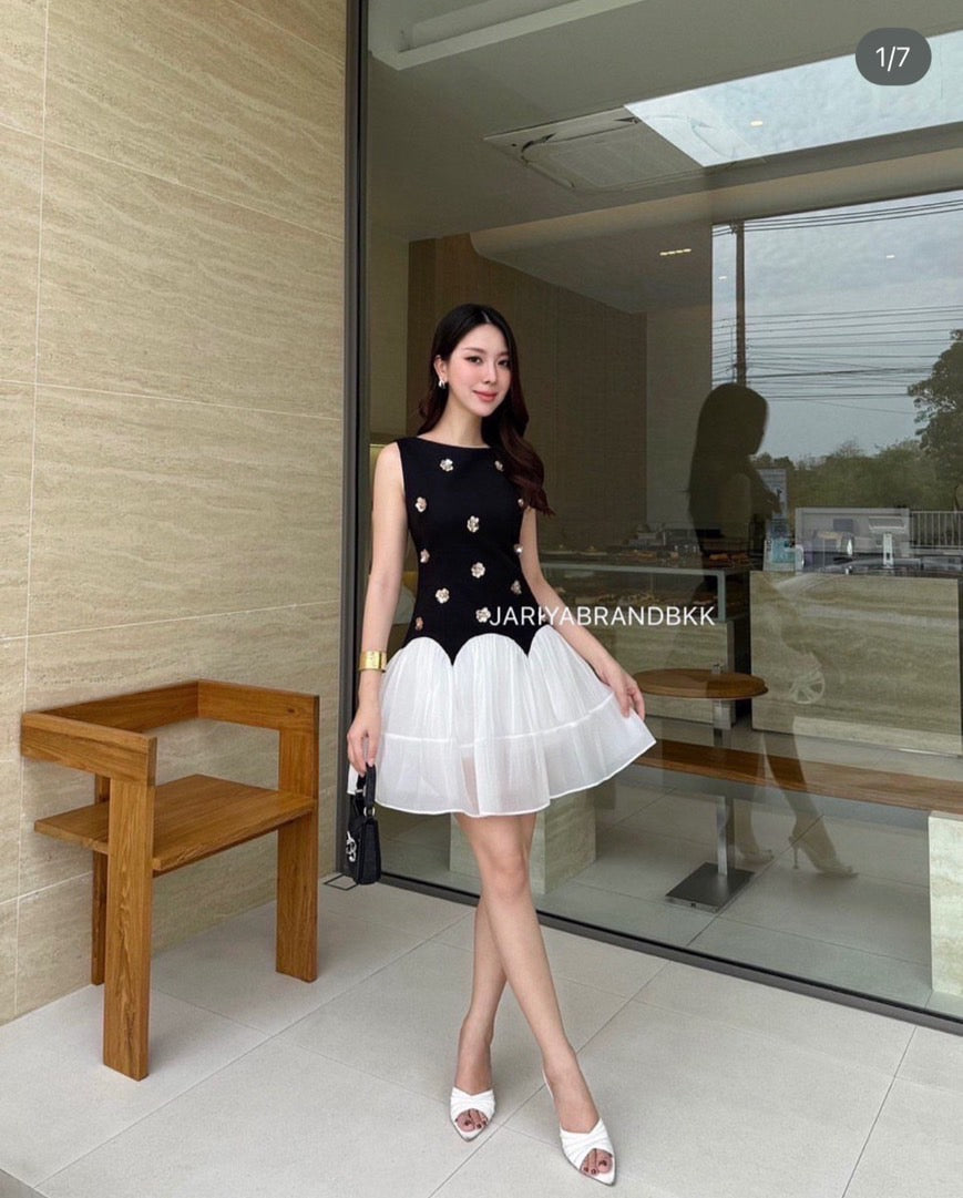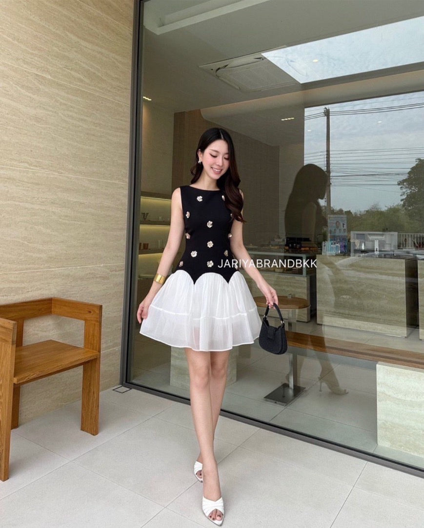 📌DETAIL ~~ Sleeveless floral embroidered dress with a voluminous skirt (lined with built-in shorts). Super comfy and incredibly elegant! The actual piece is absolutely stunning—crafted from soft, comfortable fabric that holds its shape beautifully. A high-quality look that feels luxe and refined.