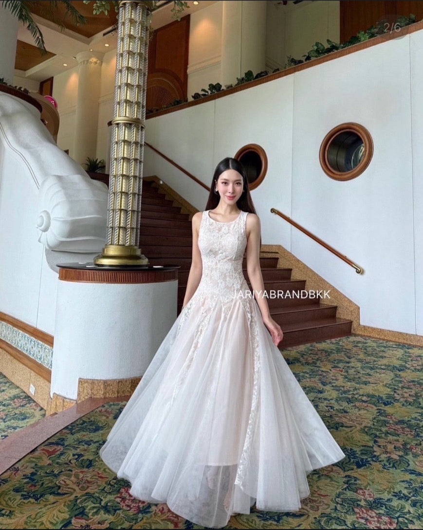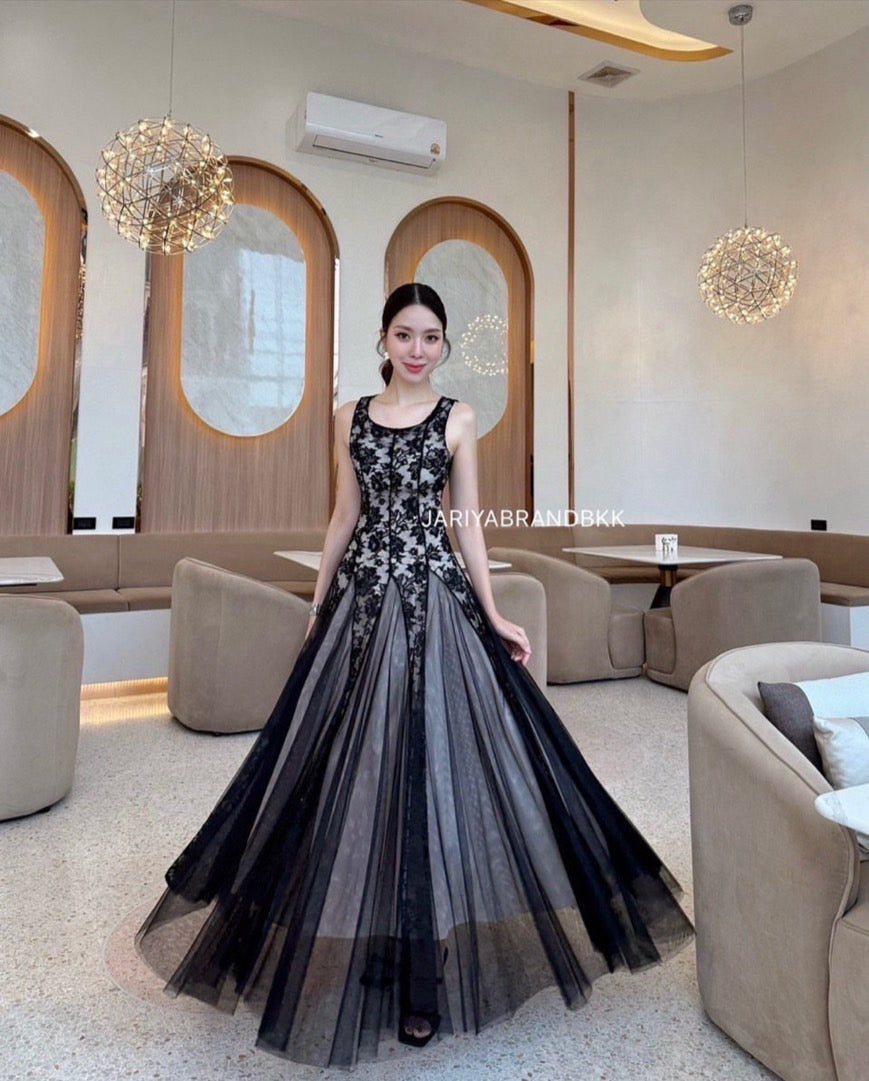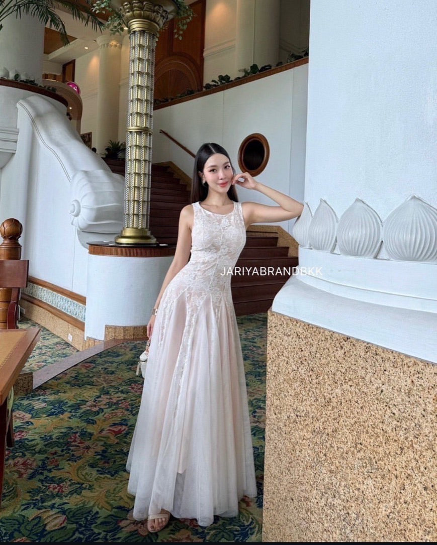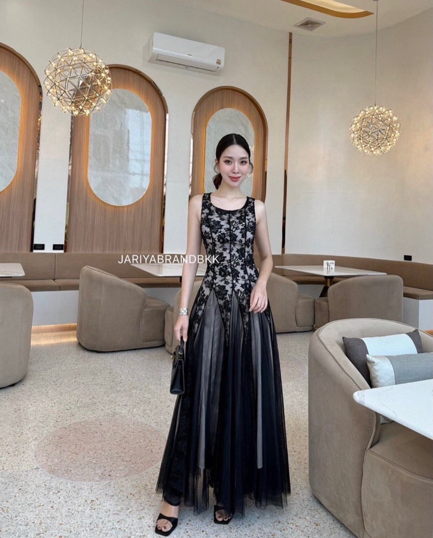 📌DETAIL ~~ Sleeveless lace maxi dress featuring a beautifully pleated, voluminous skirt. Incredibly elegant and comfortable to wear. The real piece is absolutely stunning—crafted from soft, high-quality fabric that drapes perfectly. A refined and luxurious look that feels as good as it looks.