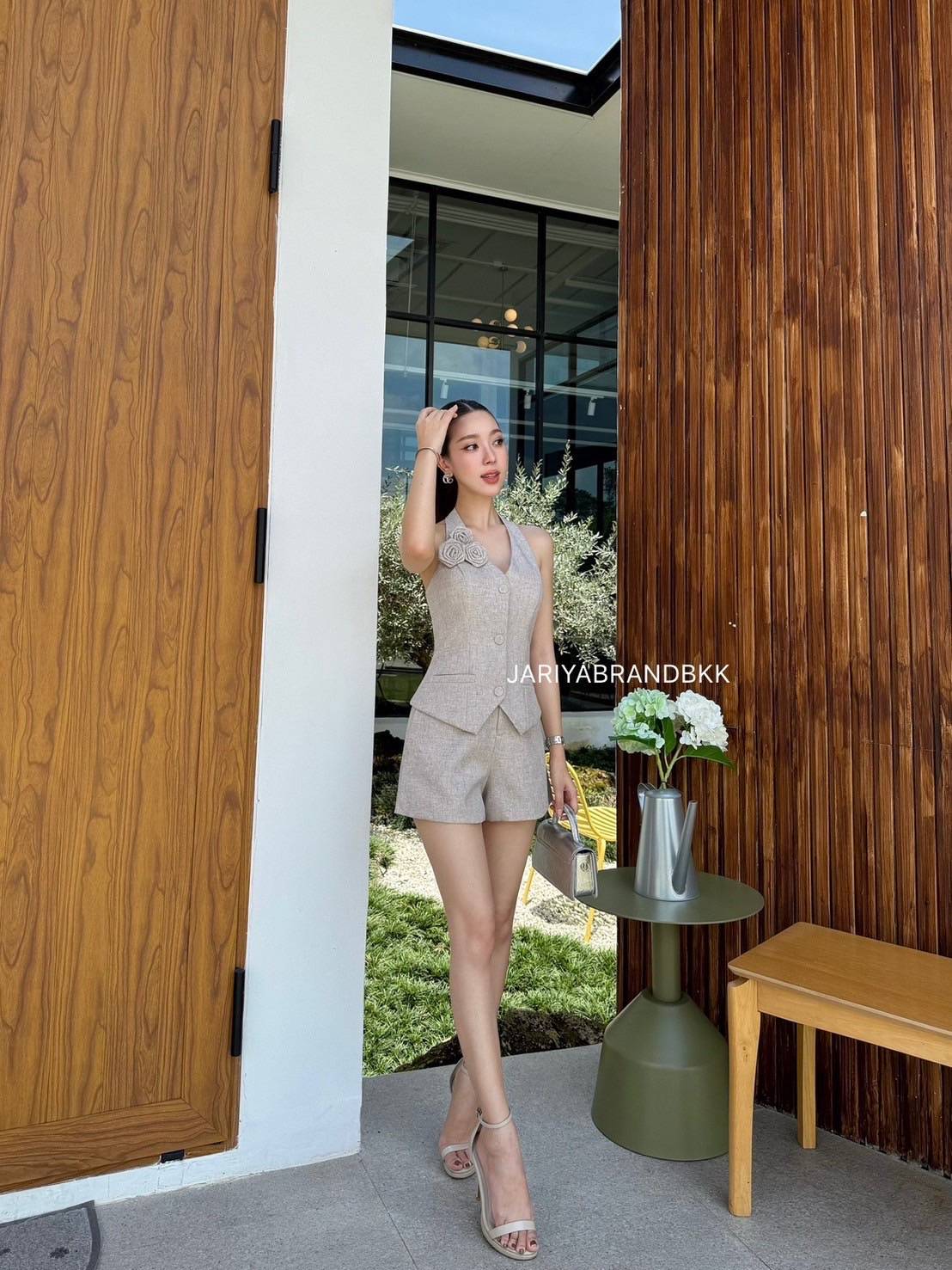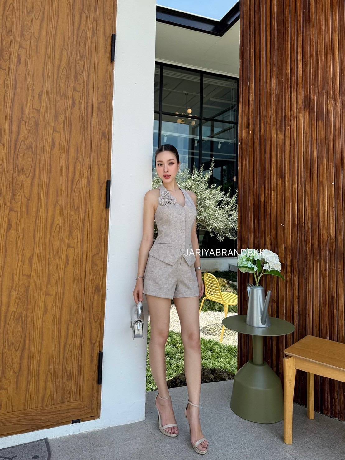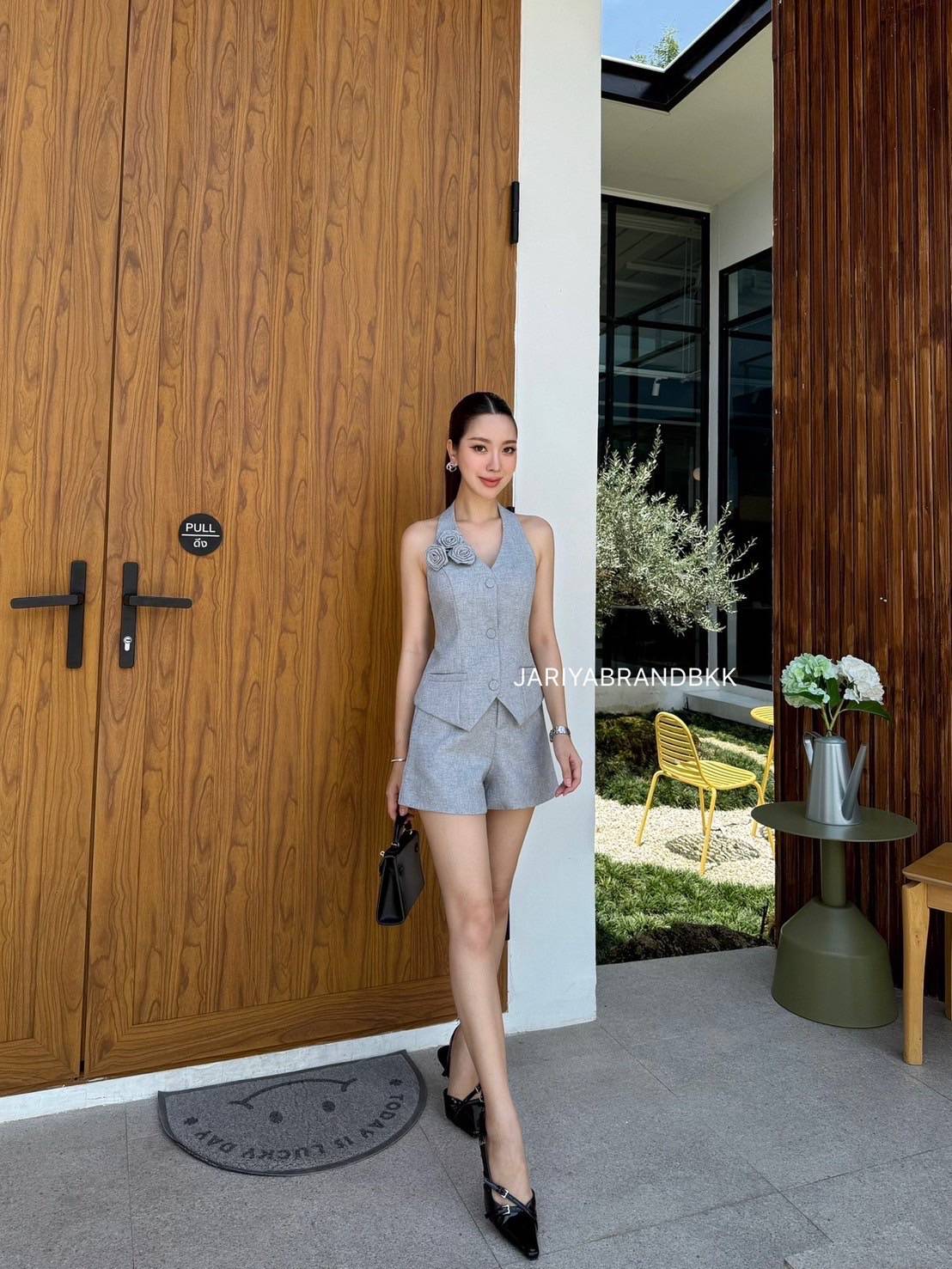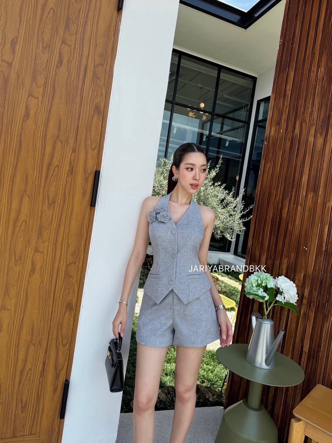 Paired with high-waisted shorts that have a beautiful tailored fit.