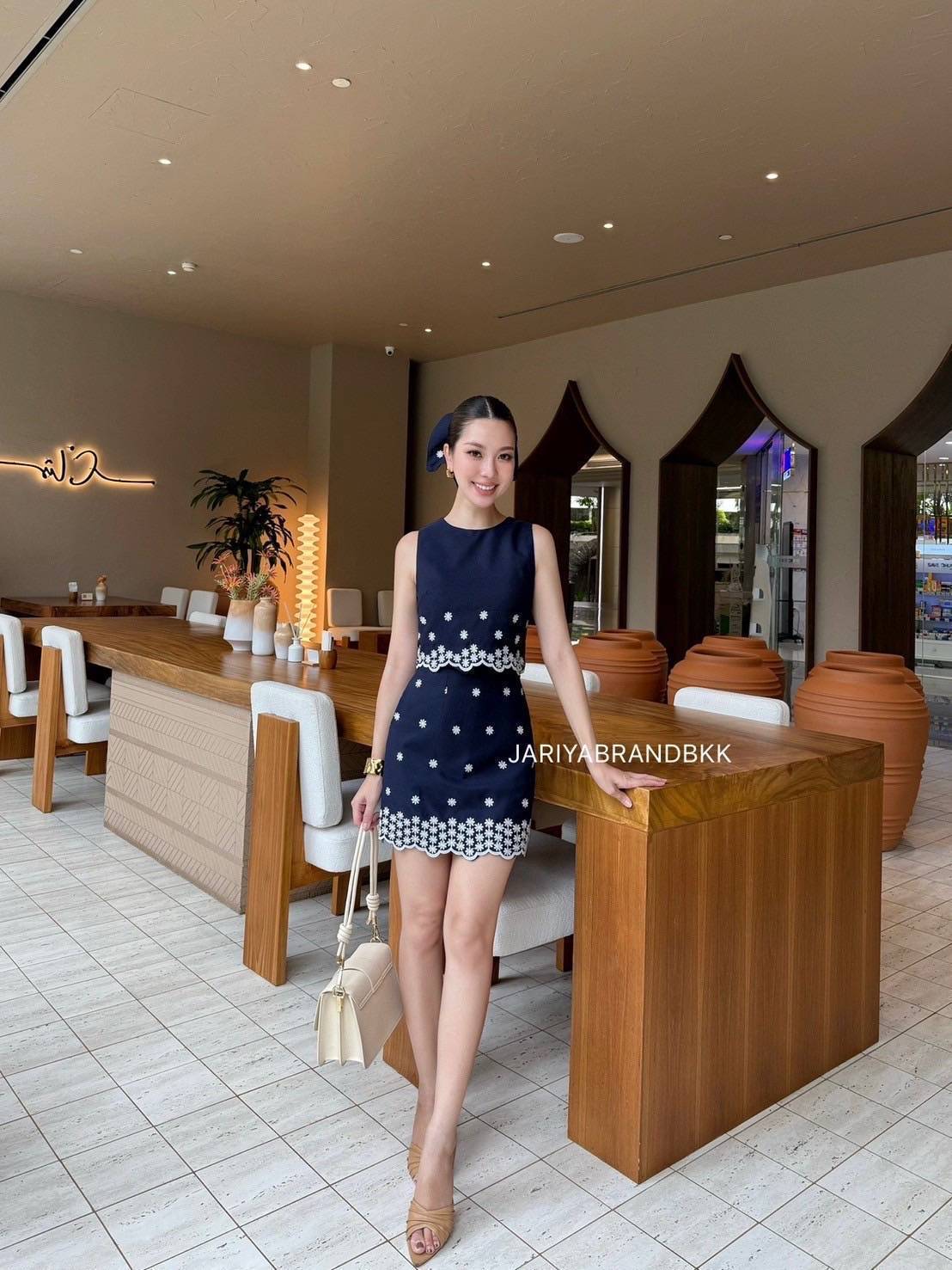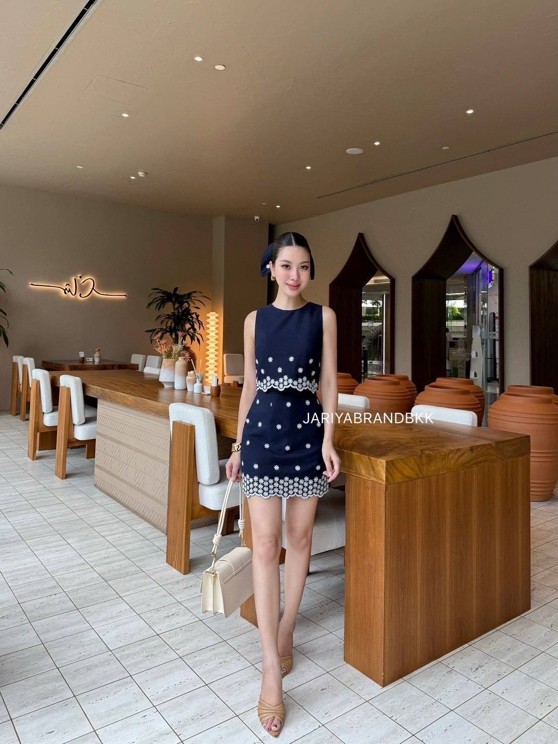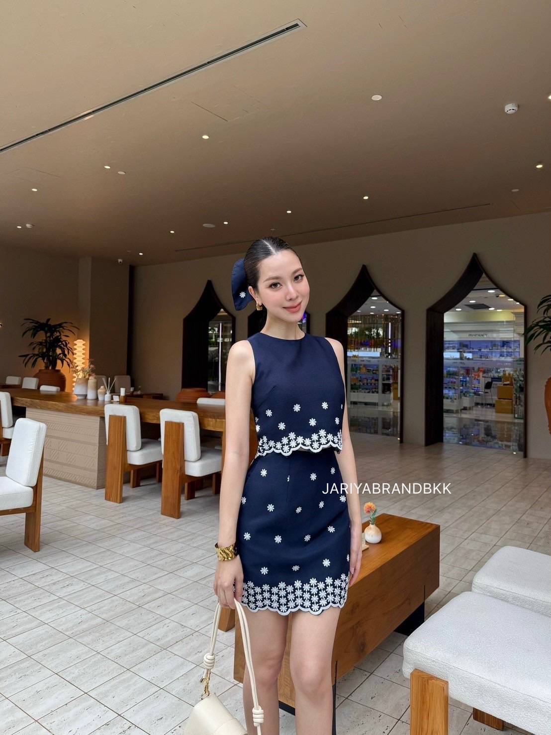 📌 DETAILS — 3-piece embroidered set featuring a sleeveless floral-embroidered top, a high-waisted skirt with built-in shorts, and a matching fabric scrunchie. This set is absolutely gorgeous in person — soft, breathable fabric that holds its shape well. Stylish, comfortable, and effortlessly elegant with a luxury feel!
