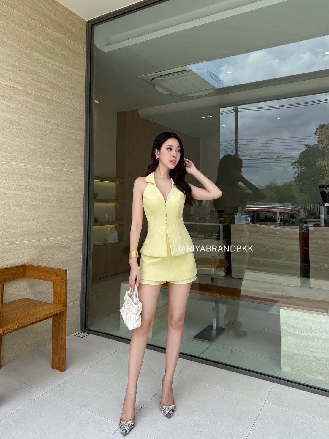 DETAIL ~~ ชุดset 2ชิ้นเสื้อคอปกแขนกุดมีกระดุมทองด้านหน้ามาพร้อมกระโปรงกางเกงเอวสูงขาสั้น สวยมากค่ะ ใส่สบายดูดีมากเลยค่ะ งานจริงสวยมากค่ะ ผ้าเนื้อนุ่มมากใส่สบาย ขึ้นทรง งานสวยเวอร์ดูดีดูแพงมากเลยค่ะ