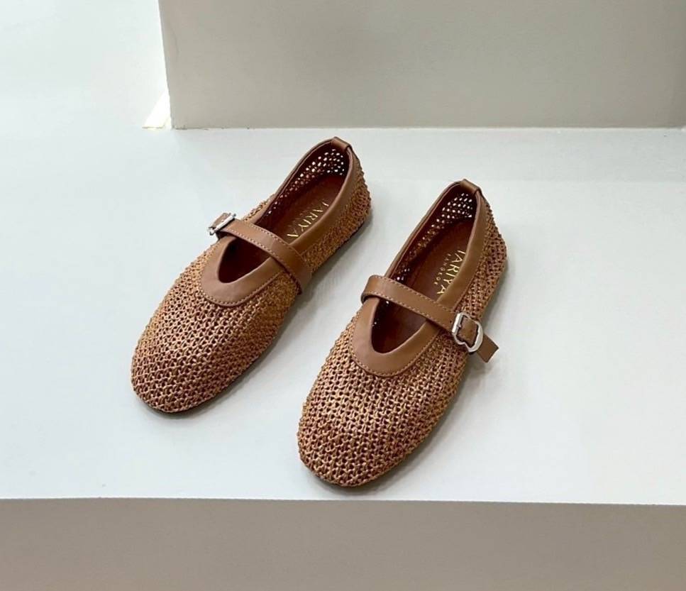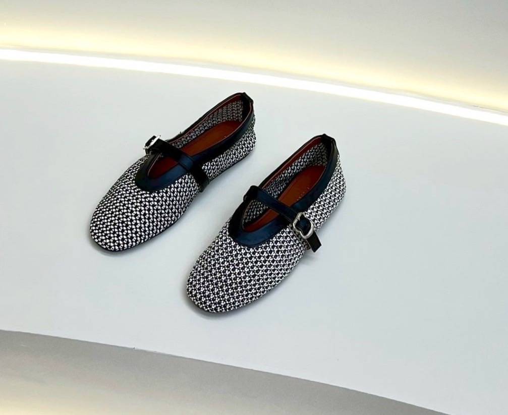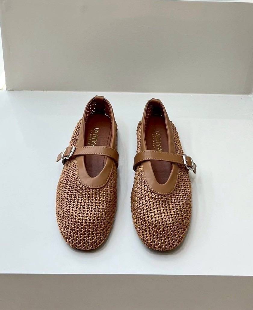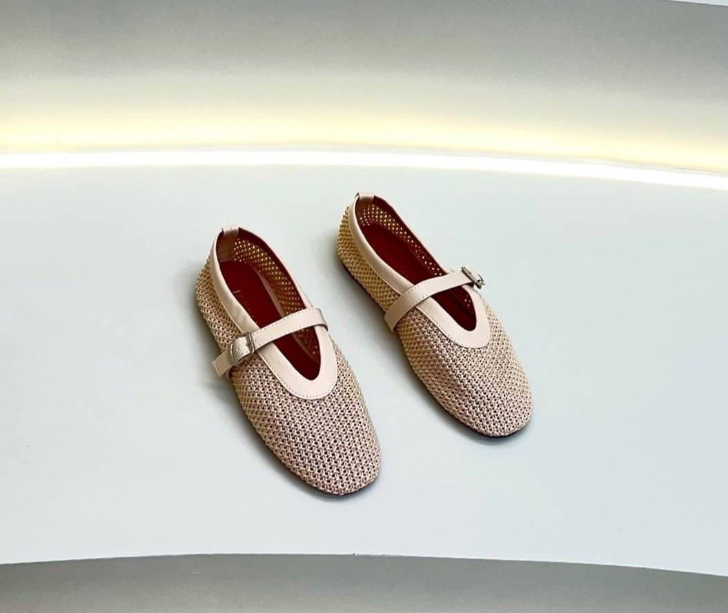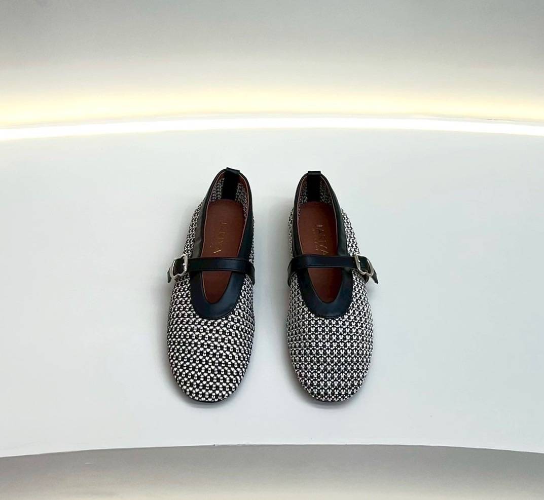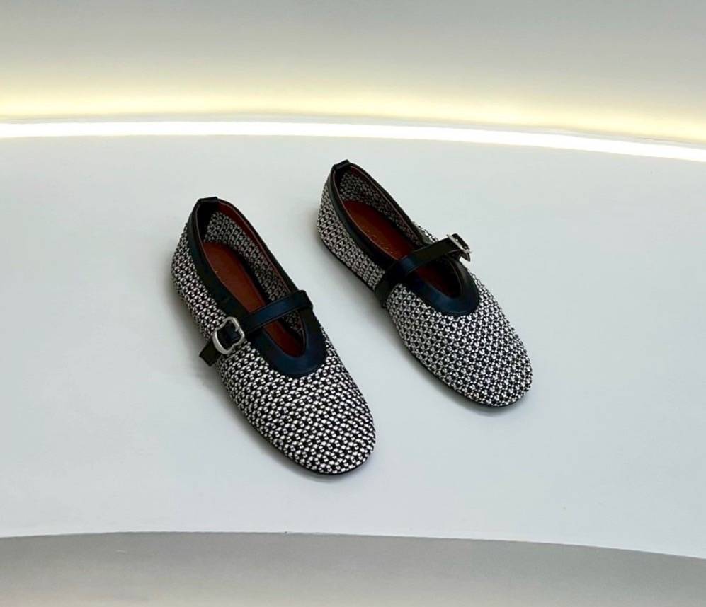 ๐ Detail: Slip-on cut shoes with a front strap made from thick tweed fabric. Elegant and simple, perfect for matching with any outfit for special occasions. Our store ensures careful QC and excellent craftsmanship, delivering comfortable wear and a flattering fit. (Comes complete with original box.)
