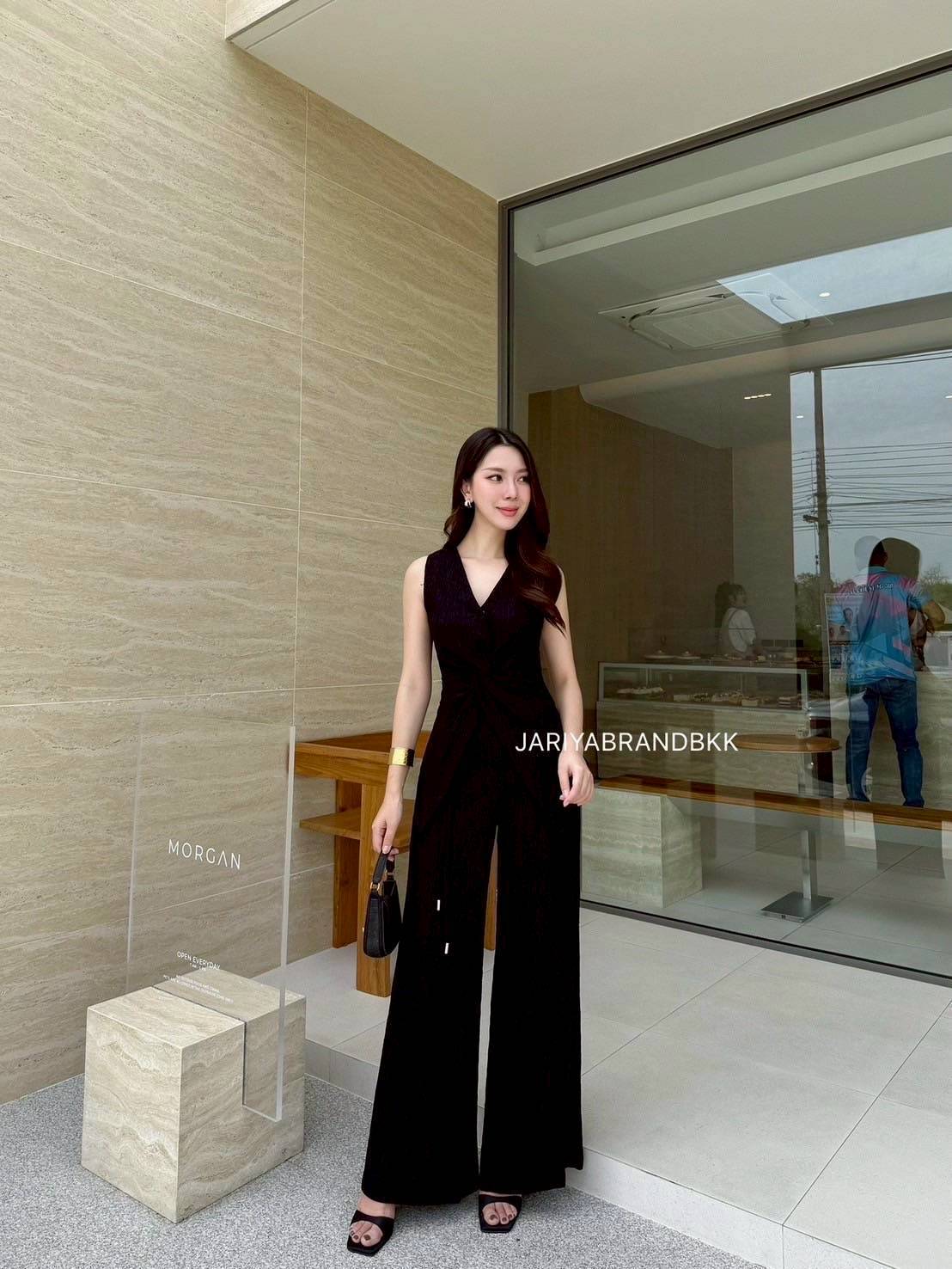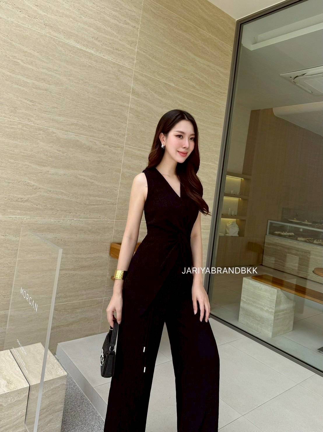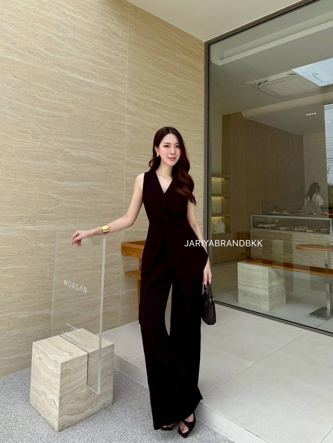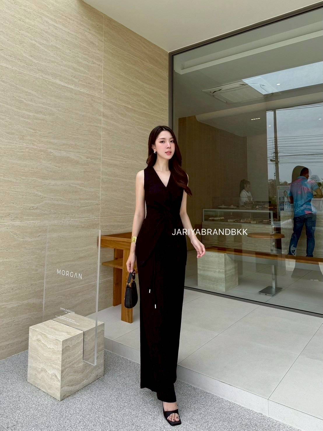 3-piece set with a sleeveless V-neck top, paired with high-waisted straight-leg long pants with a drawstring waist. Very beautiful, comfortable, and looks great. The actual product is gorgeous, made from very soft fabric that’s comfortable to wear and holds its shape well. The design is stunning, elegant, and looks high-end.