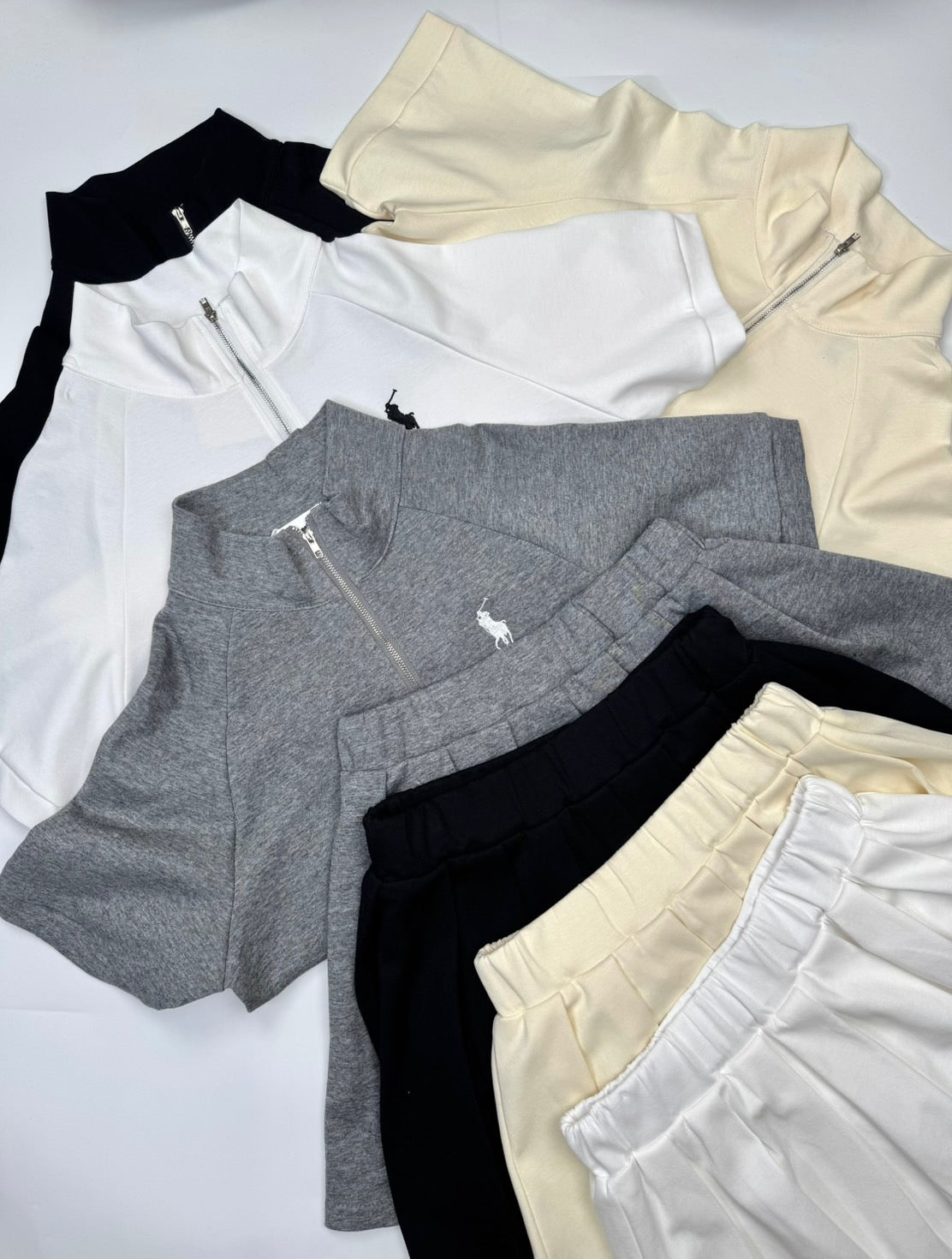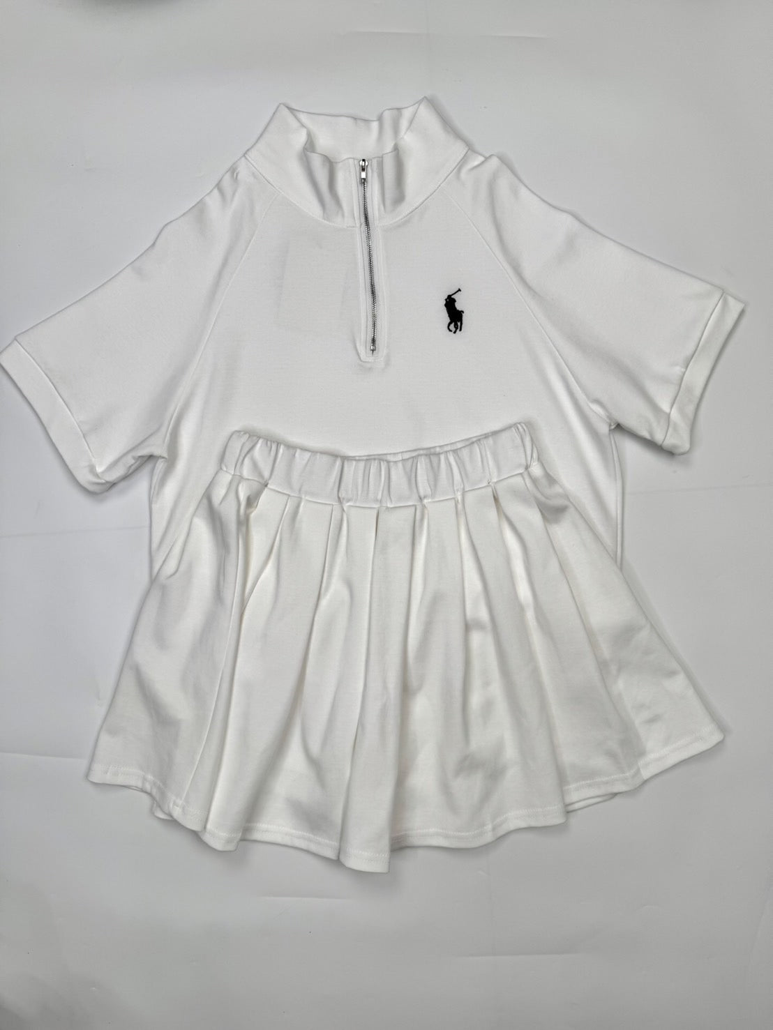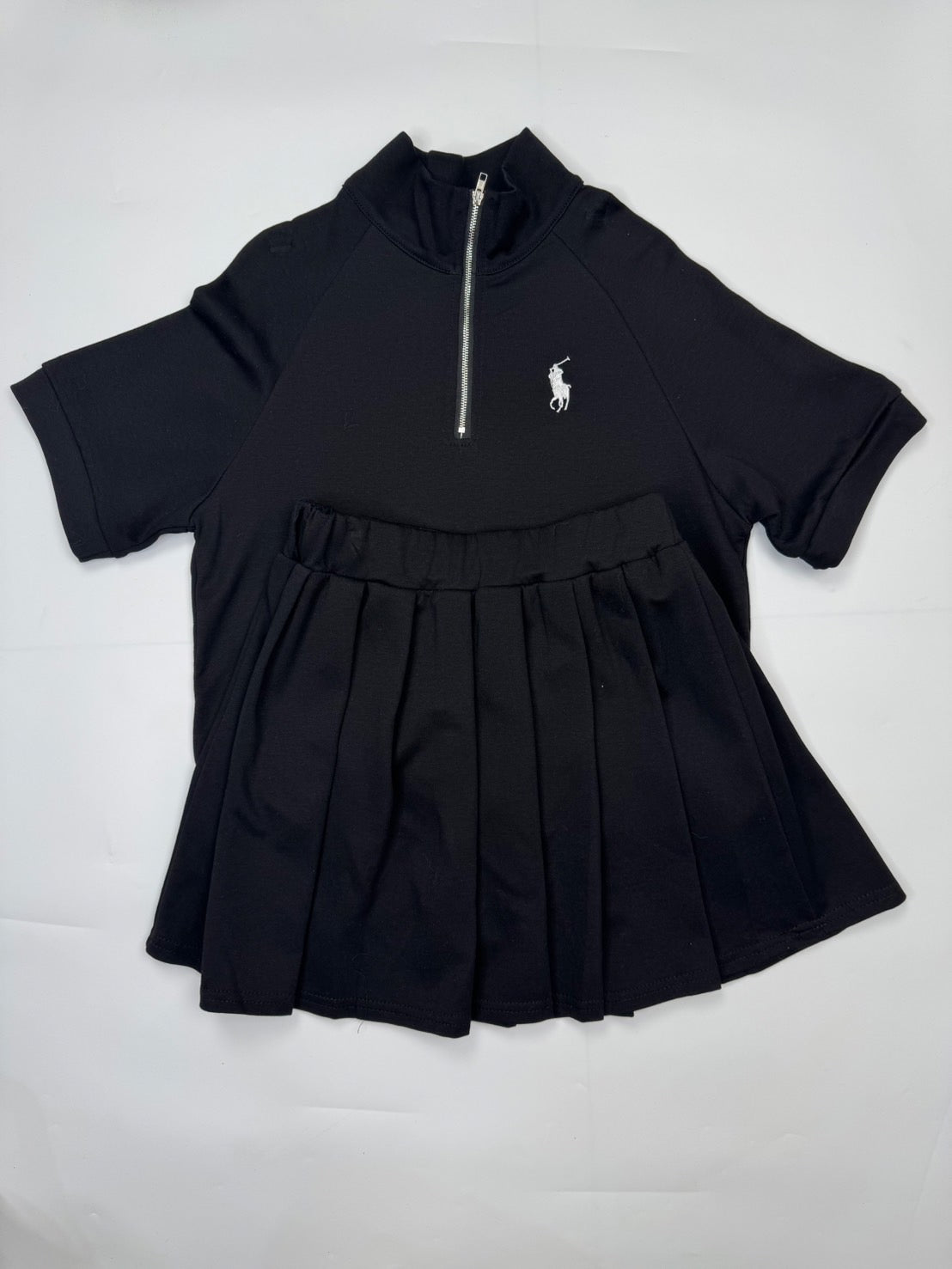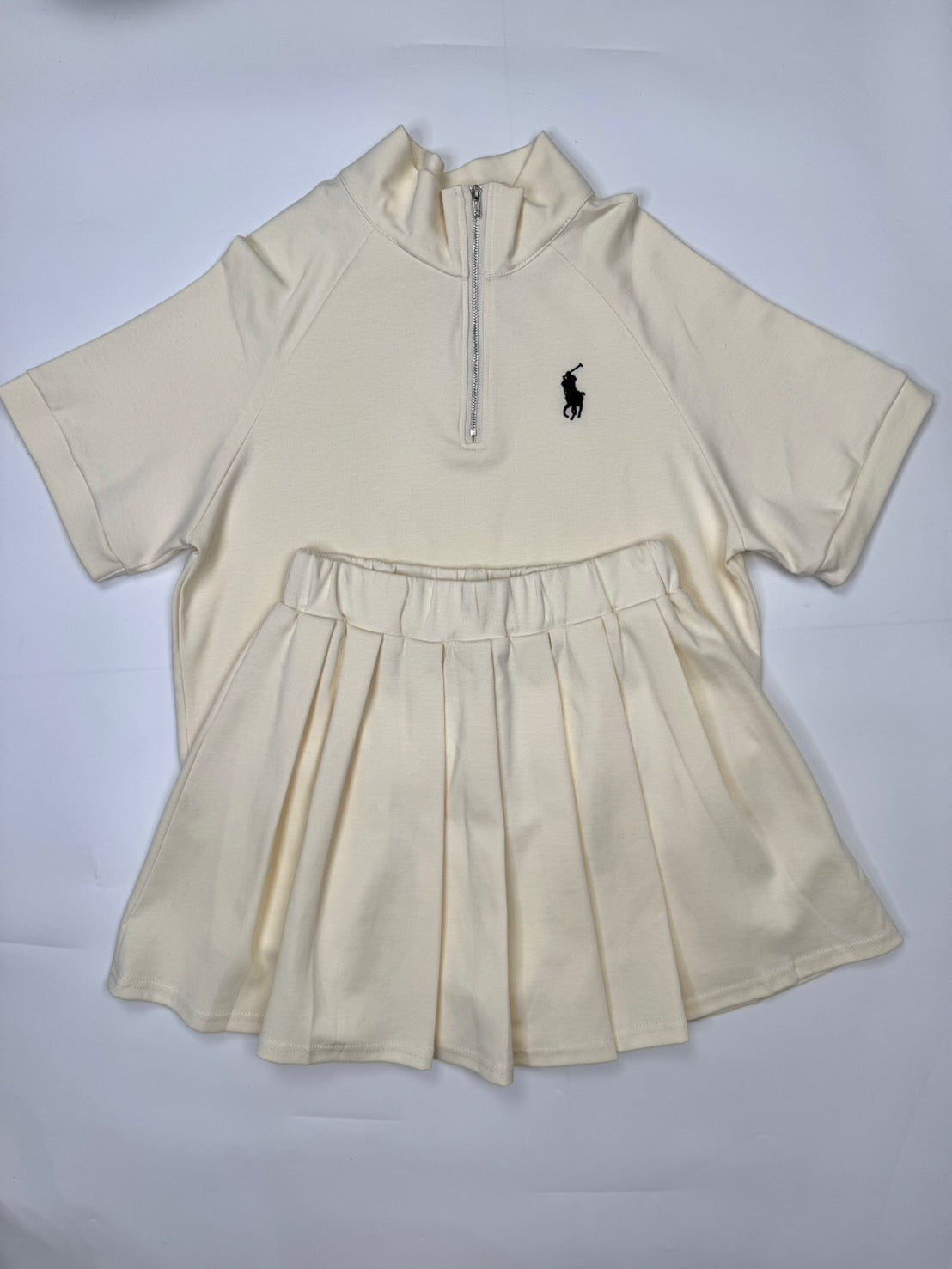🔥 This elegant Polo set features a short-sleeved top with a front zip closure, paired with a fully pleated skirt. Meticulously crafted from premium, soft-touch fabric, the ensemble is enhanced with refined Polo embroidery. Designed for comfort and effortless sophistication, this set is perfect for both casual and smart-casual occasions.