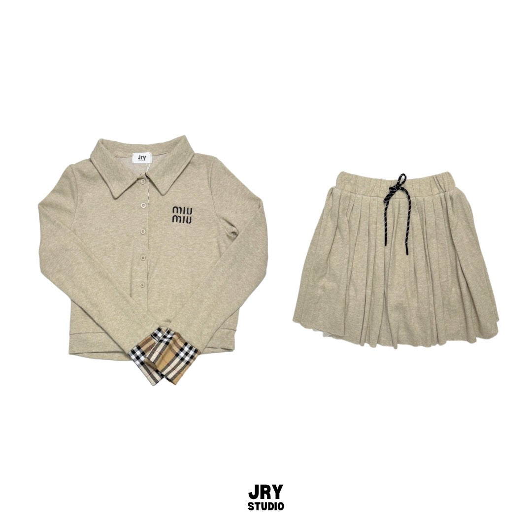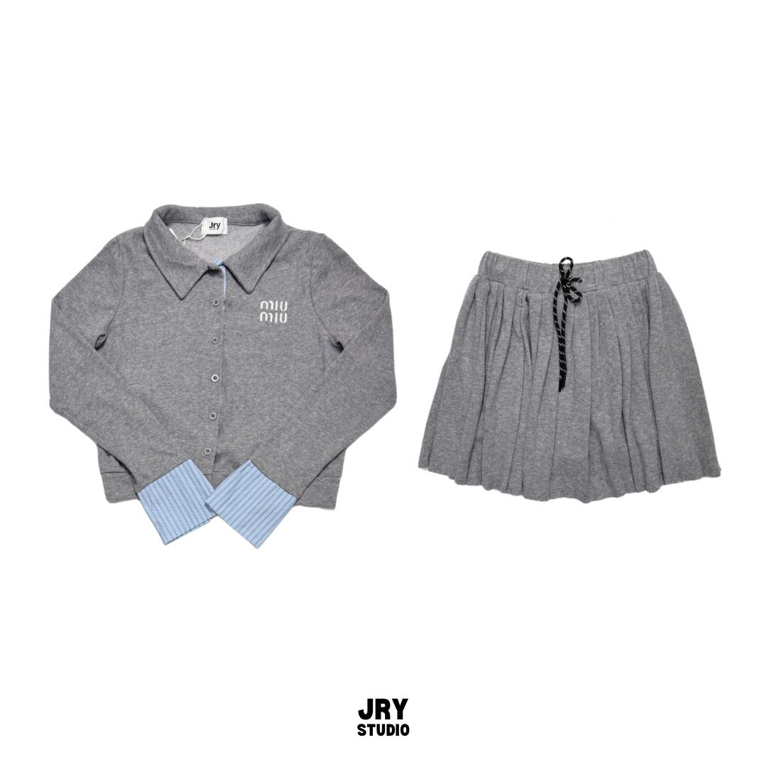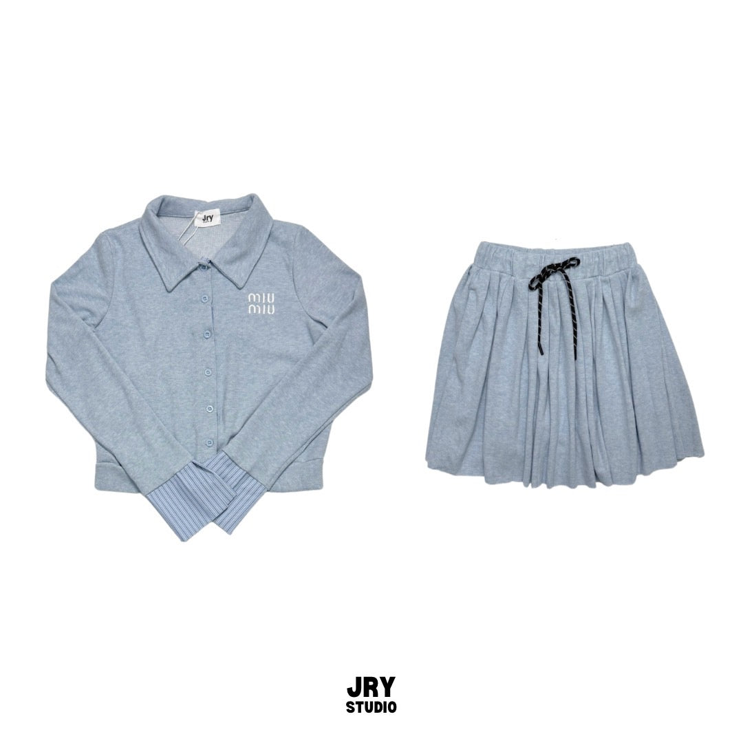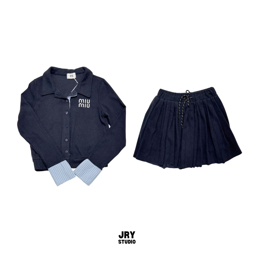 Set: Knit Collared Top + Pleated Skirt with MiuMiu Detail