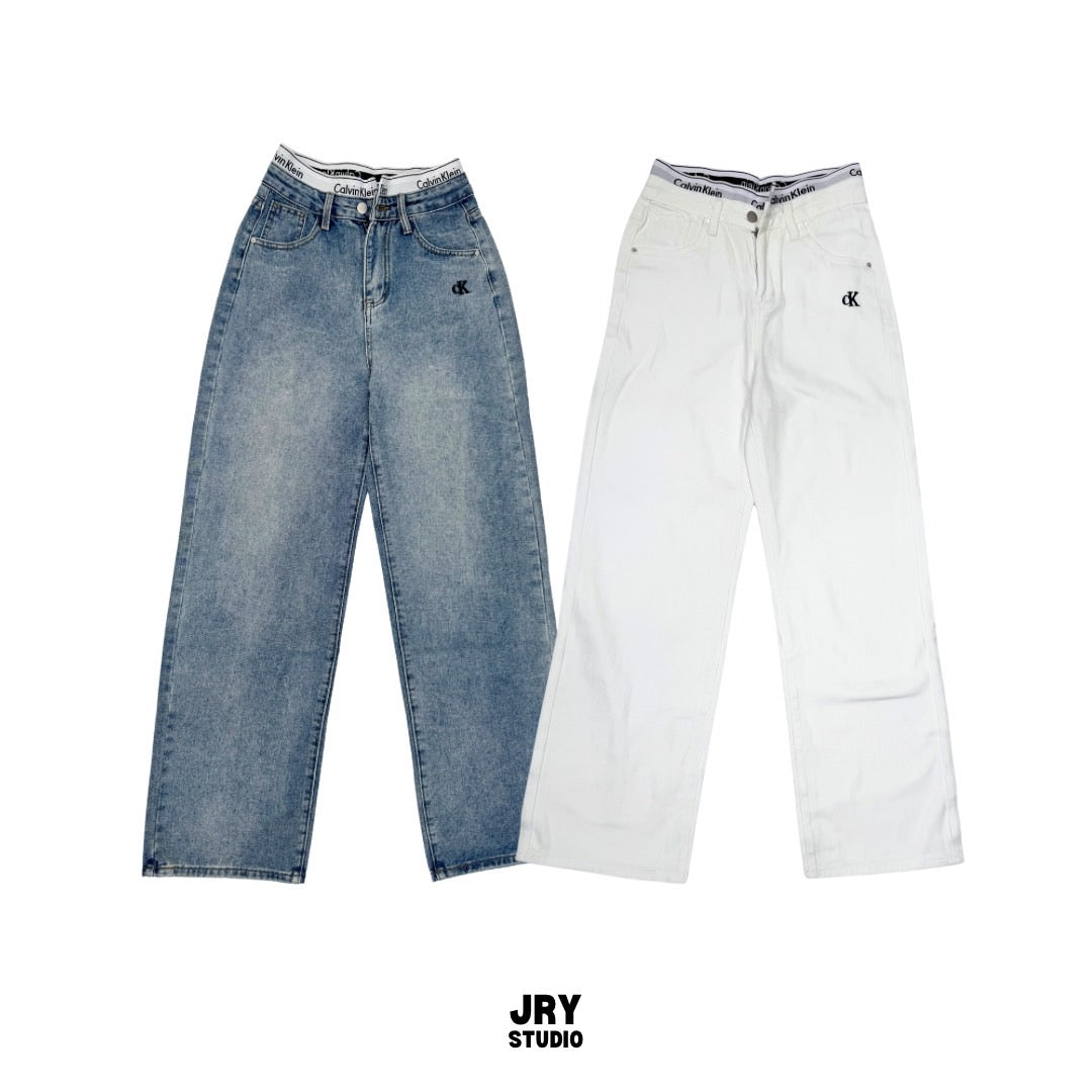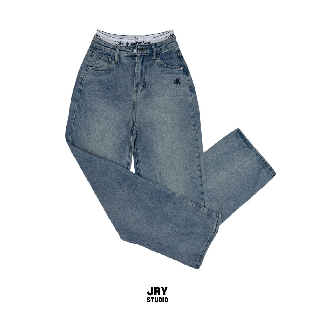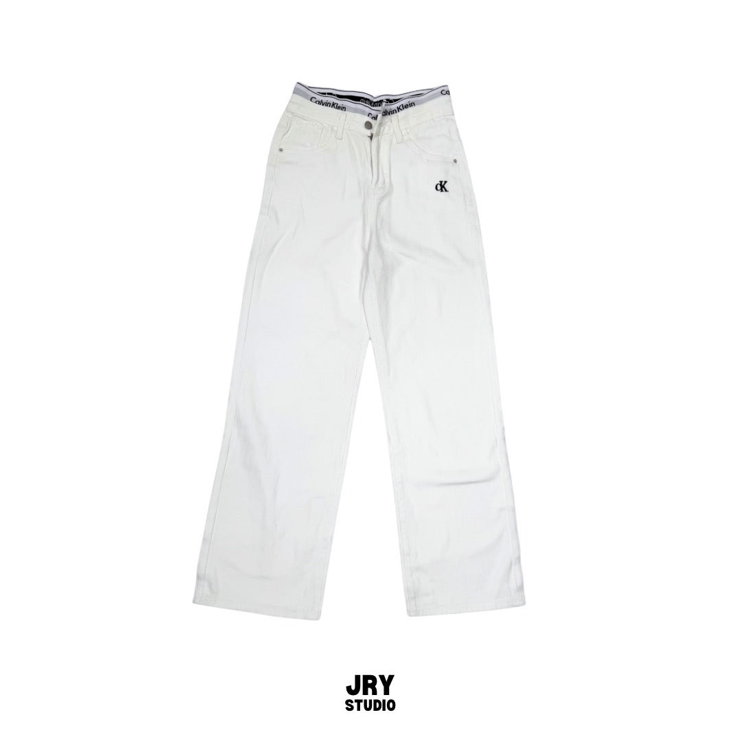 "New arrival: High-waisted jeans with CK embroidered edges. The fabric is great and they look stylish when worn. Definitely a must-have! The product is now available in-store."