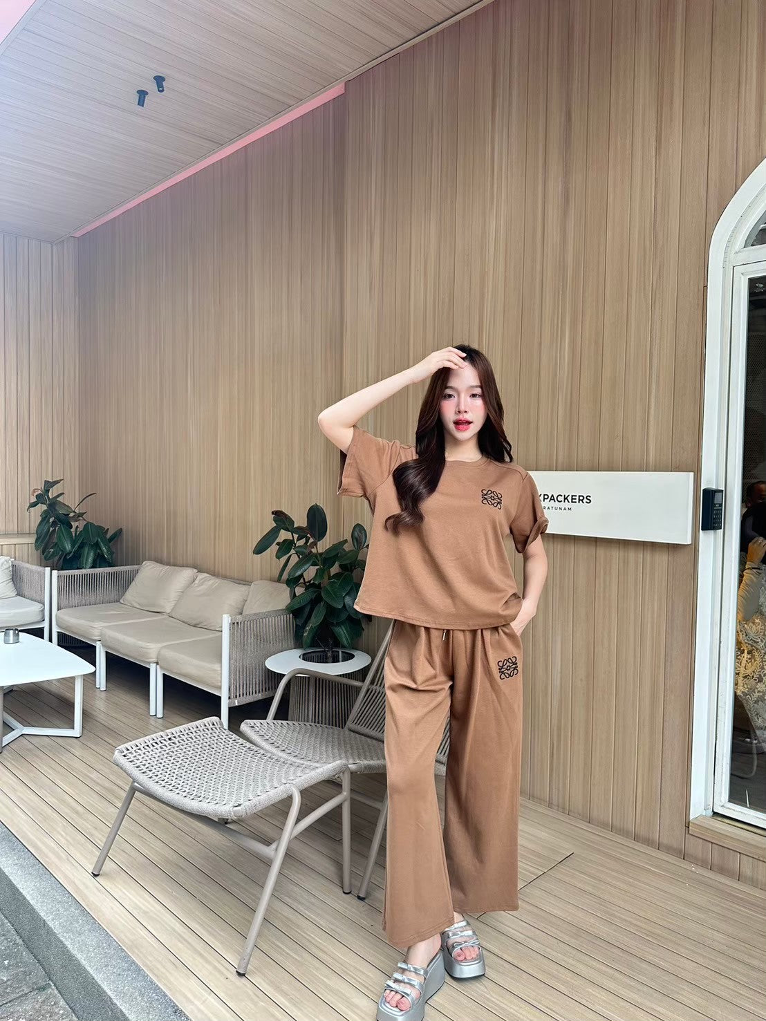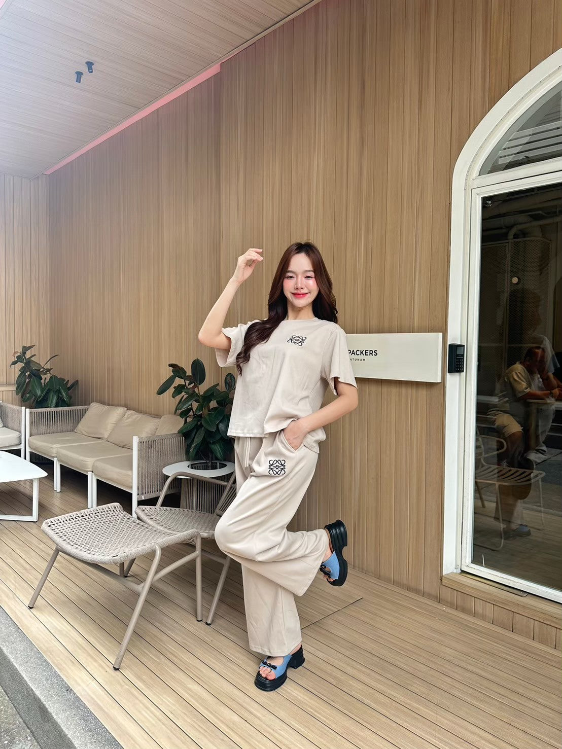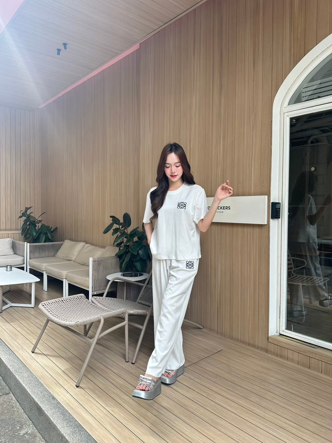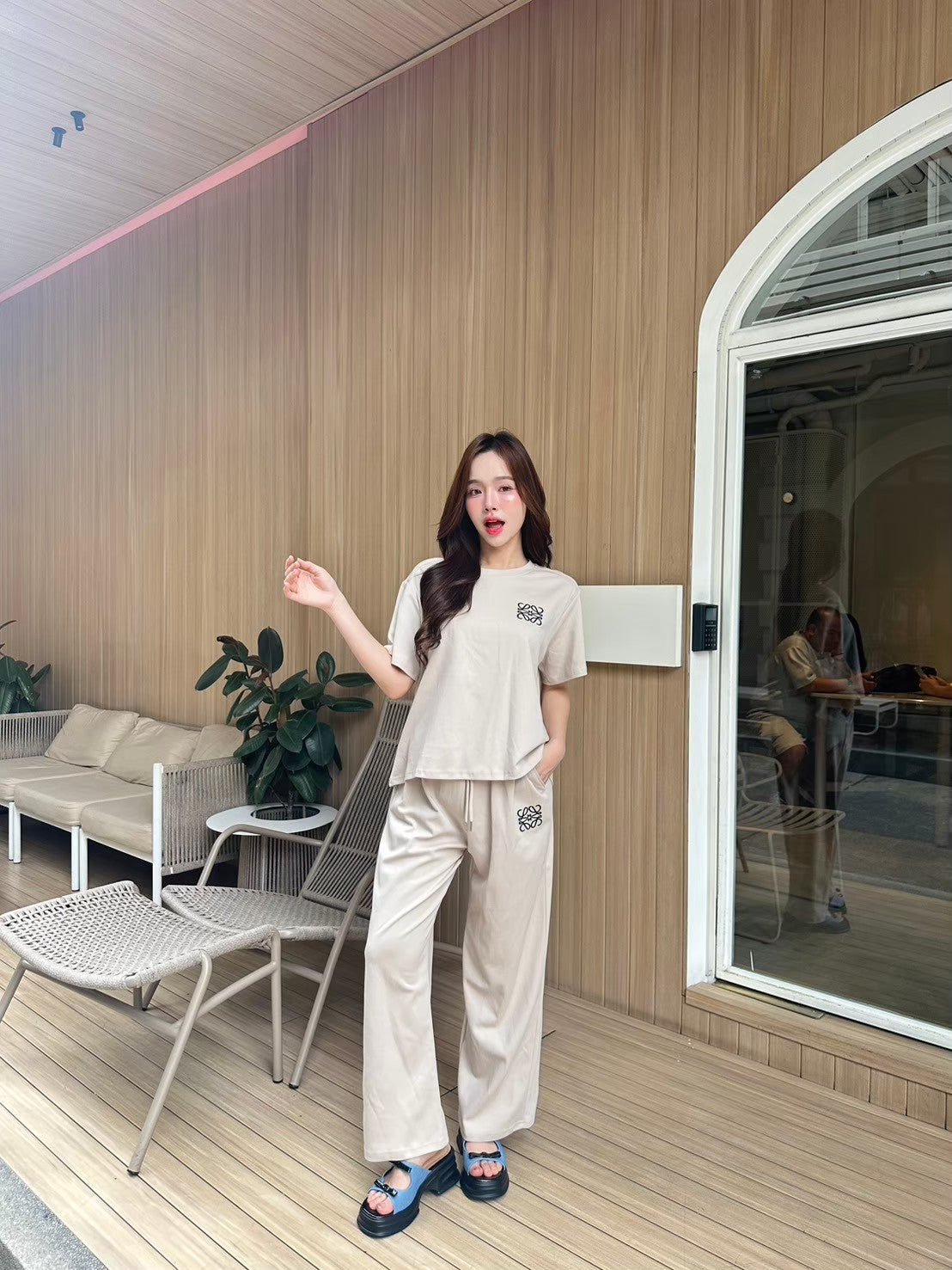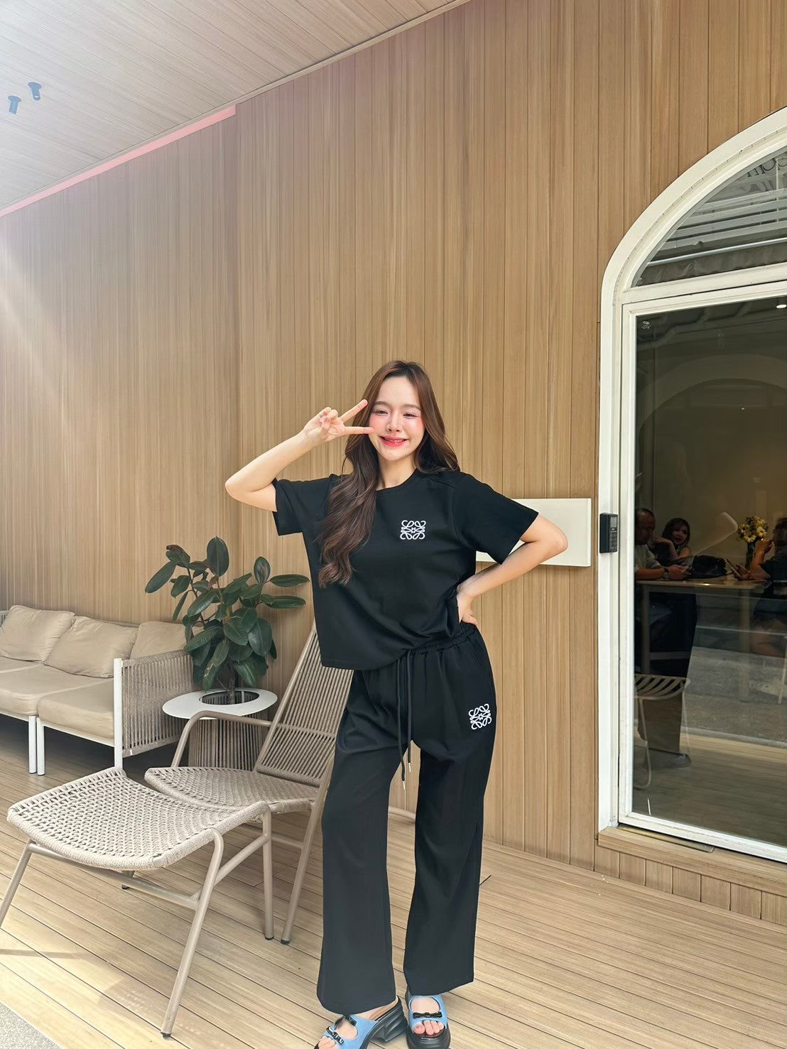 💛 2-Piece Set: T-shirt + High-Waisted Pants with Loewe Embroidery