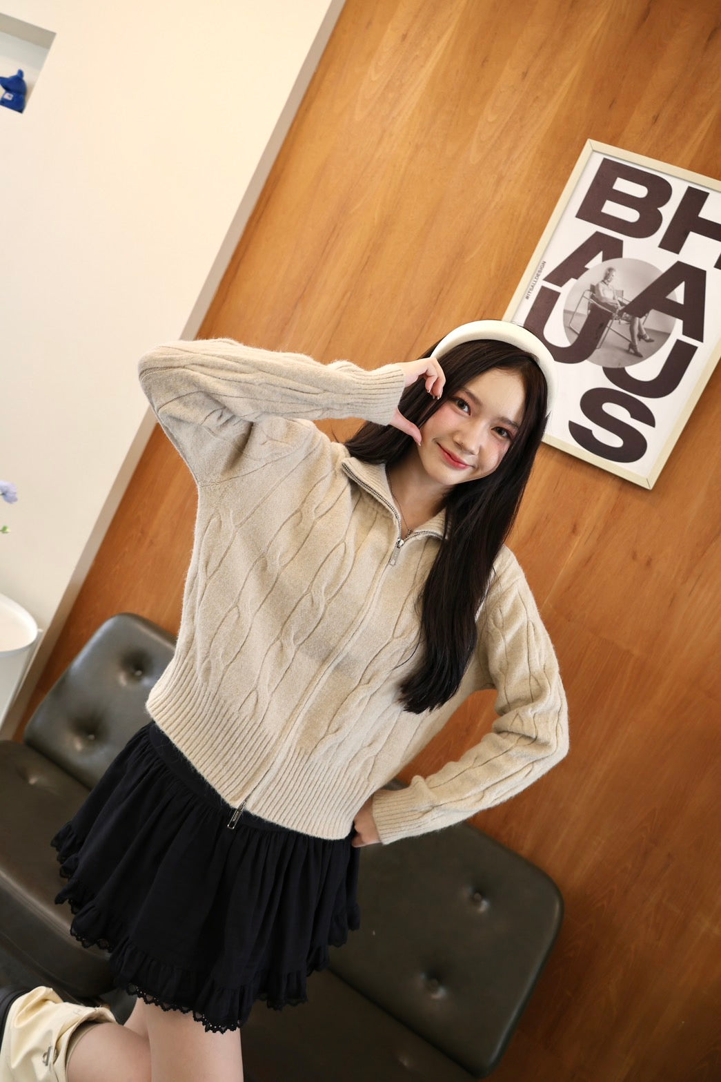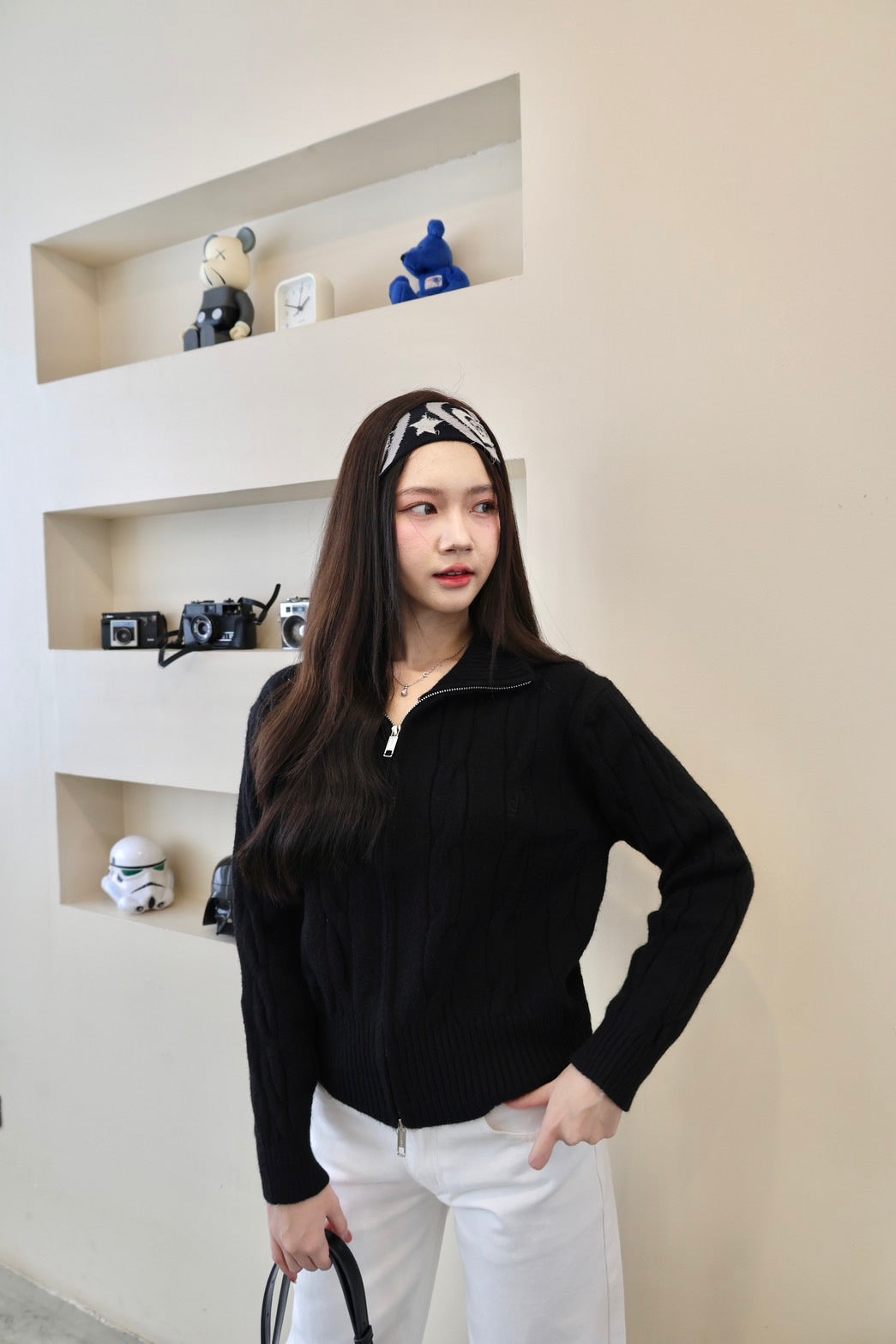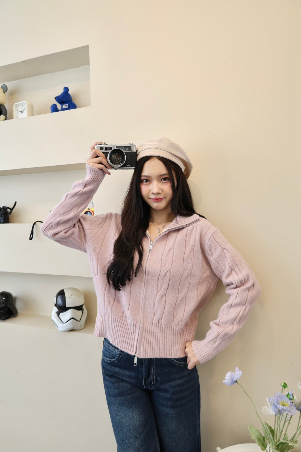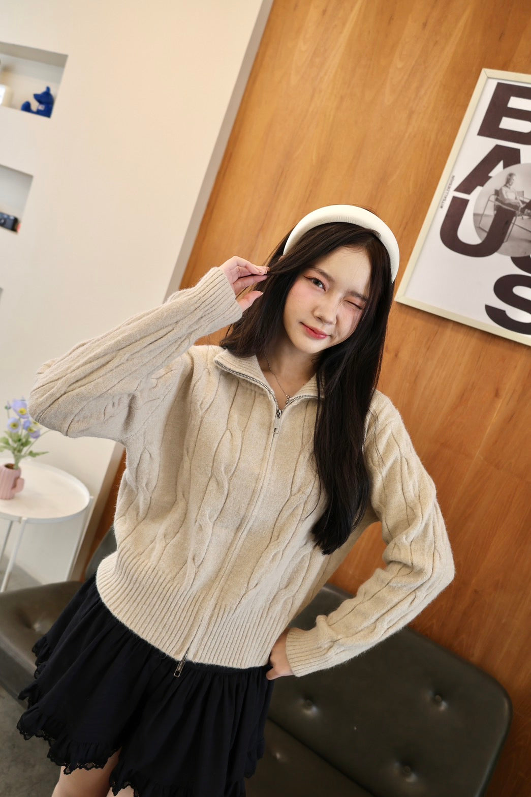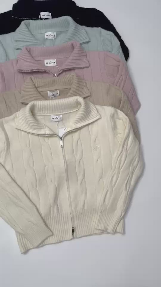 🧶 Ready to ship! Front-Zip Knit Sweater, Korean Style