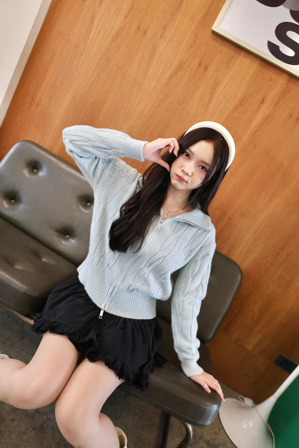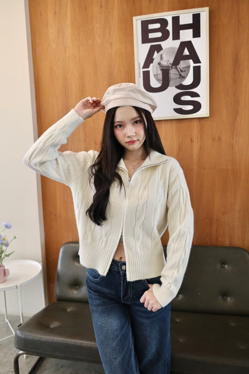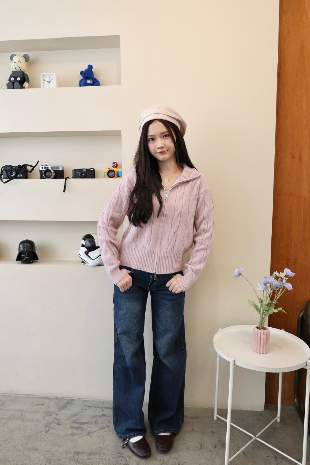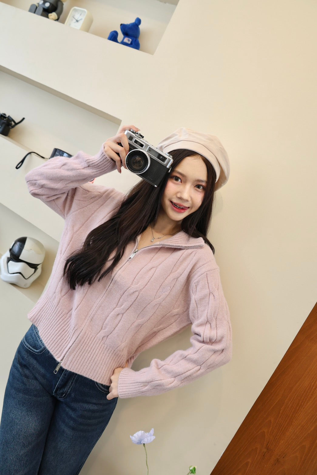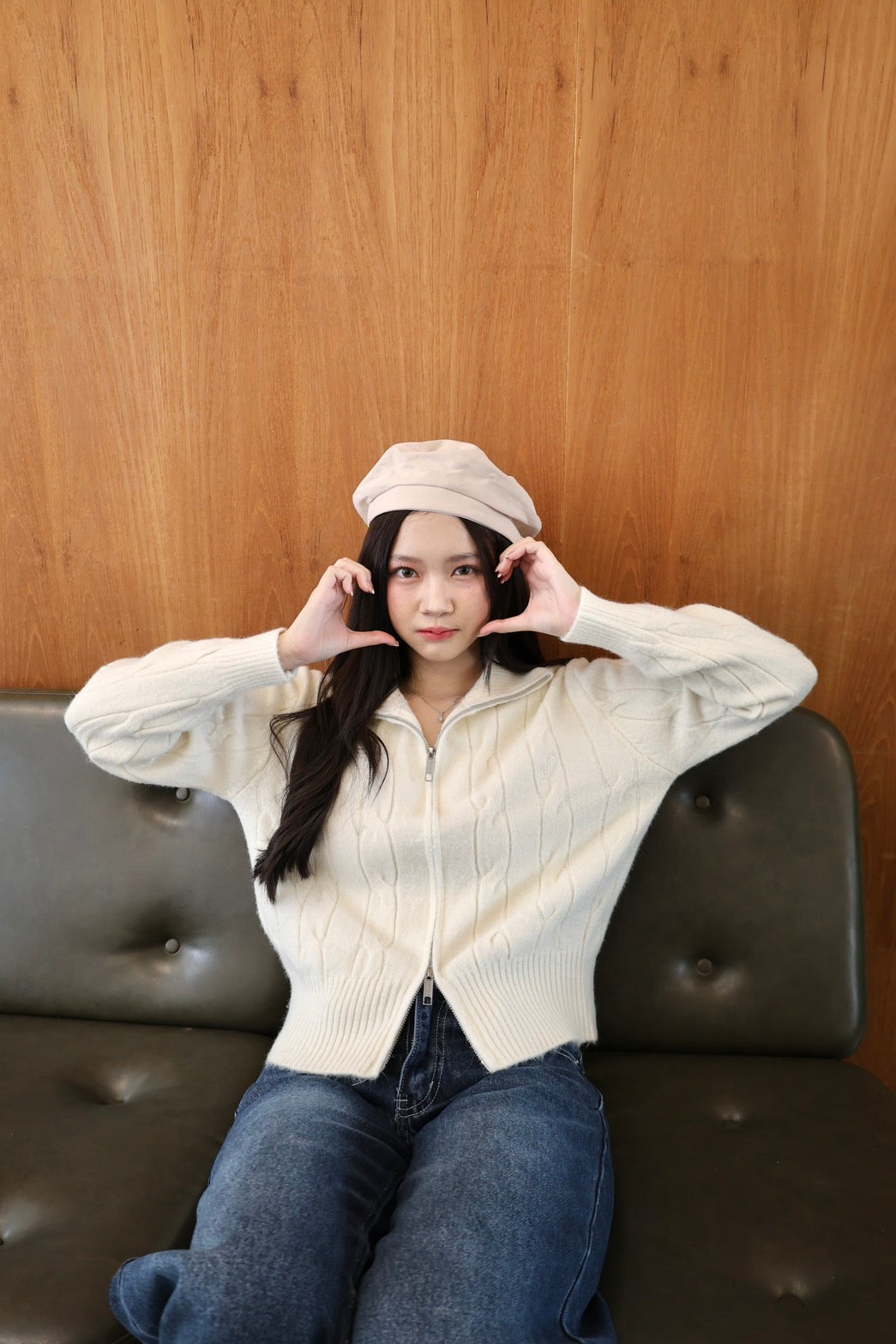 🧶 Ready to ship! Front-Zip Knit Sweater, Korean Style