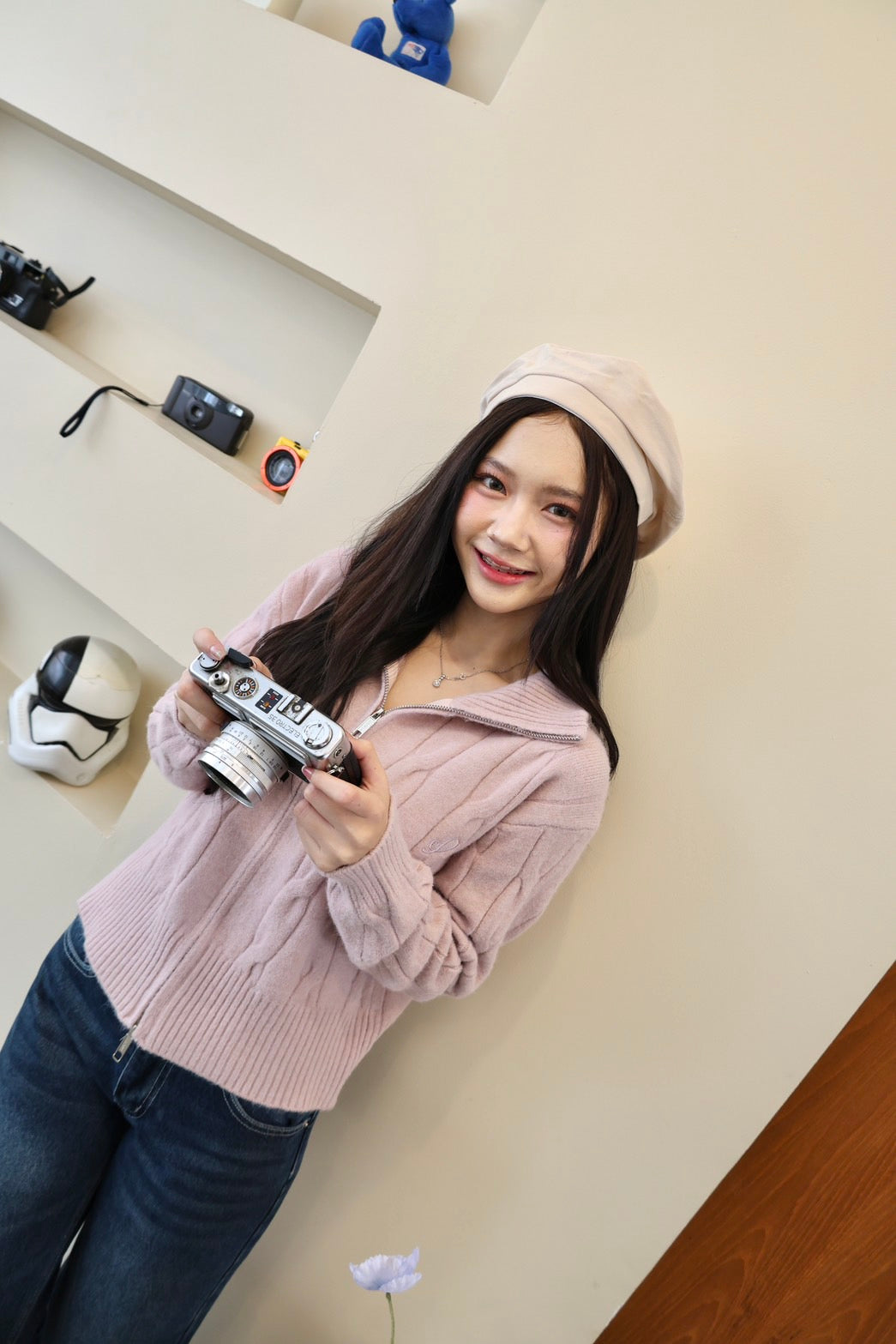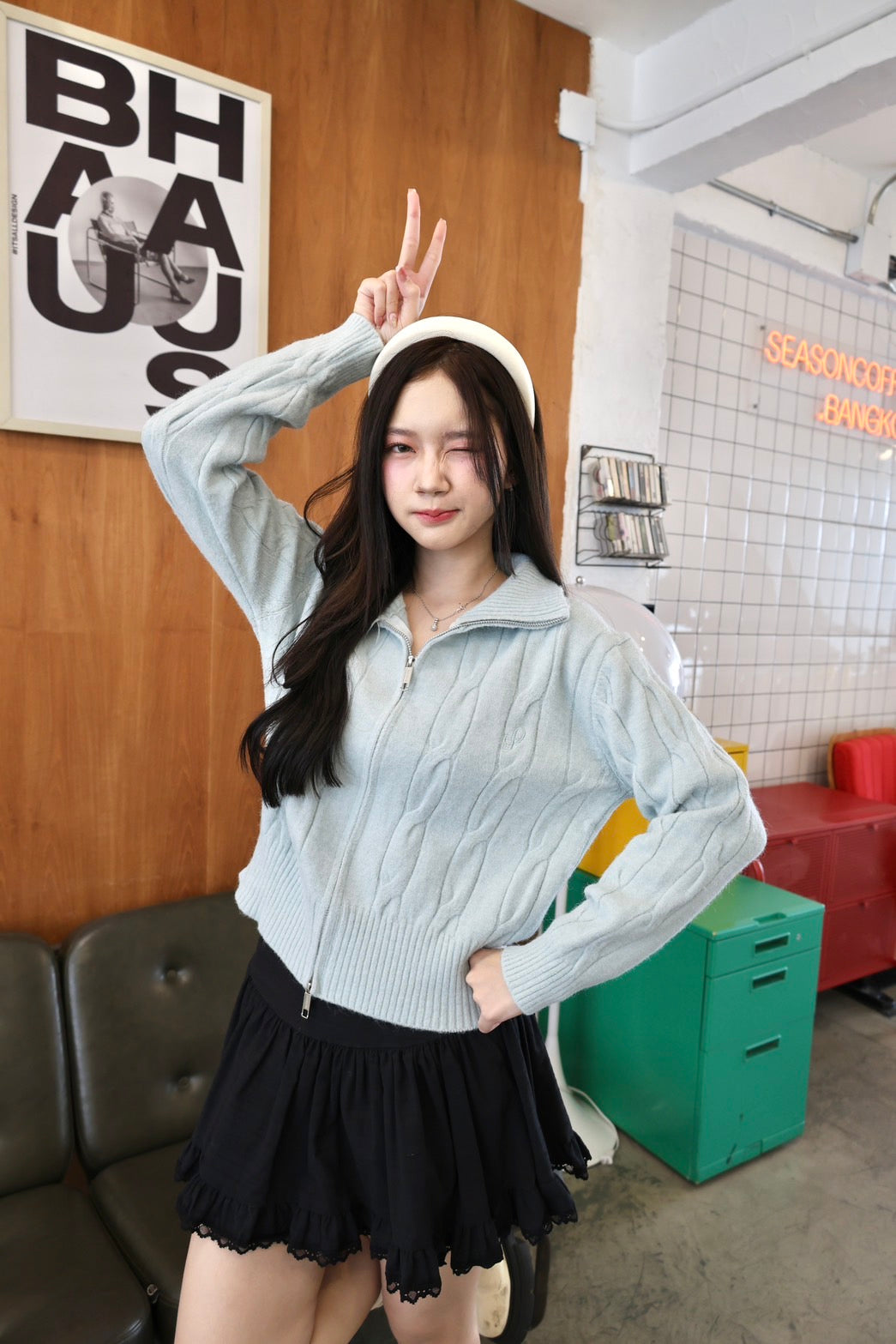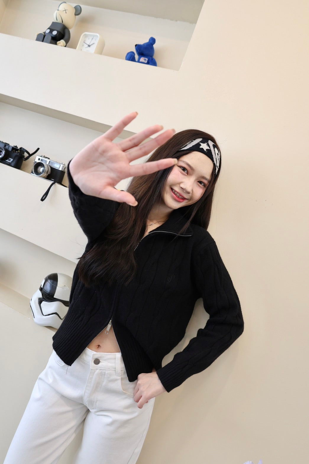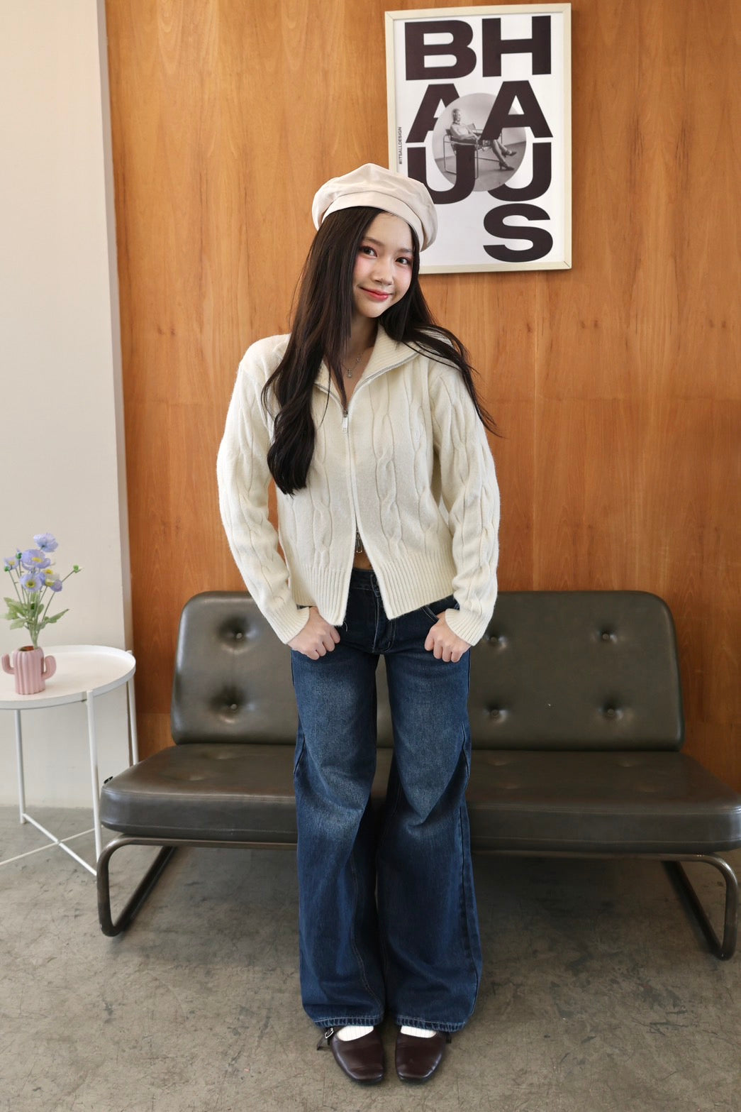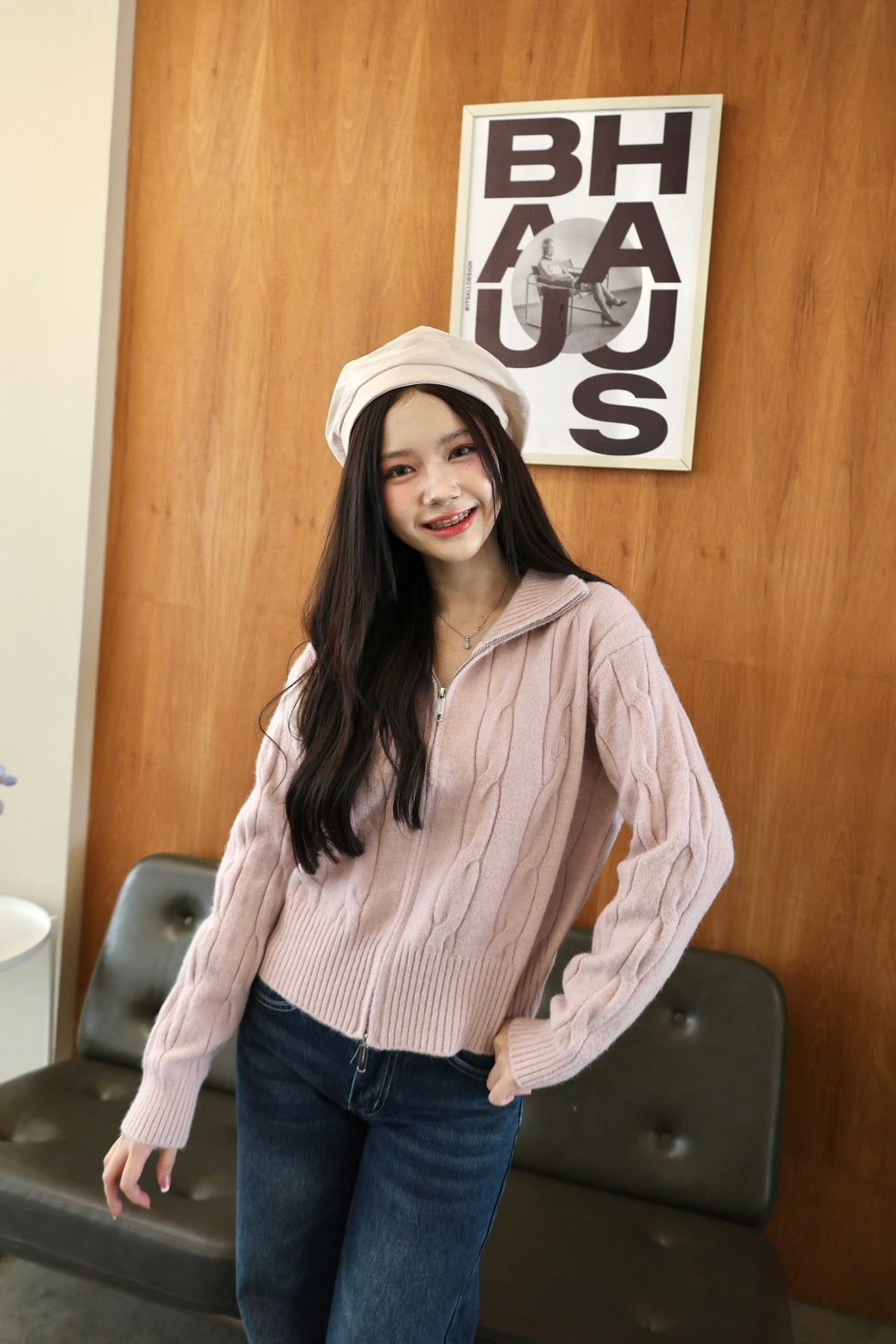 🧶 Ready to ship! Front-Zip Knit Sweater, Korean Style