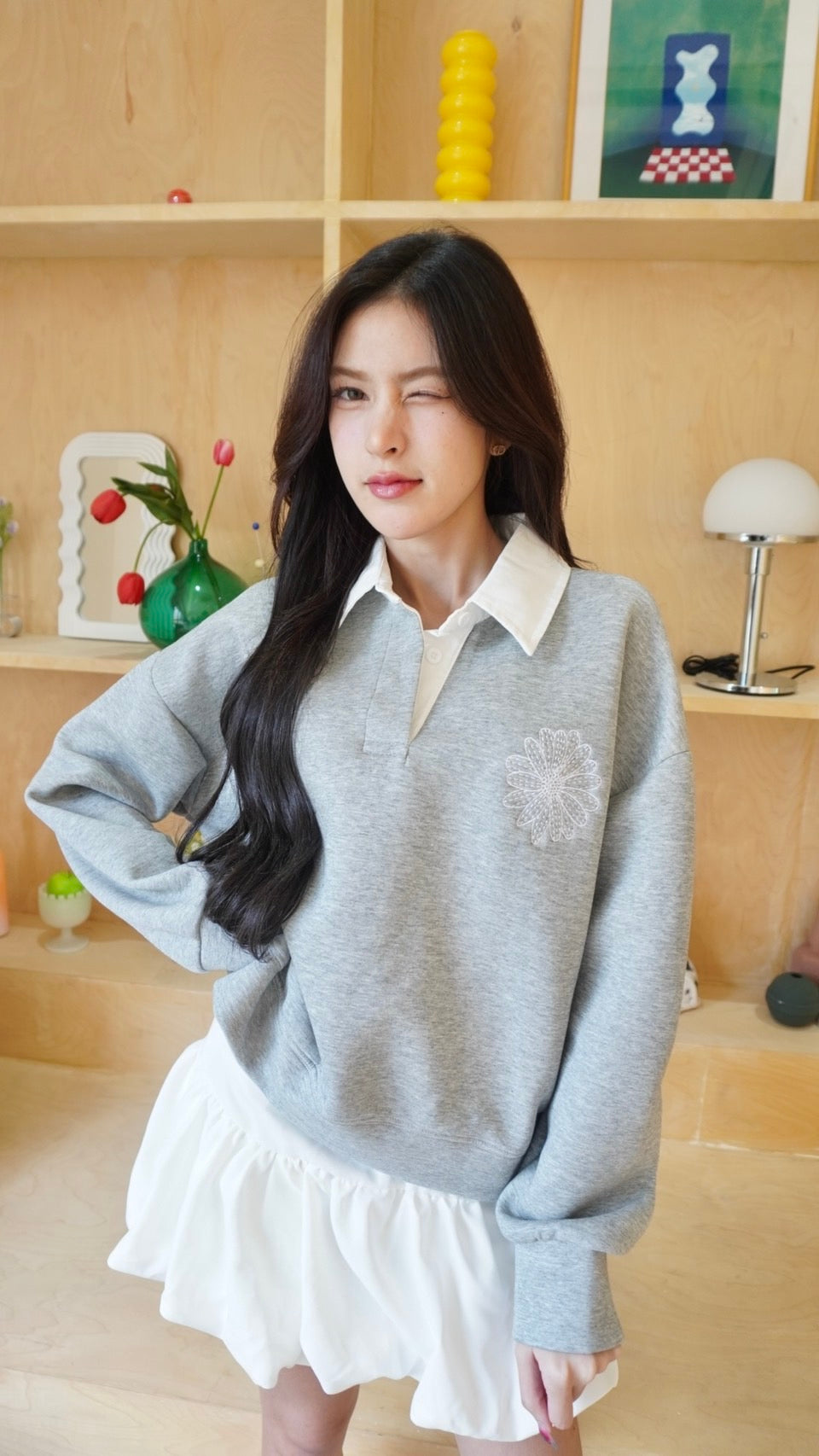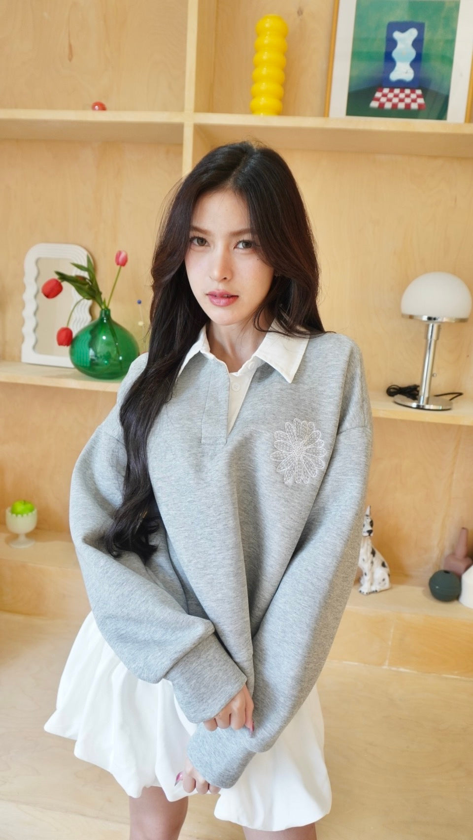 Chic collared sweater with “Mardi” embroidery
