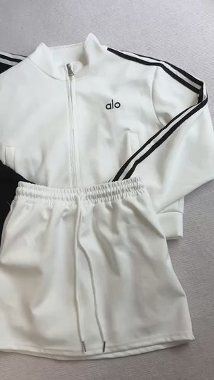 🩶 Set Includes: Long-sleeve zip top + short skirt with “alo” embroidery