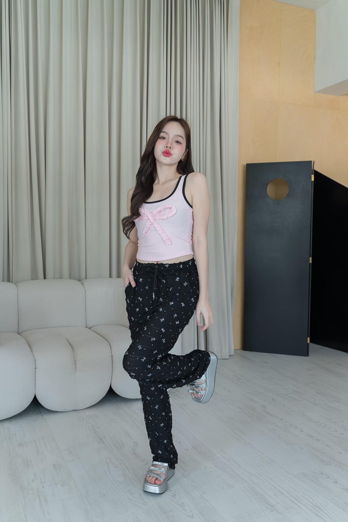 📍Bow-Print Long Pants – Soft, Comfy & Super Cute!