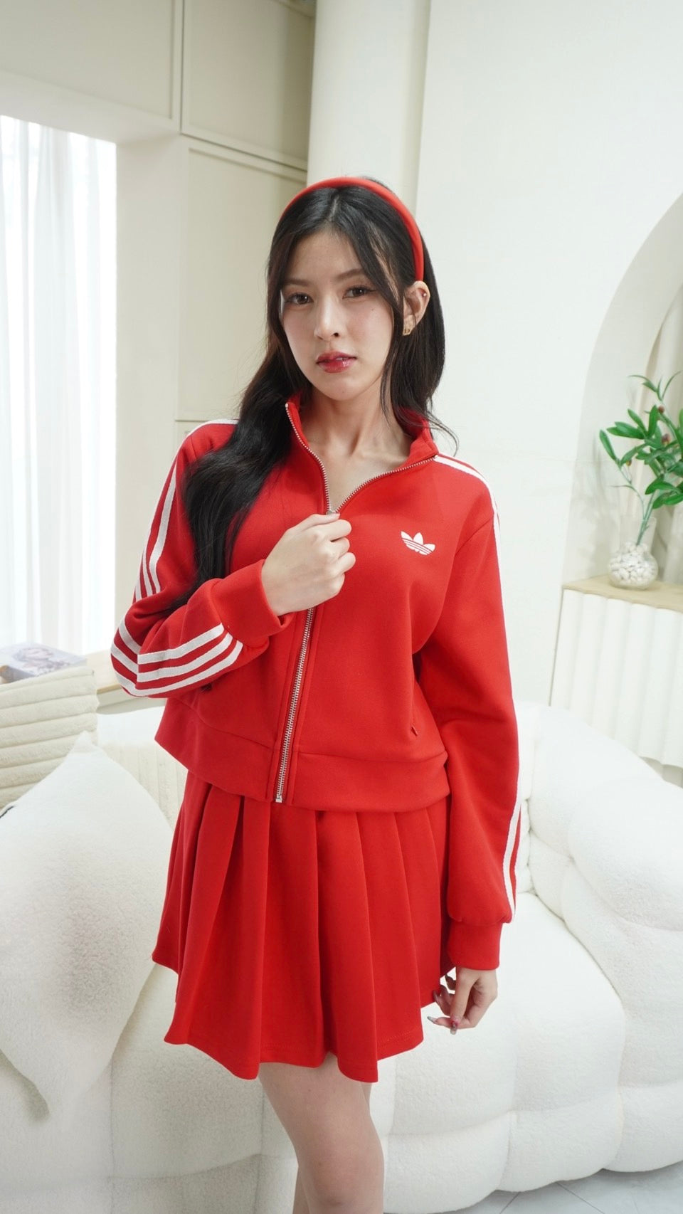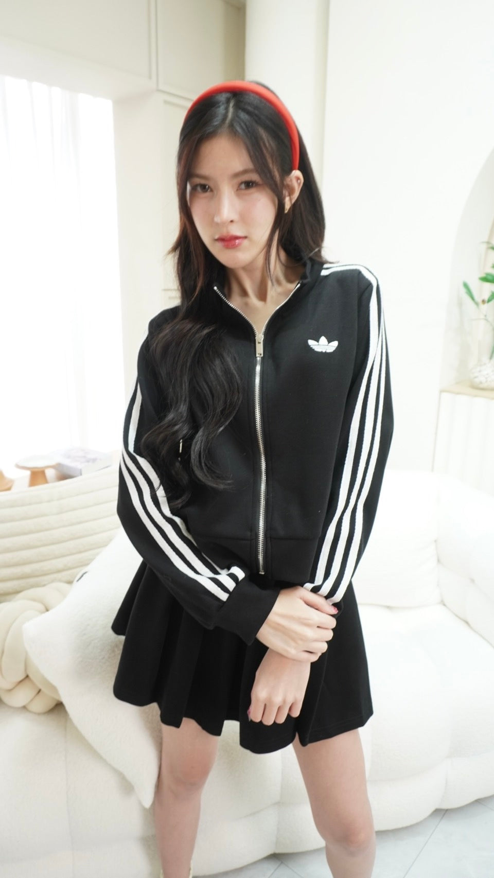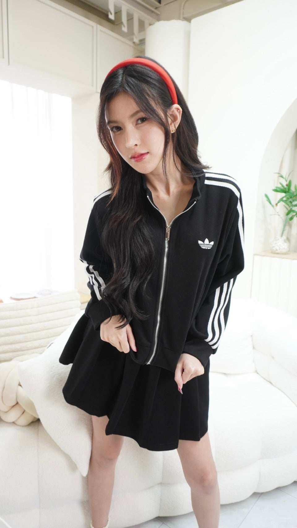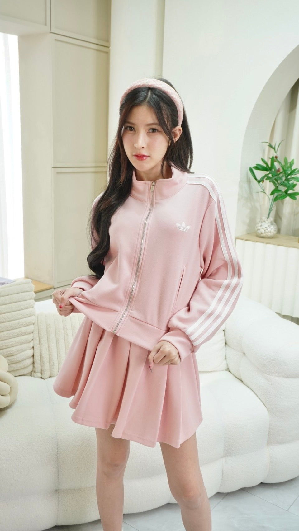 2-Piece Set: Long-sleeve zip-up top + Skirt with Adidas embroidery