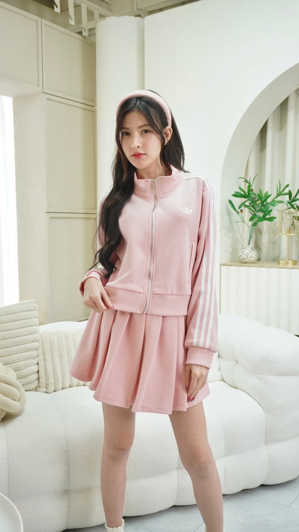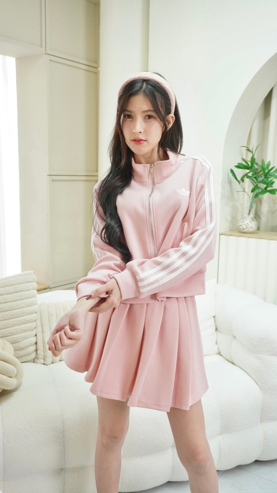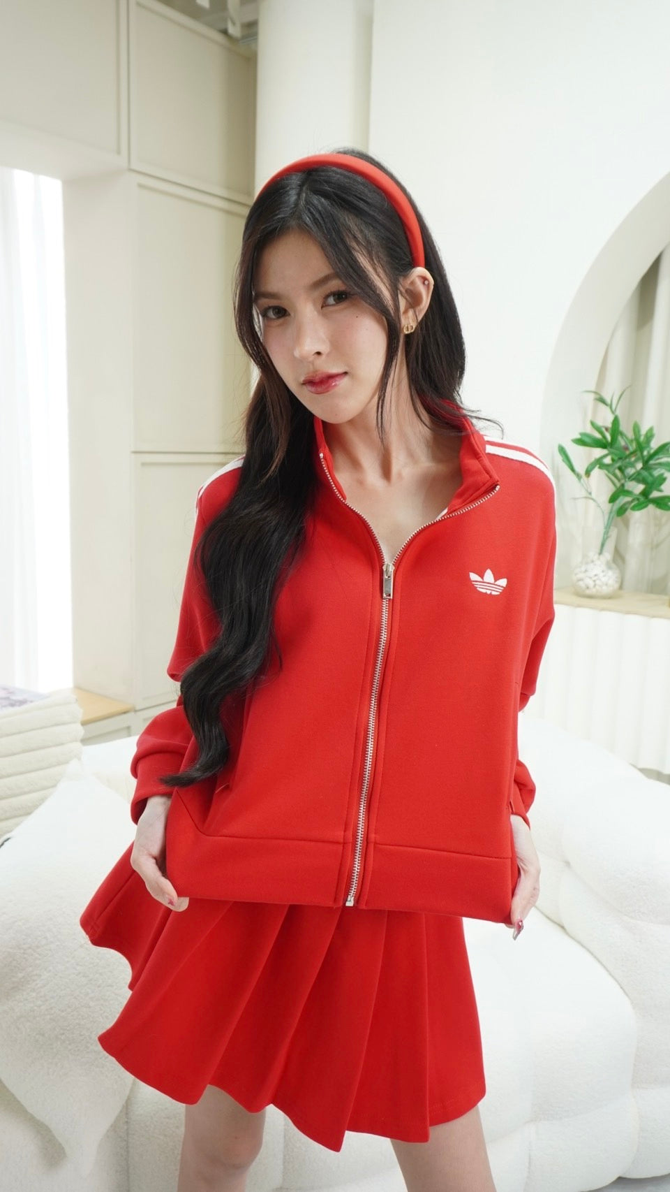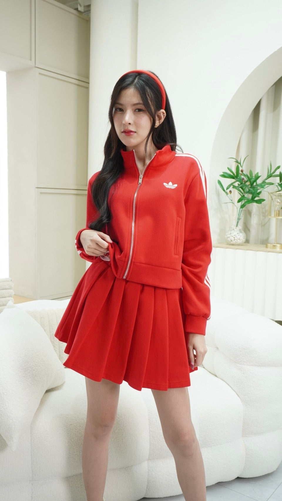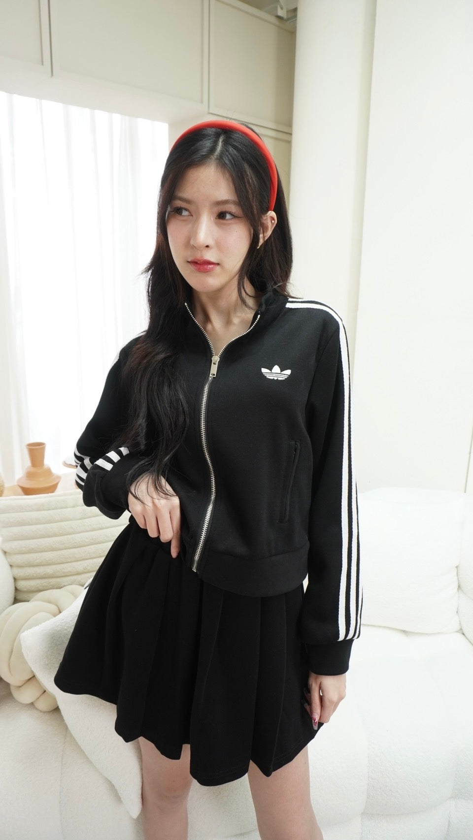 2-Piece Set: Long-sleeve zip-up top + Skirt with Adidas embroidery