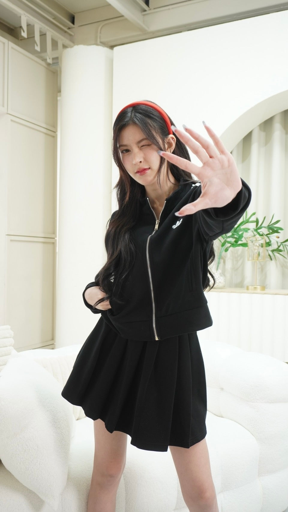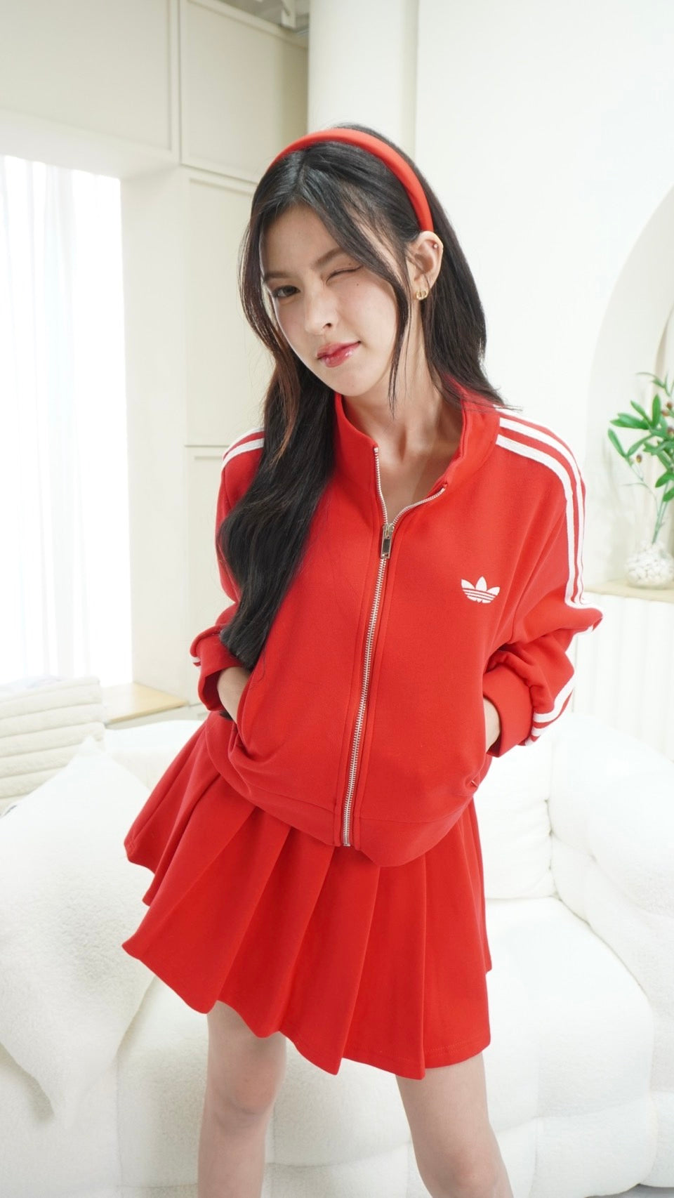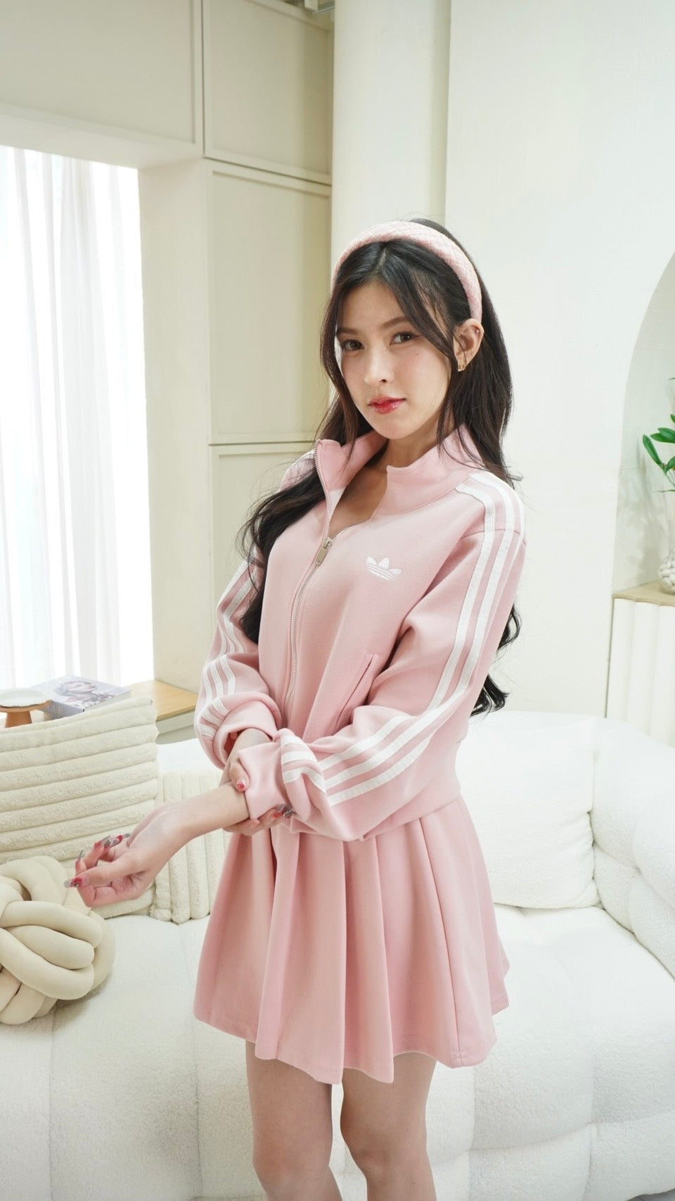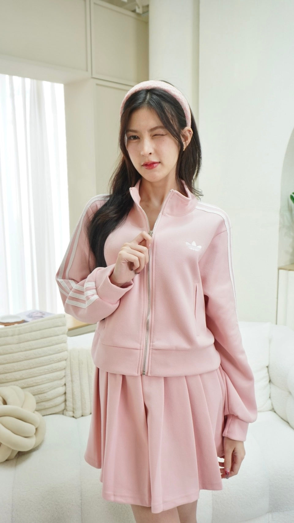 2-Piece Set: Long-sleeve zip-up top + Skirt with Adidas embroidery