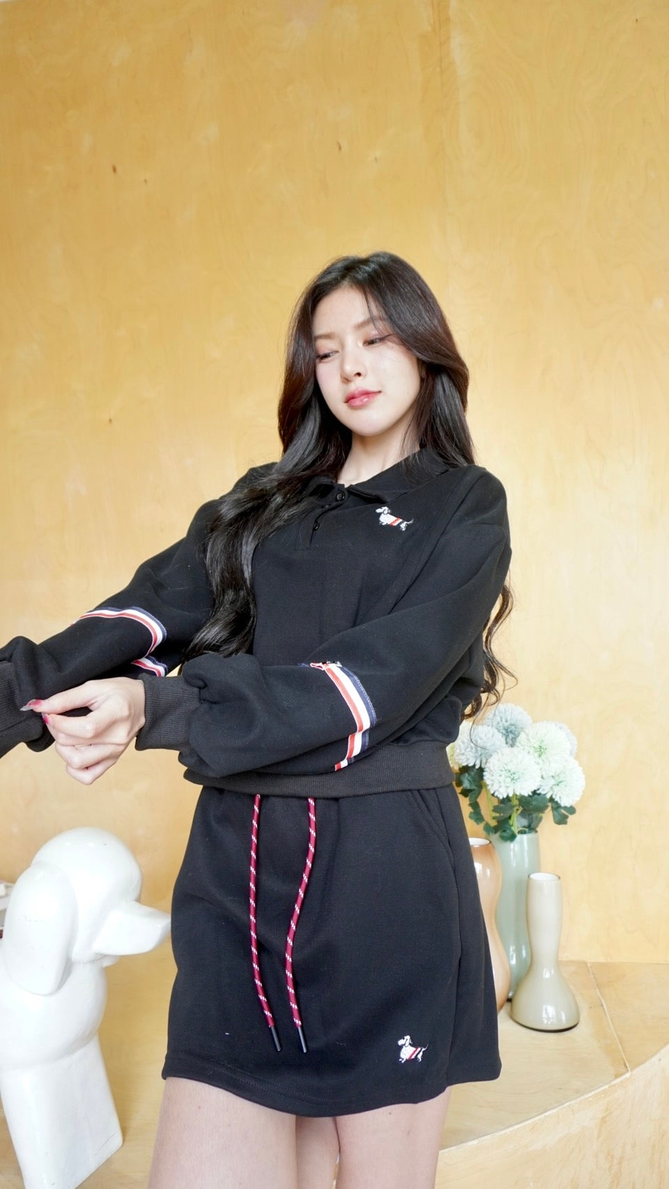 🔥Long-Sleeve Top + Mini Skirt Set with Puppy Embroidery