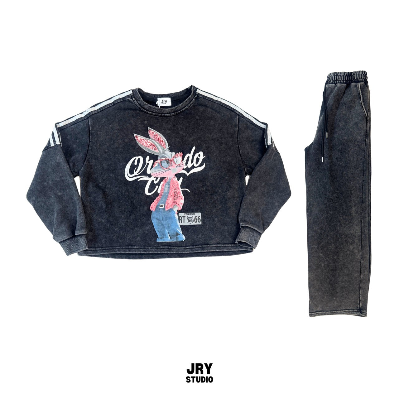 2-piece set: Long-sleeve top + Long pants (Bunny print)
