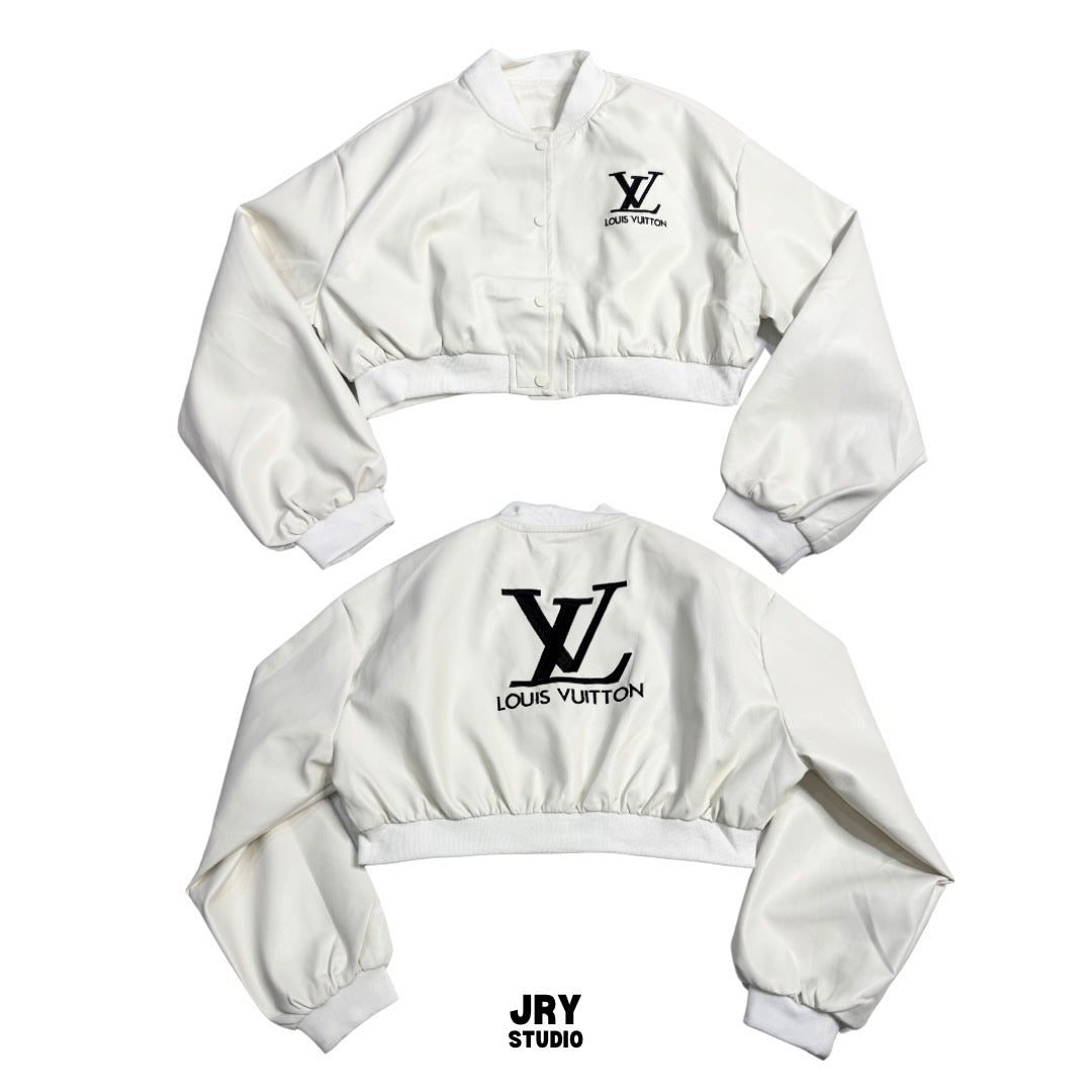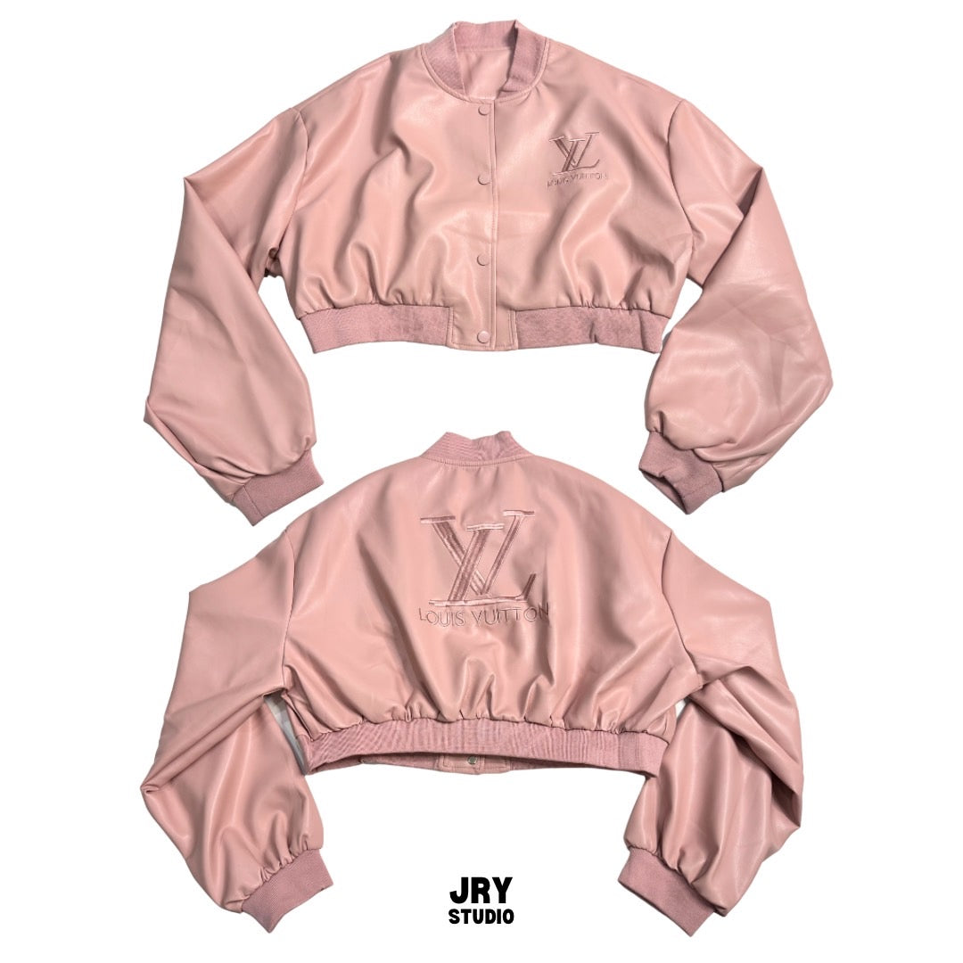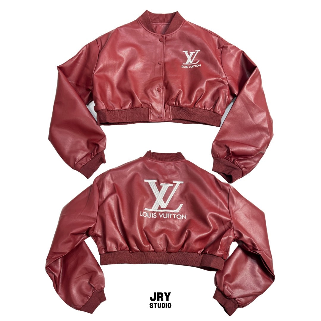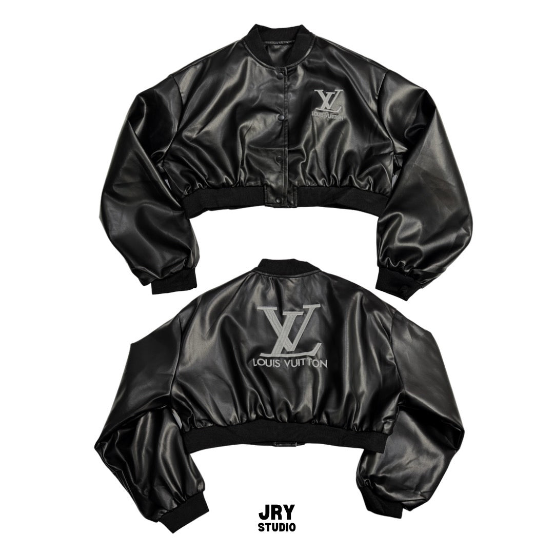 Faux leather jacket with bold LV embroidery ā a timeless piece that never goes out of style!