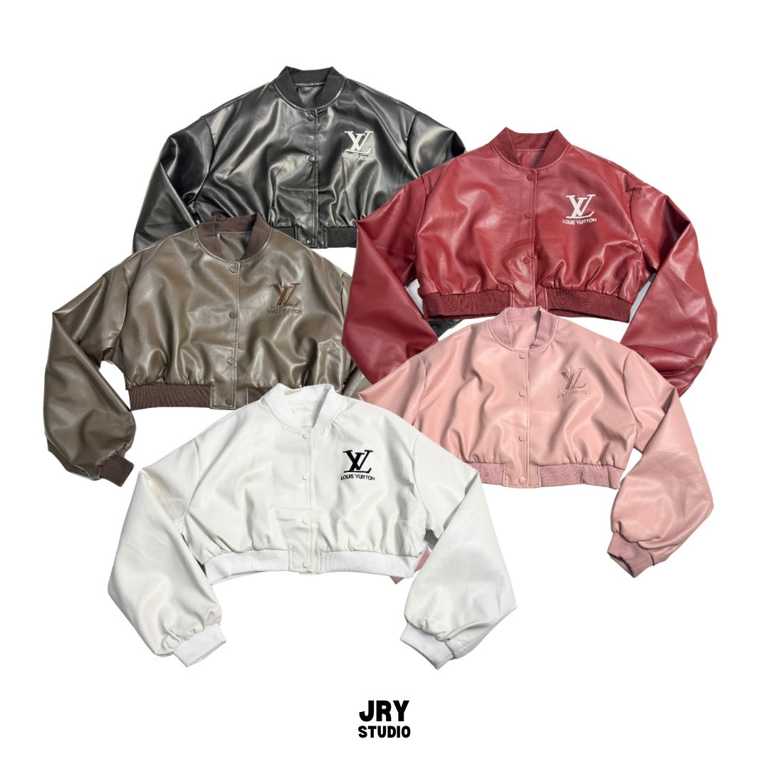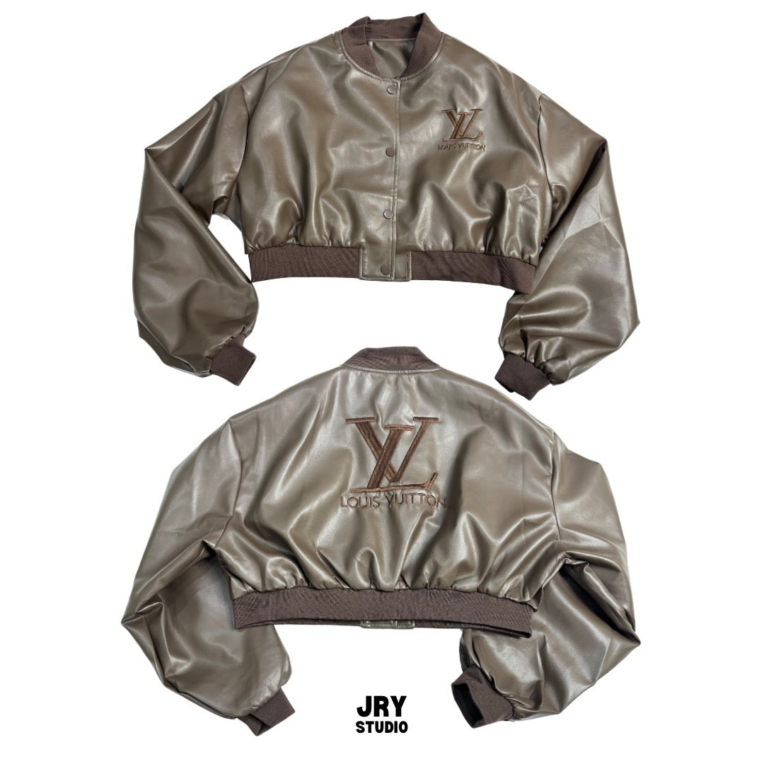 š§„ T847 ā Faux Leather Jacket with LV Embroidery
