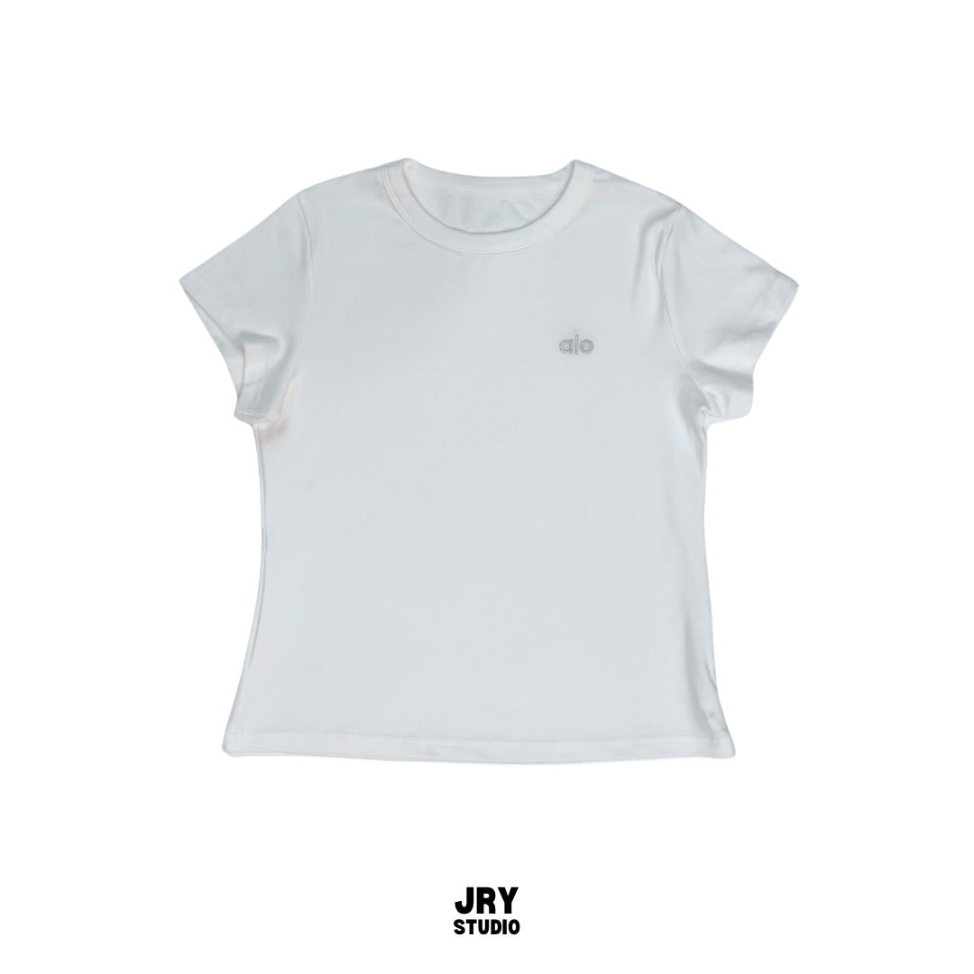 Plain short-sleeve T-shirt with embroidered Alo logo