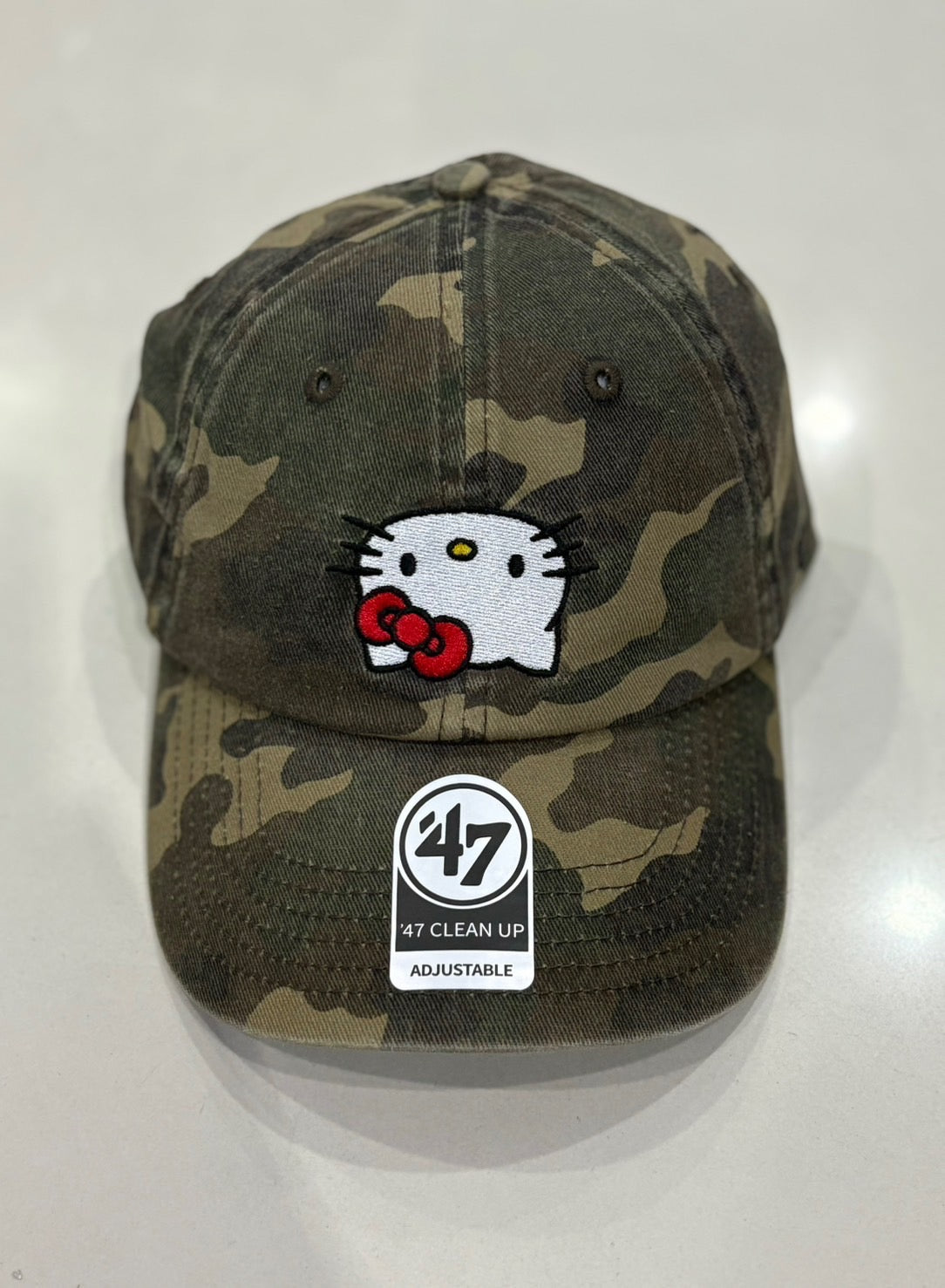 Add a bold twist to your outfit with this adorable camo-print cap featuring Hello Kitty embroidery 💖🧢