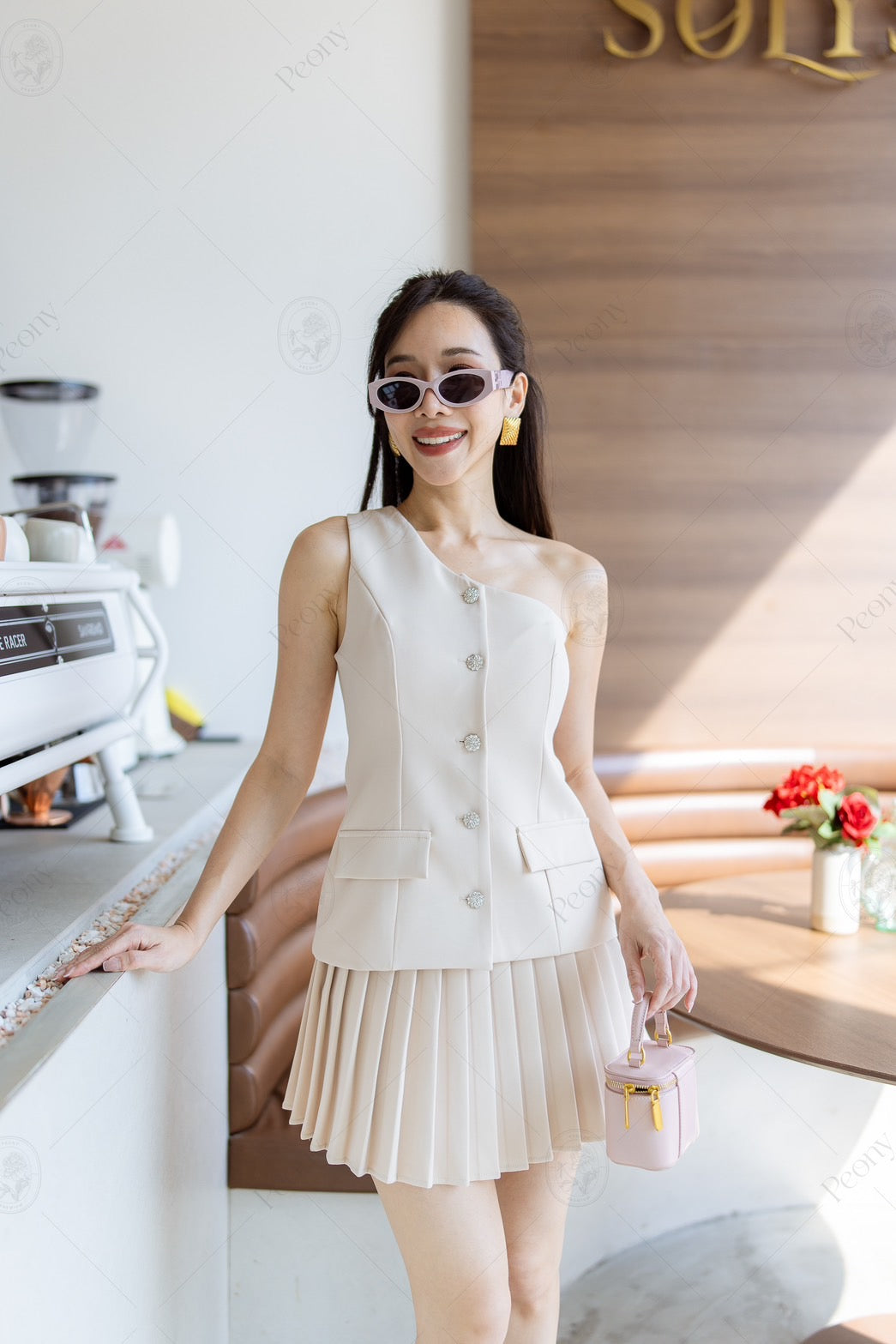 ๐ค Ivory / Nude Set โ One-Shoulder Top with Pleated Skirt
