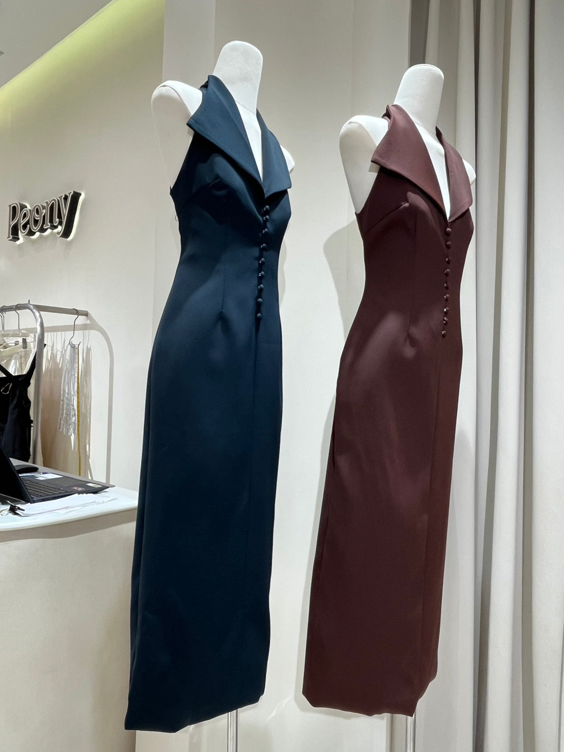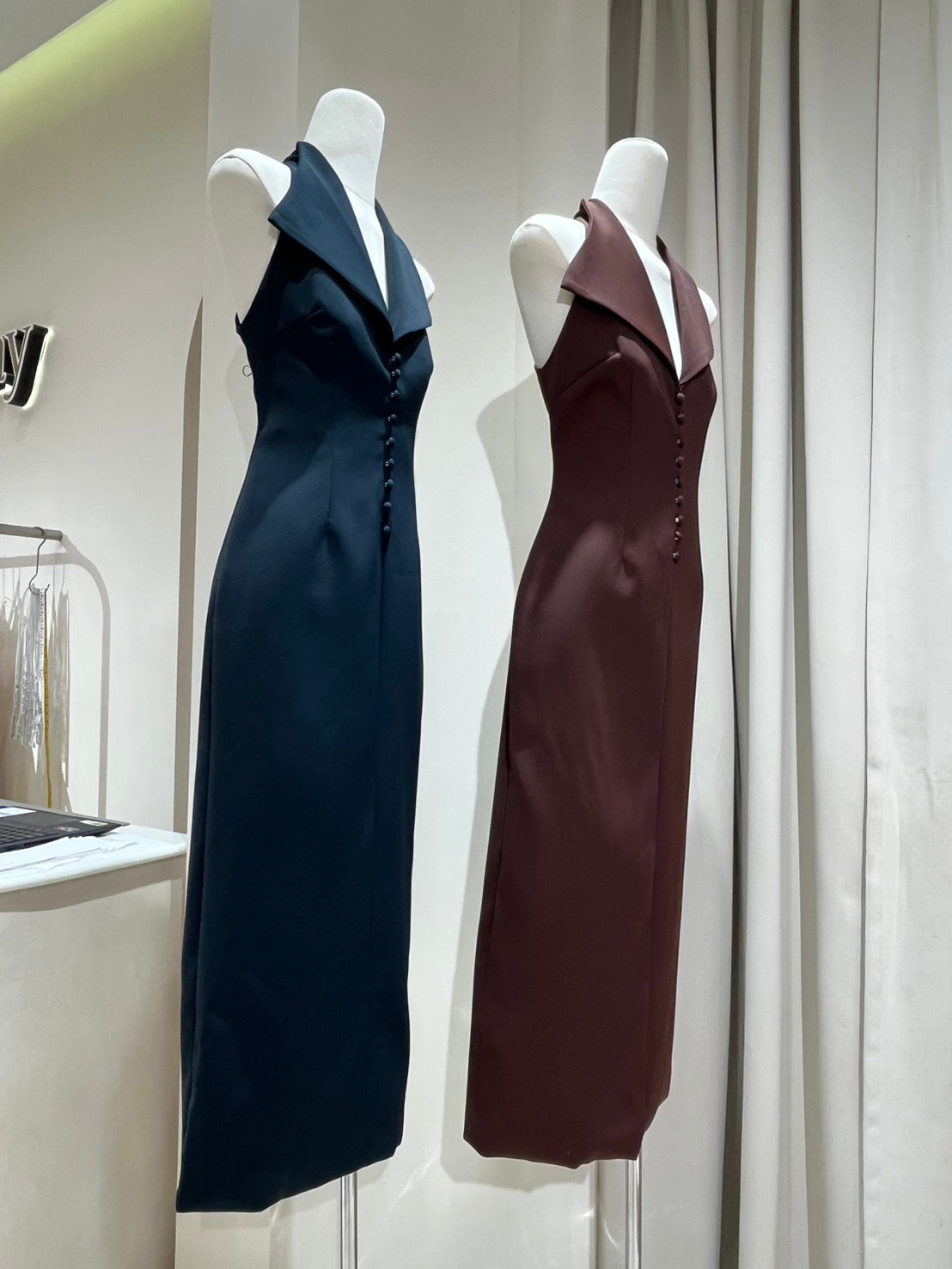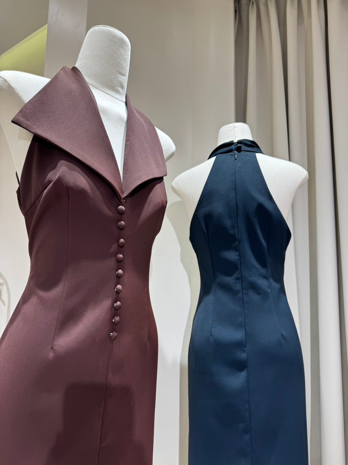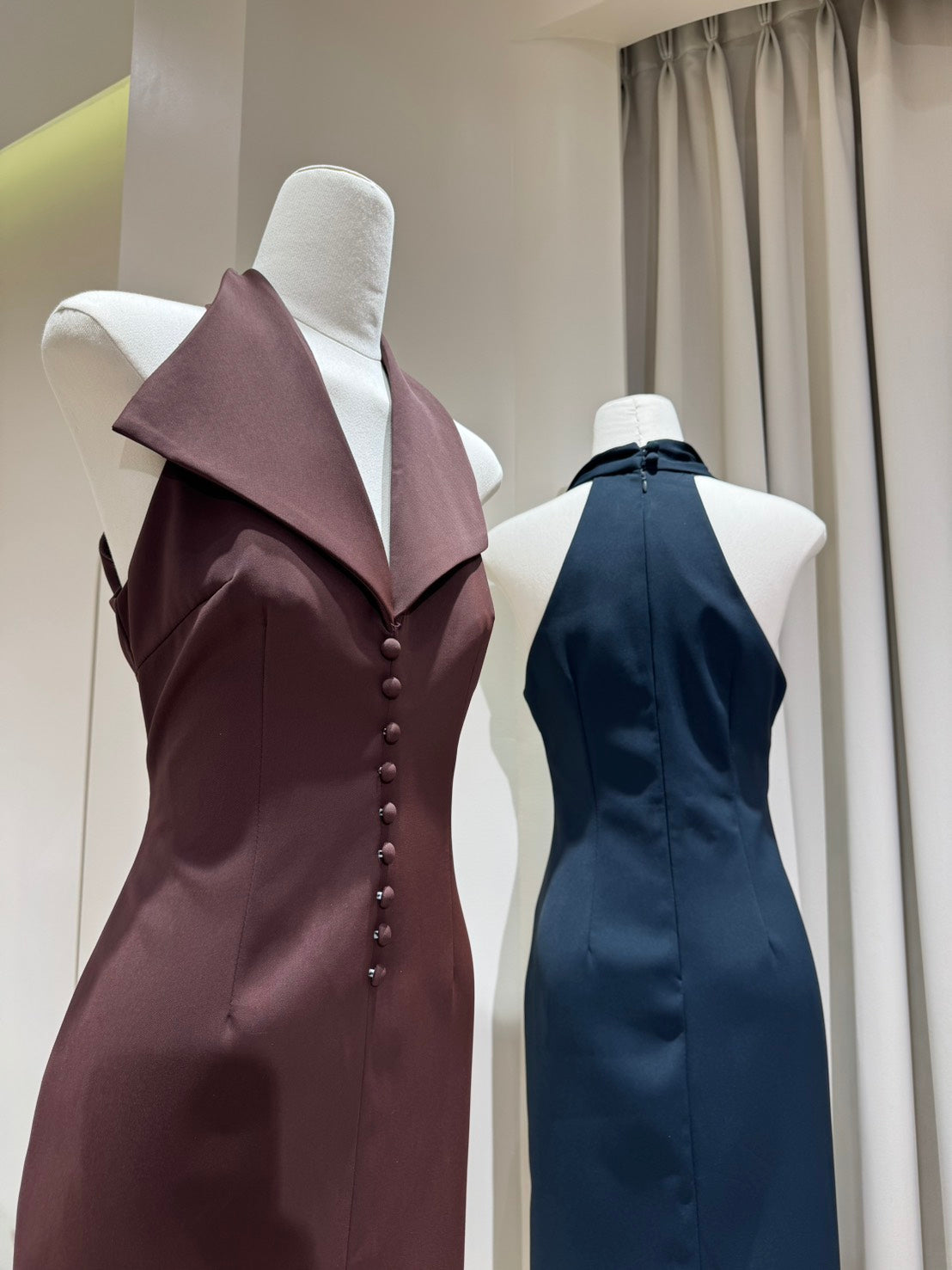 Classic collared midi dress with front buttons & subtle back slit โ chic and modern for every occasion ๐
