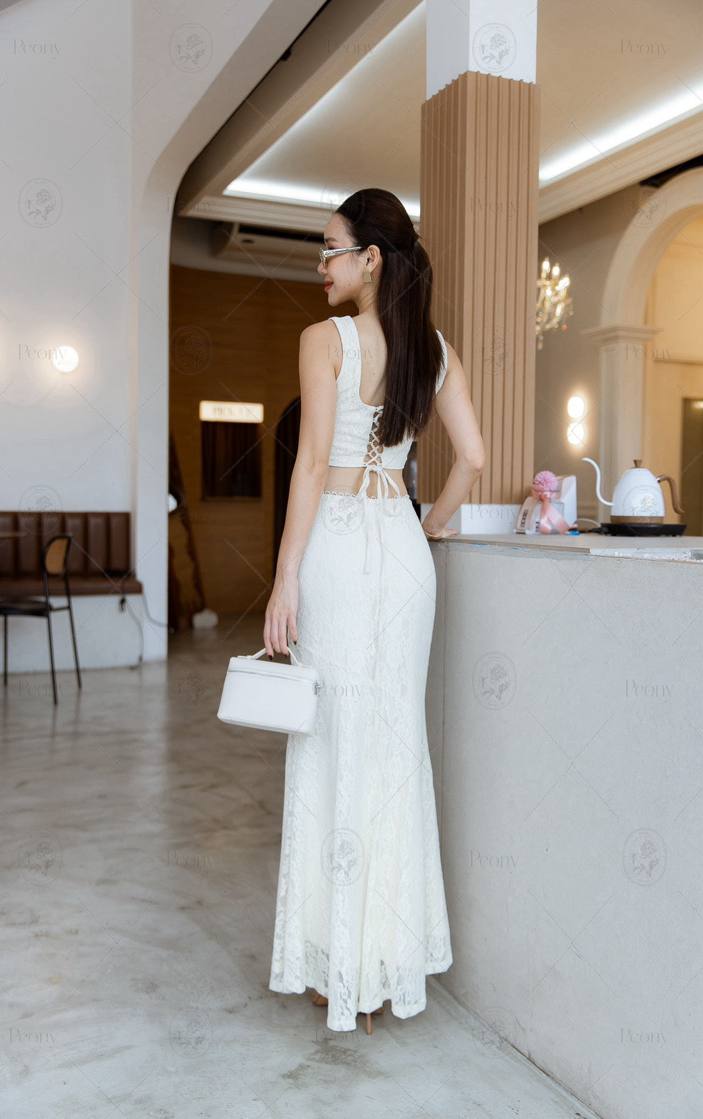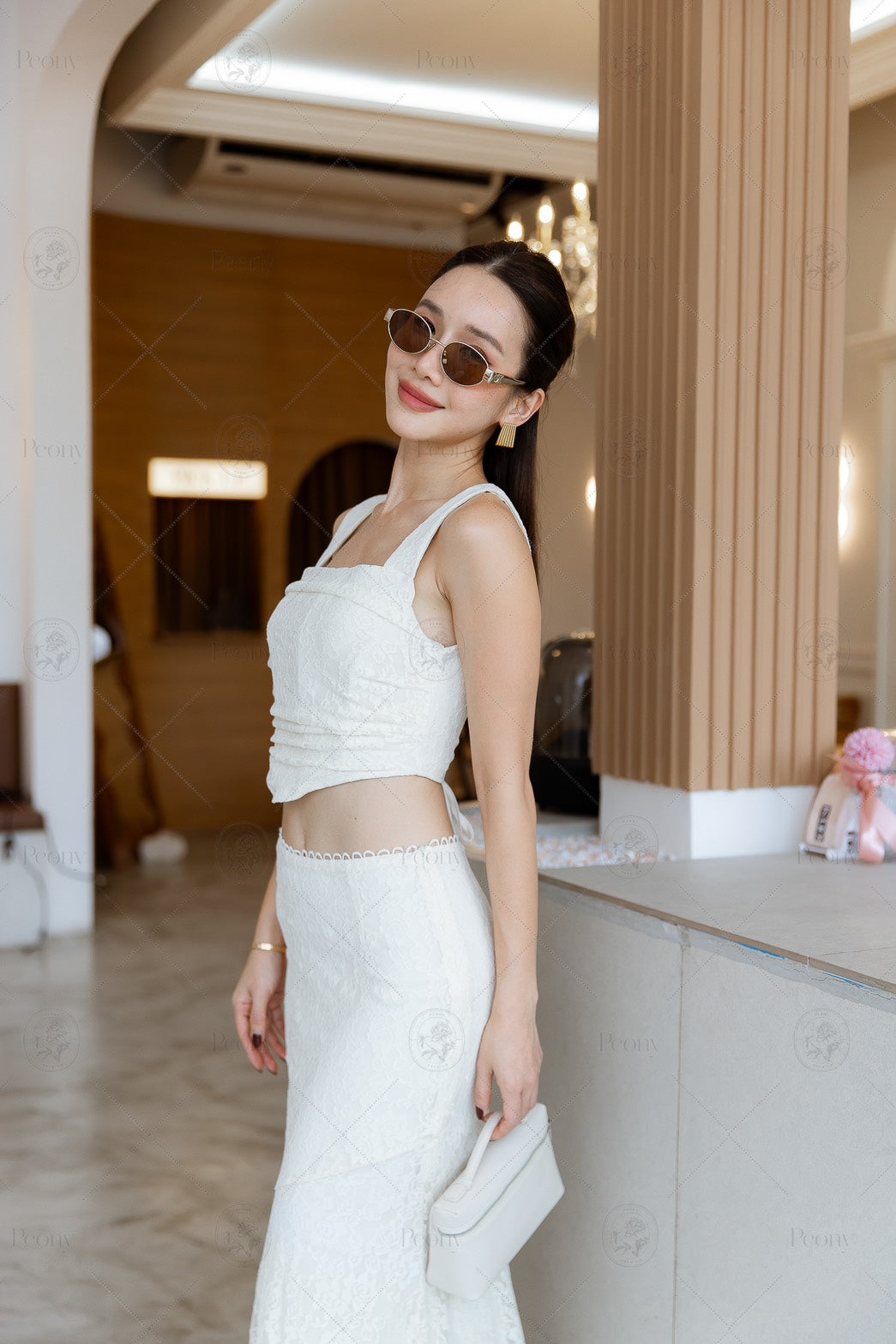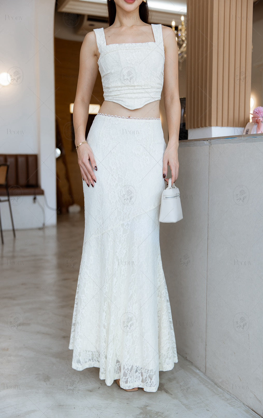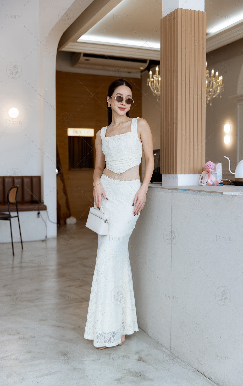 A stunning and elegant two-piece set perfect for special occasions. The structured top features built-in boning for support, a lace-up back, and full inner lining for comfort. Paired with a matching lace skirt in a soft cream tone, this set is both graceful and eye-catching. The pieces can be styled together or separately — effortlessly chic for any event!