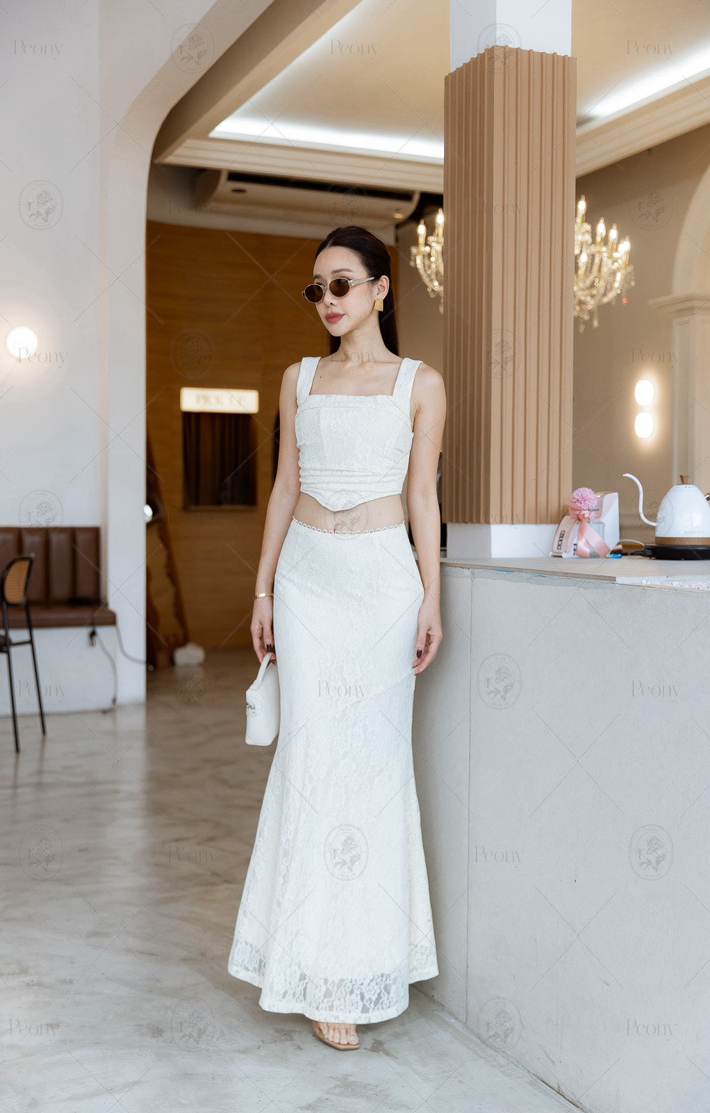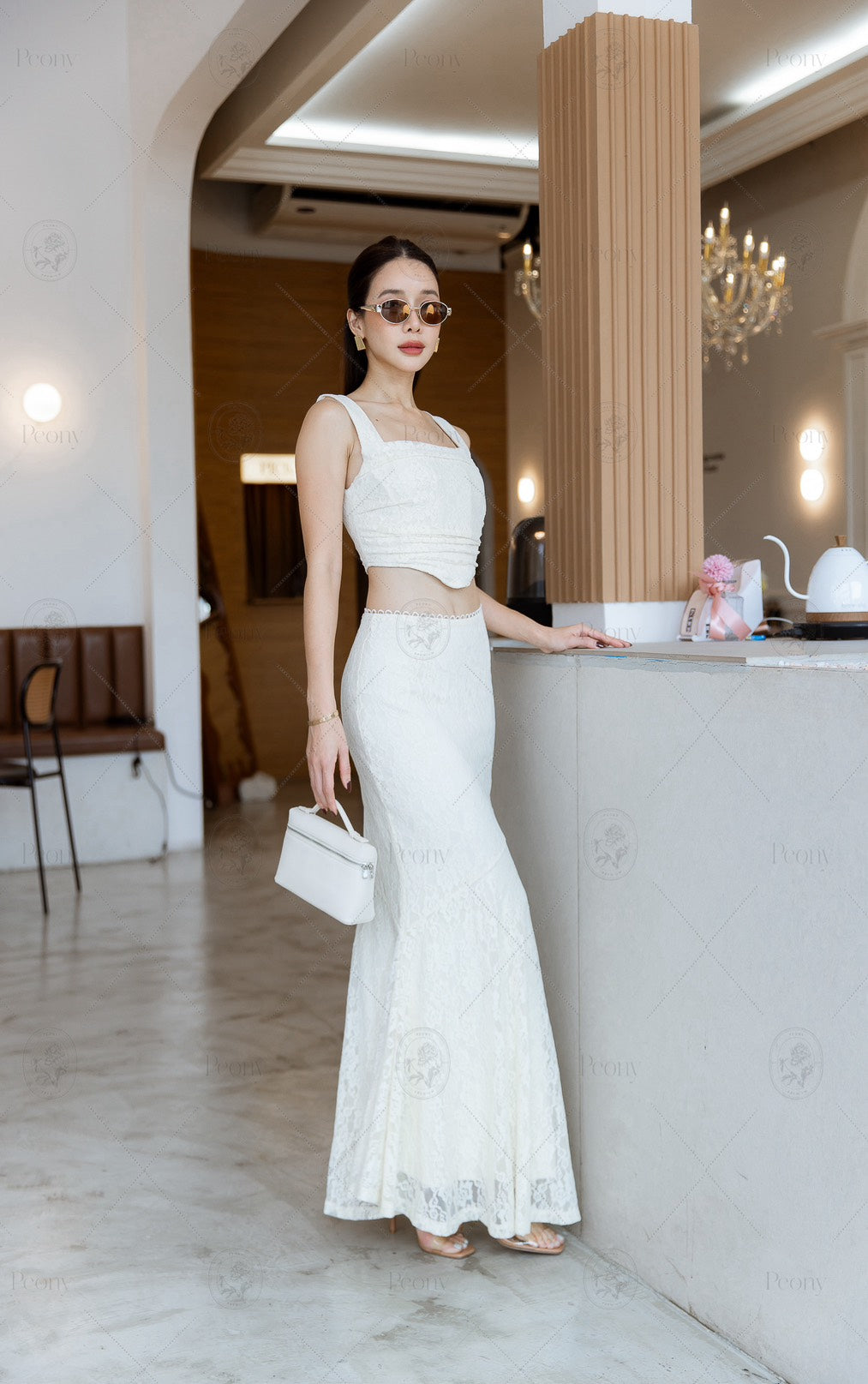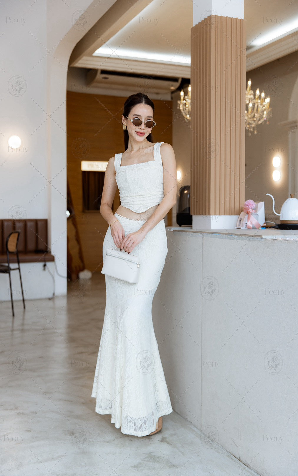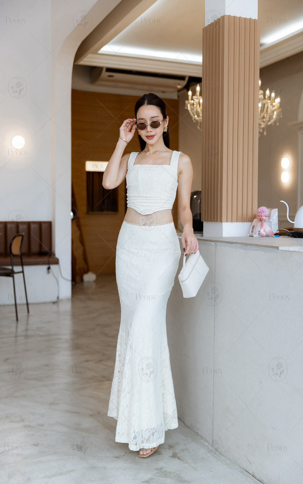 A stunning and elegant two-piece set perfect for special occasions. The structured top features built-in boning for support, a lace-up back, and full inner lining for comfort. Paired with a matching lace skirt in a soft cream tone, this set is both graceful and eye-catching. The pieces can be styled together or separately — effortlessly chic for any event!