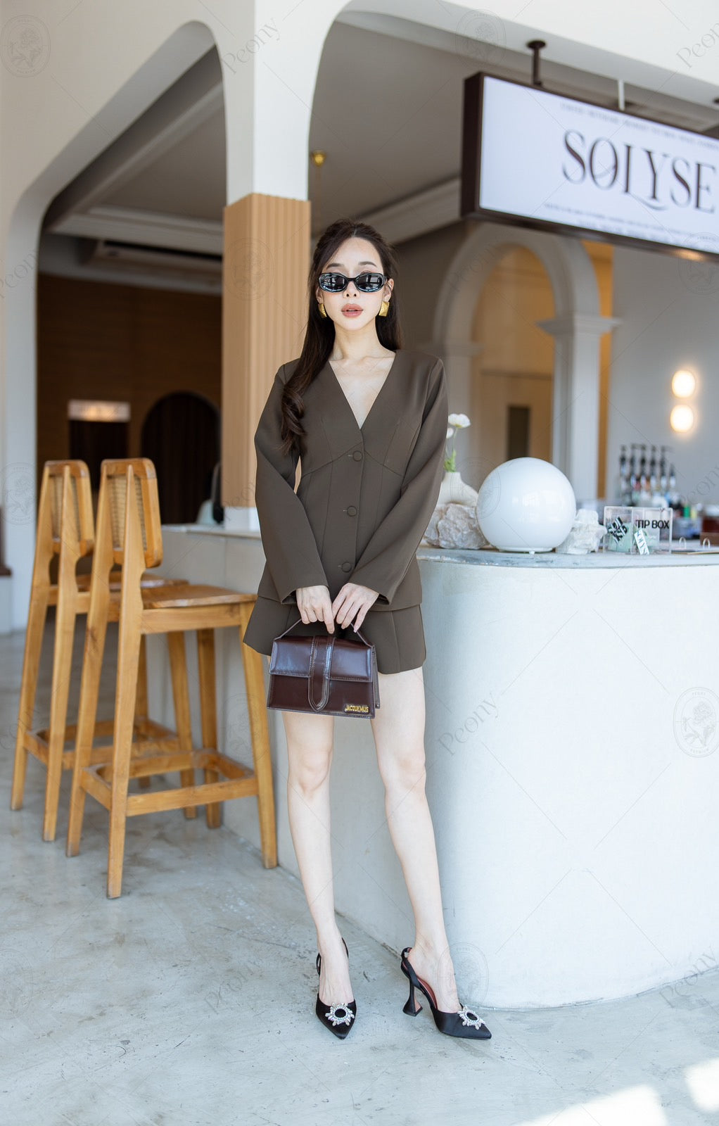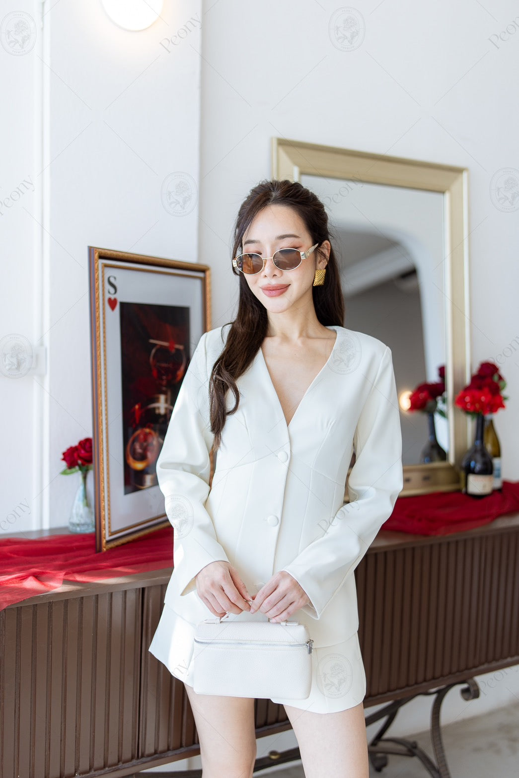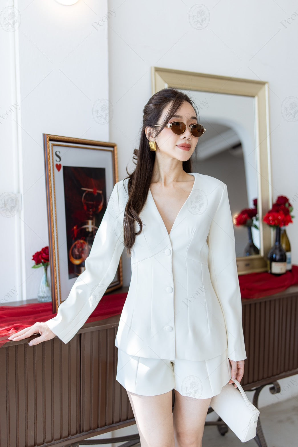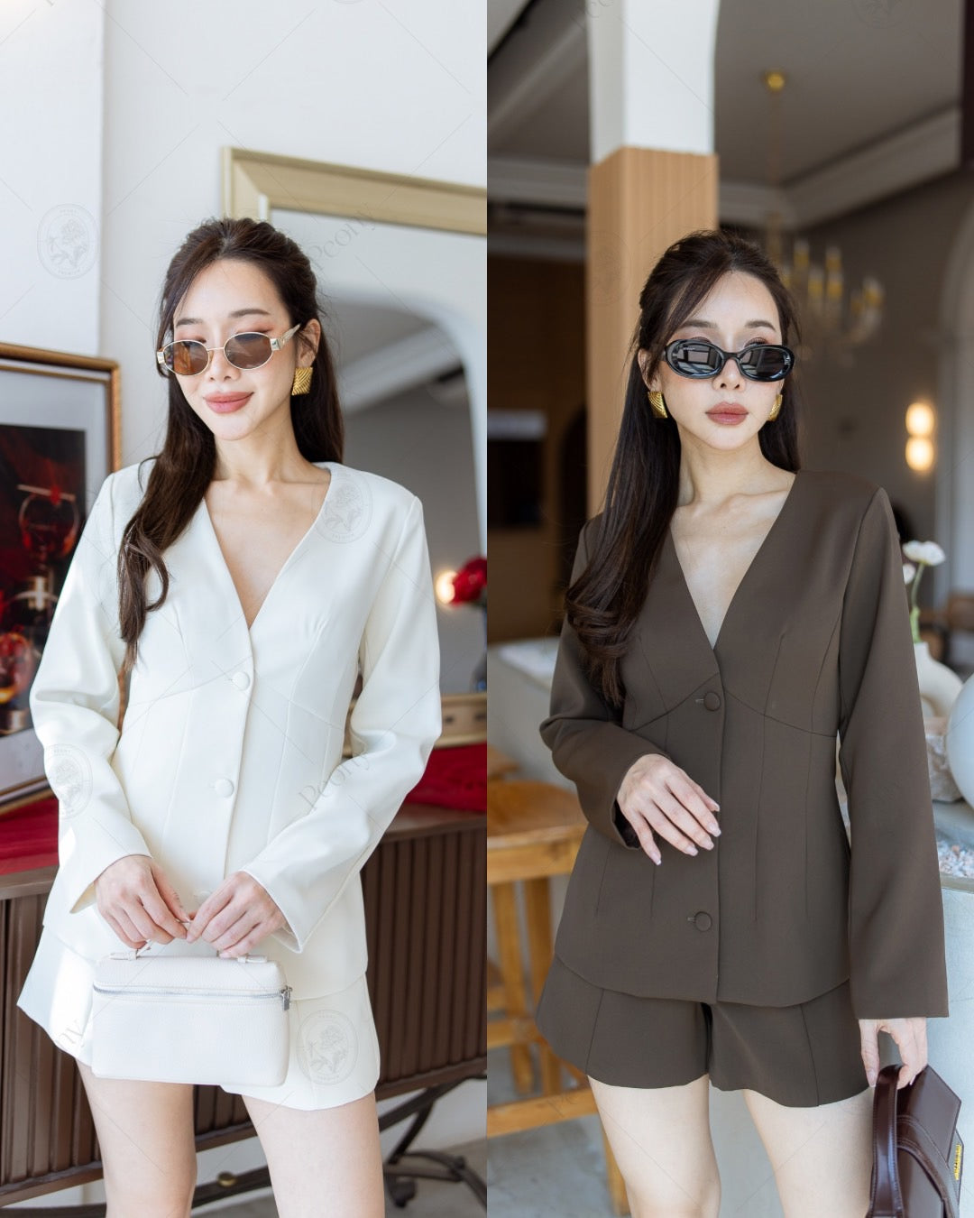 This set is classy and luxurious — the fitted blazer features a V-neckline with front buttons, perfectly paired with tailored shorts. The fabric is thick and high-quality with a beautiful finish. The clean cut and attention to detail give it a luxurious, "old money" vibe. Wear the full set for a polished look or mix and match each piece with other outfits for more versatility.
