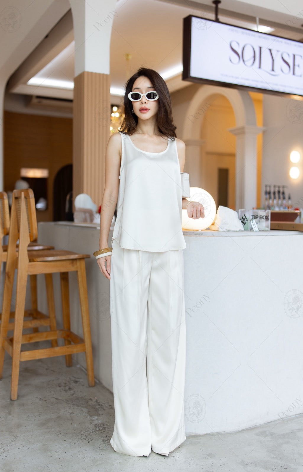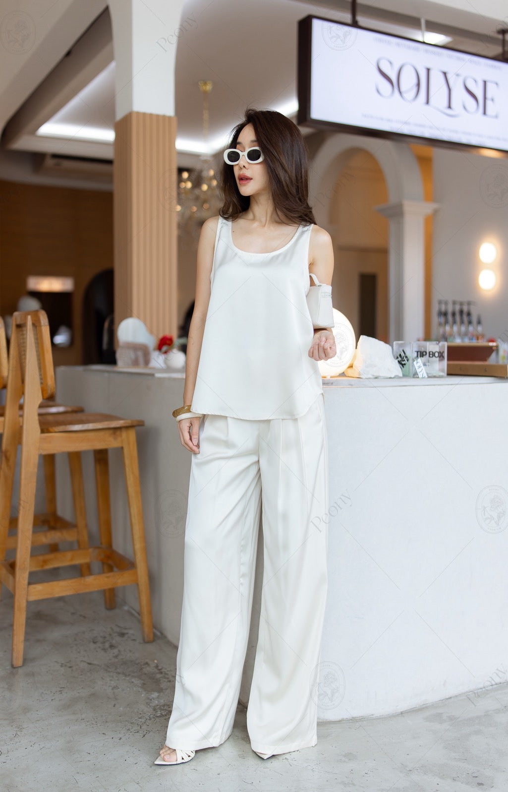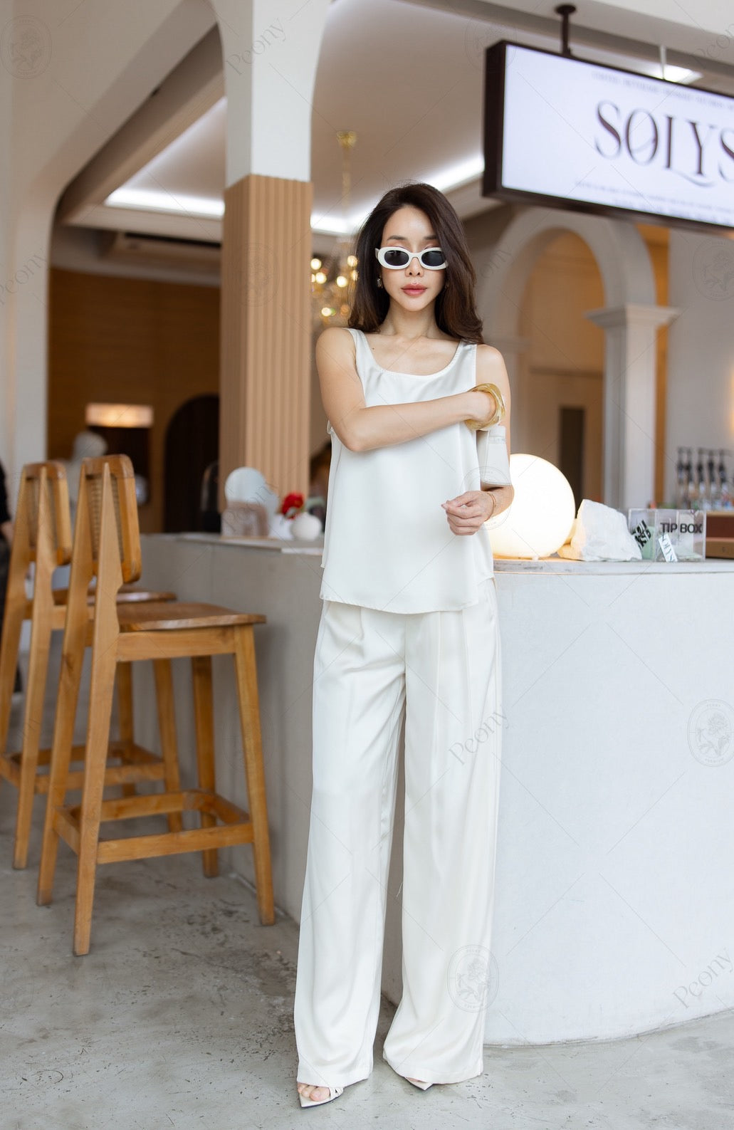 Features a wide neckline sleeveless top paired with matching long pants — perfect for effortlessly elevating your look on any occasion.
