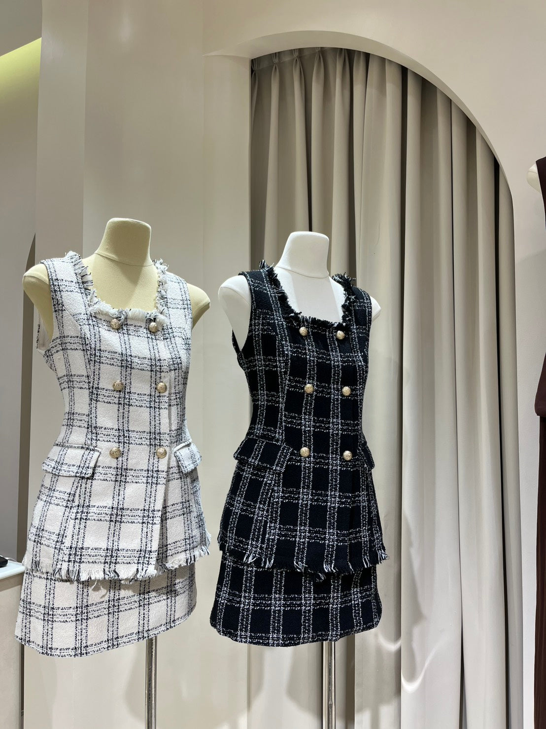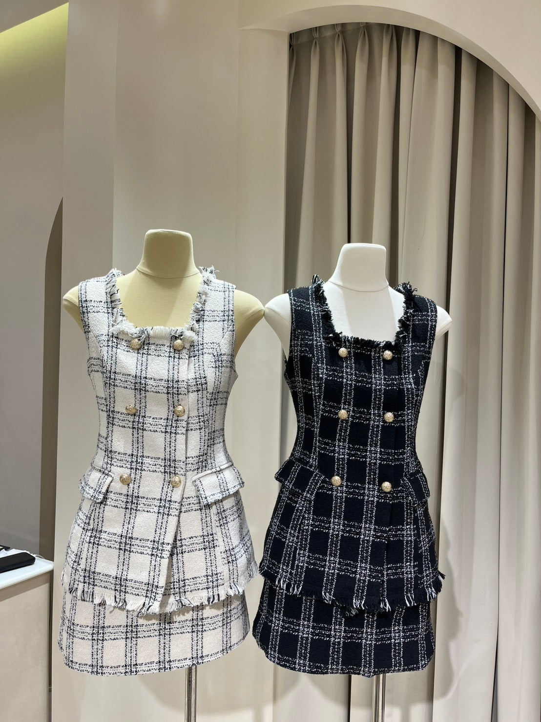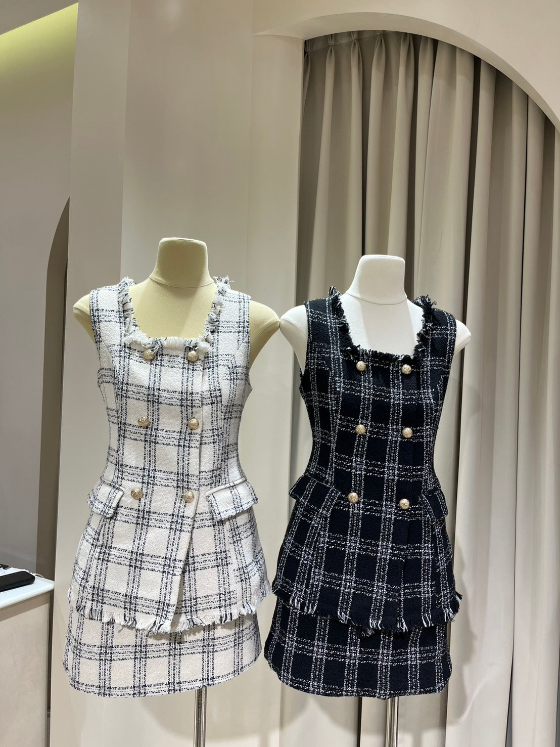 Details: Stylish woven set with a checkered pattern. The fabric is lightweight, perfect for daily wear. Features a sleeveless, square-neck top matched with shorts. Fully lined for comfort, creating a complete and chic look for any occasion.