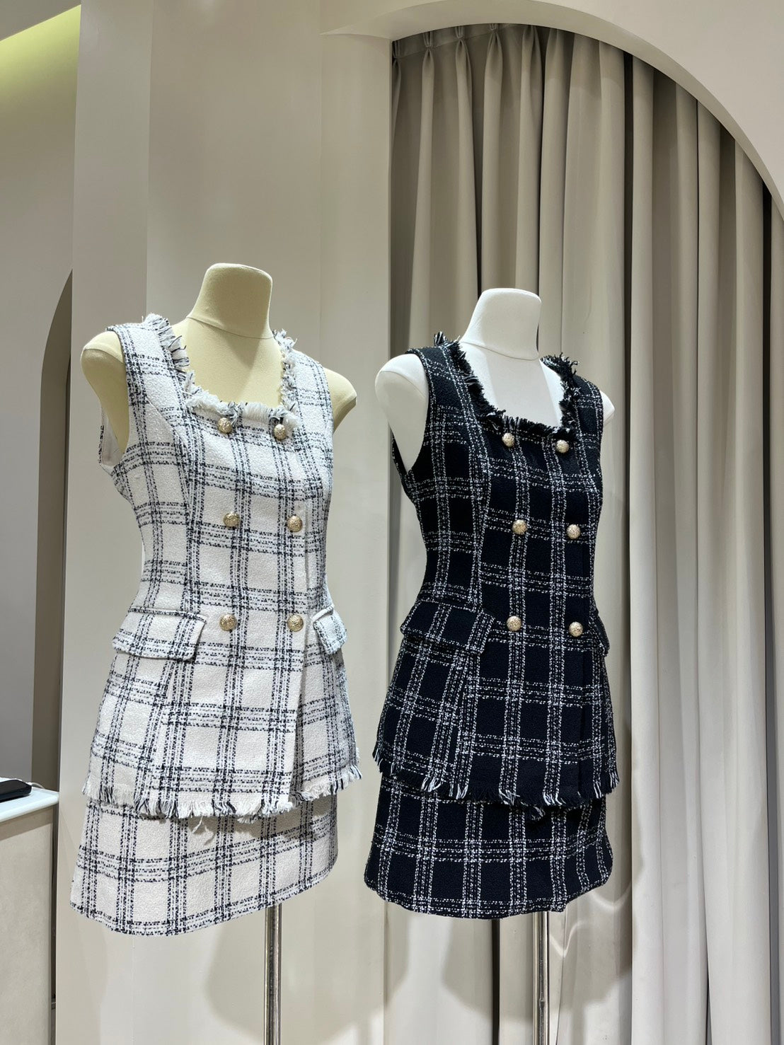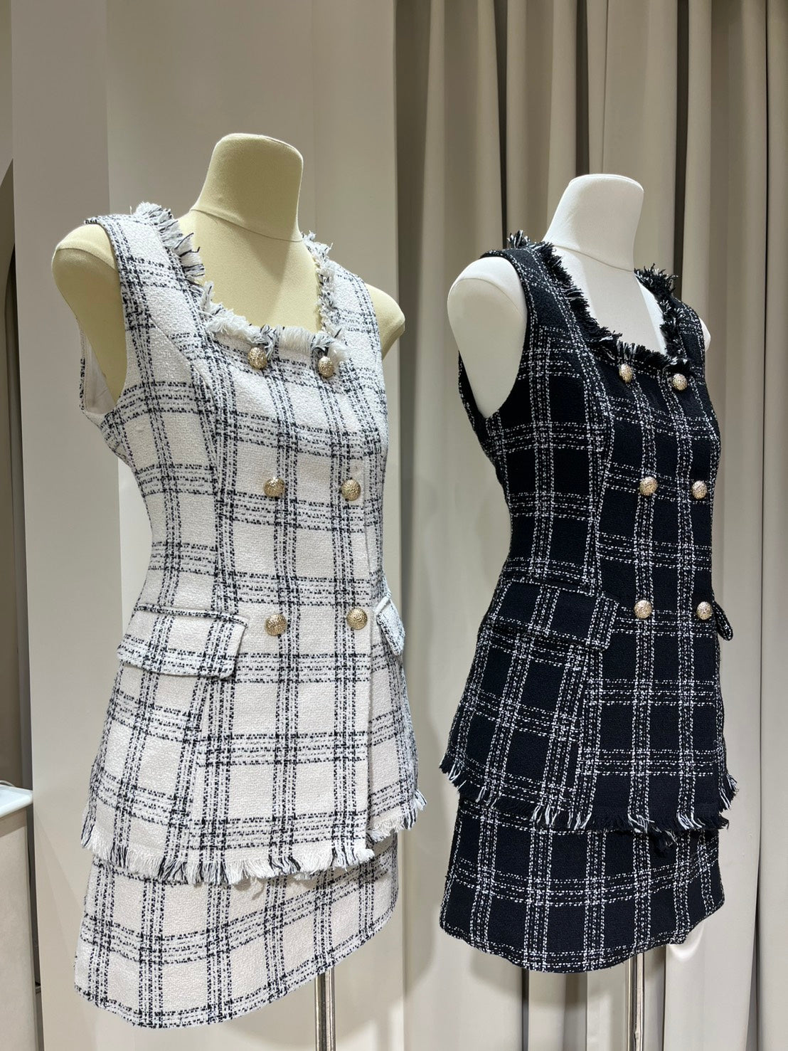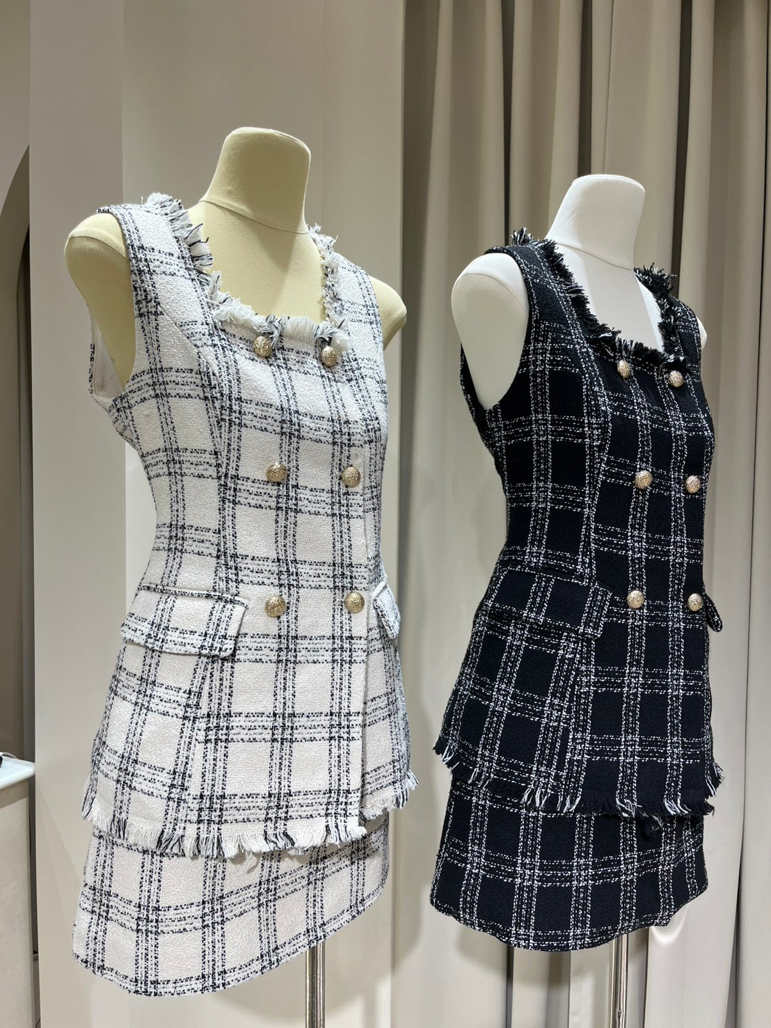 Details: Stylish woven set with a checkered pattern. The fabric is lightweight, perfect for daily wear. Features a sleeveless, square-neck top matched with shorts. Fully lined for comfort, creating a complete and chic look for any occasion.