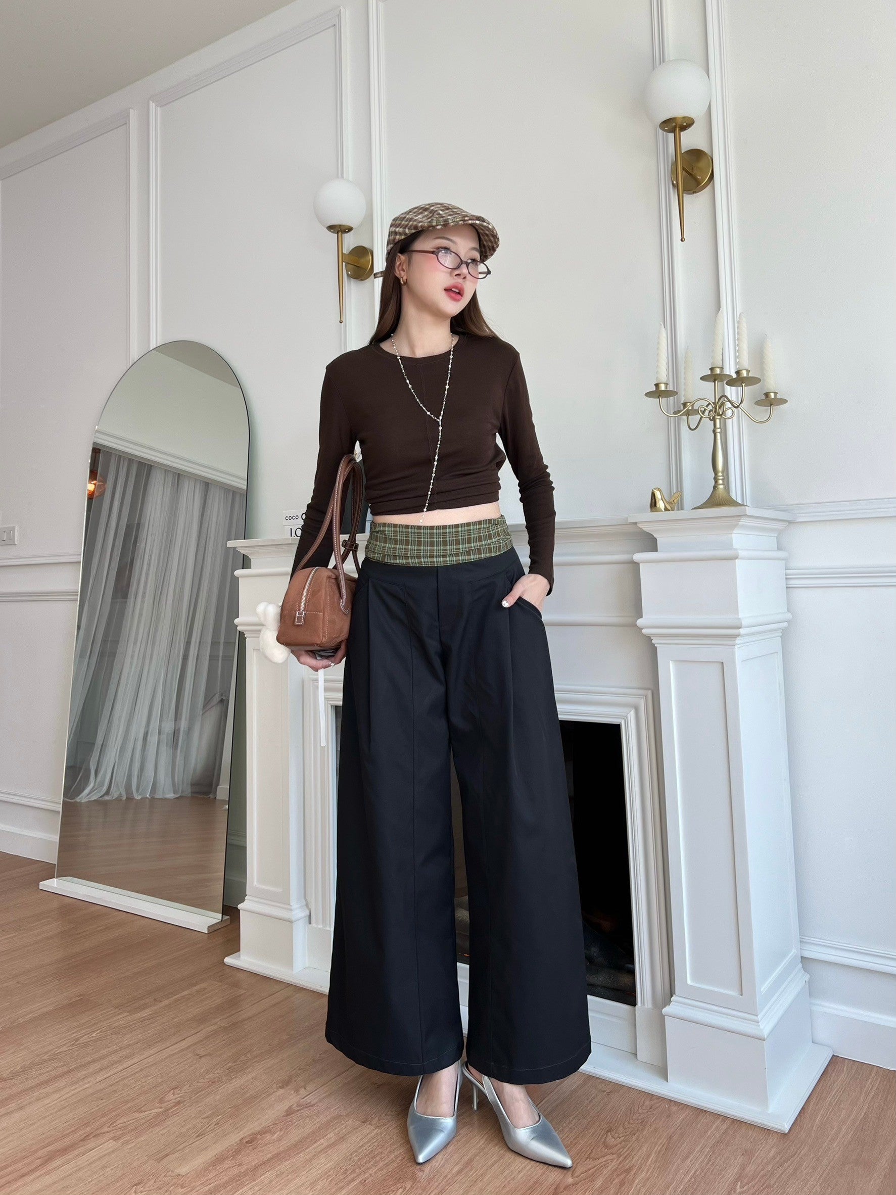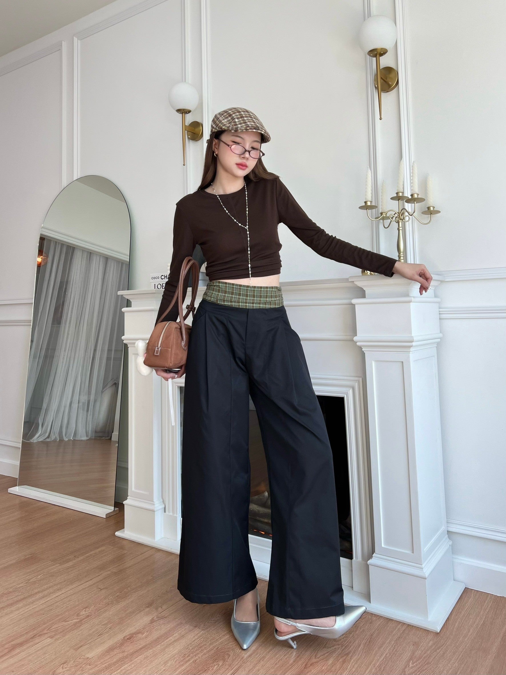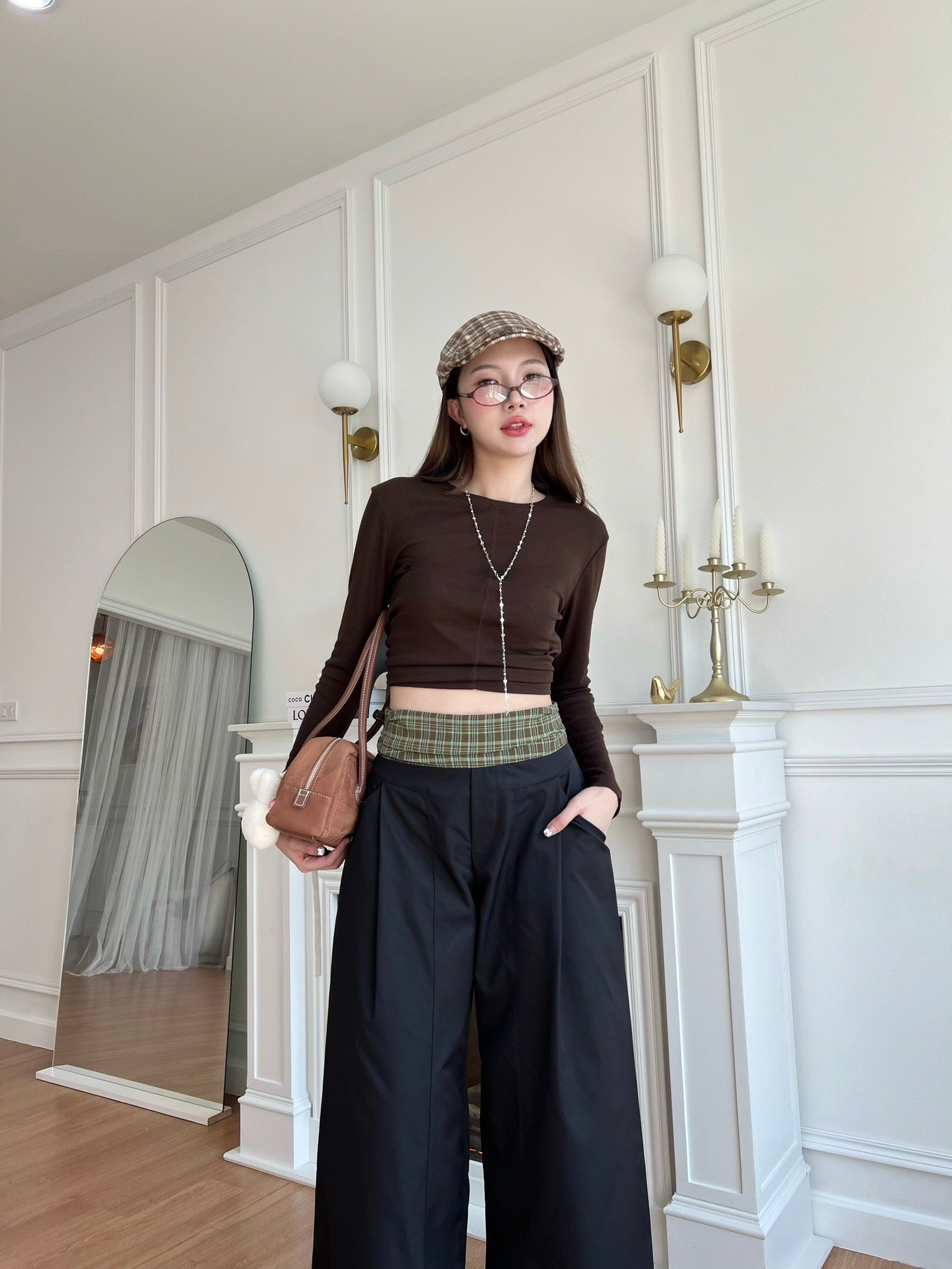เกงผ้าผ้าเทเลอร์ขอบเอวลายสก๊อตสูงปีด้วยตอนนี้ที่เกาหลีฮิตมากๆๆ แม่ๆๆท่านไหนไม่อยากตกเทรนรีบเก็บให้ไว (แอบกระซิบผ้าแพงมาก)