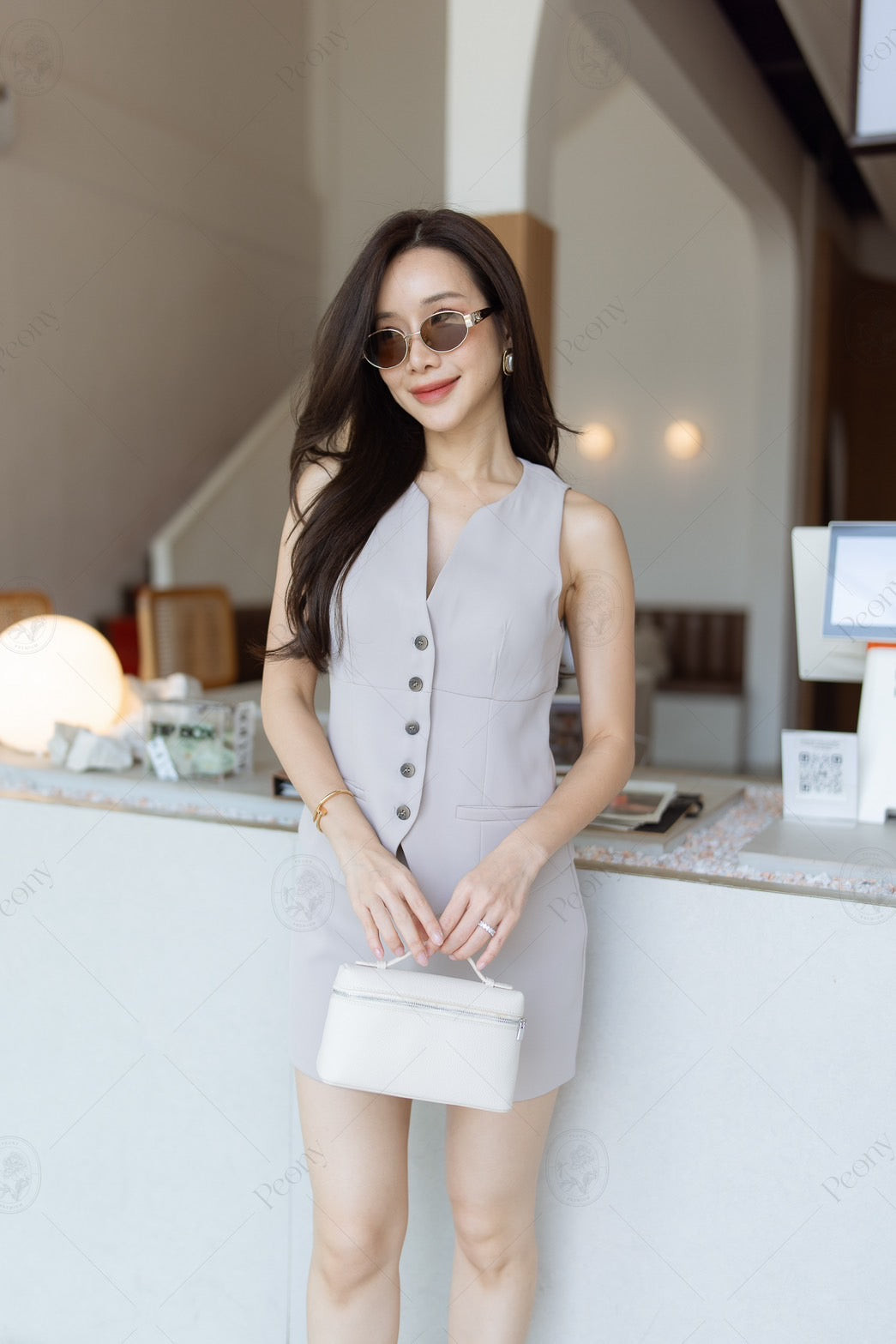 Simple, stylish, and effortlessly chic—this solid-color set features a pointed-collar button-down top paired with a short skirt that comes with built-in shorts for added comfort. The elegant, timeless color makes it perfect for any occasion, whether casual or semi-formal.