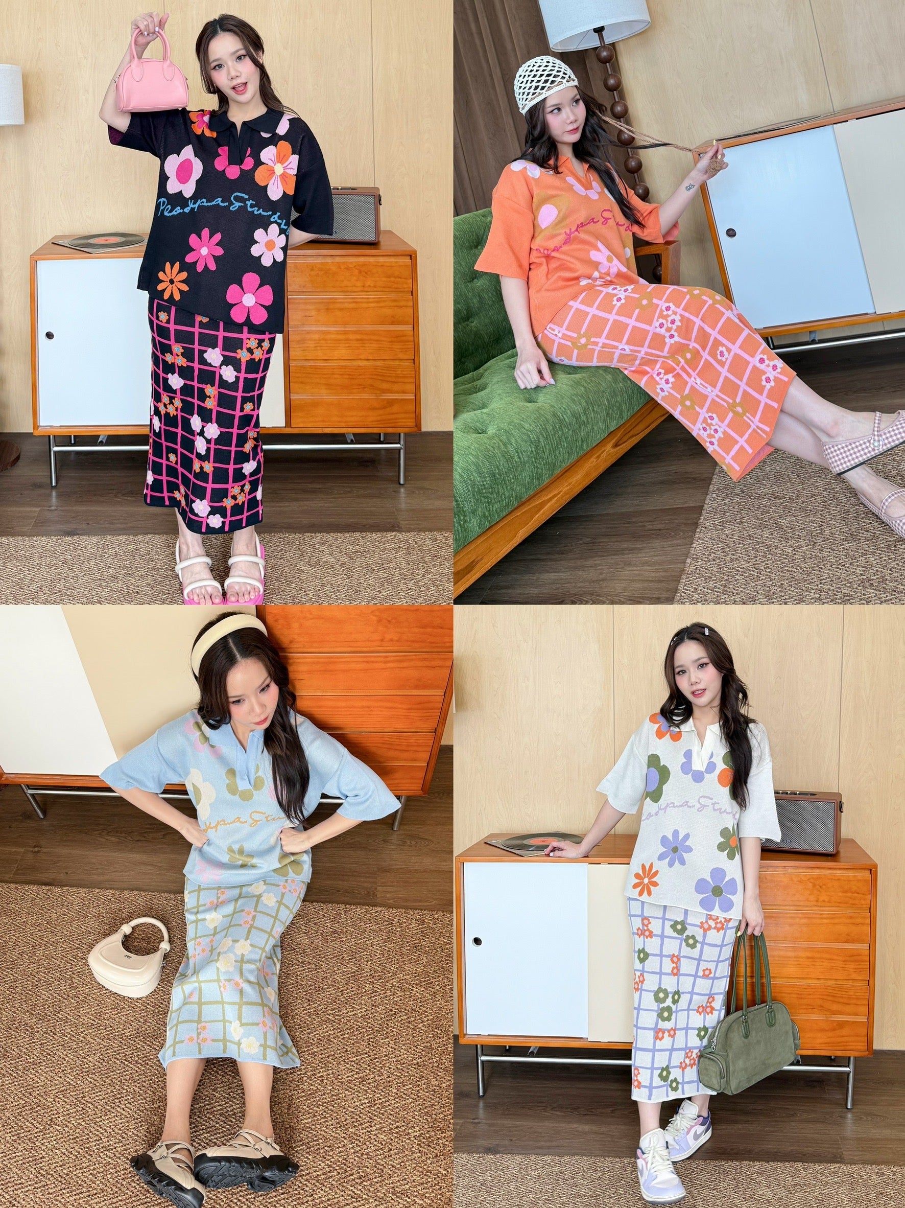 A sweet and charming floral set in soft pastel tones — perfectly cute and wearable!